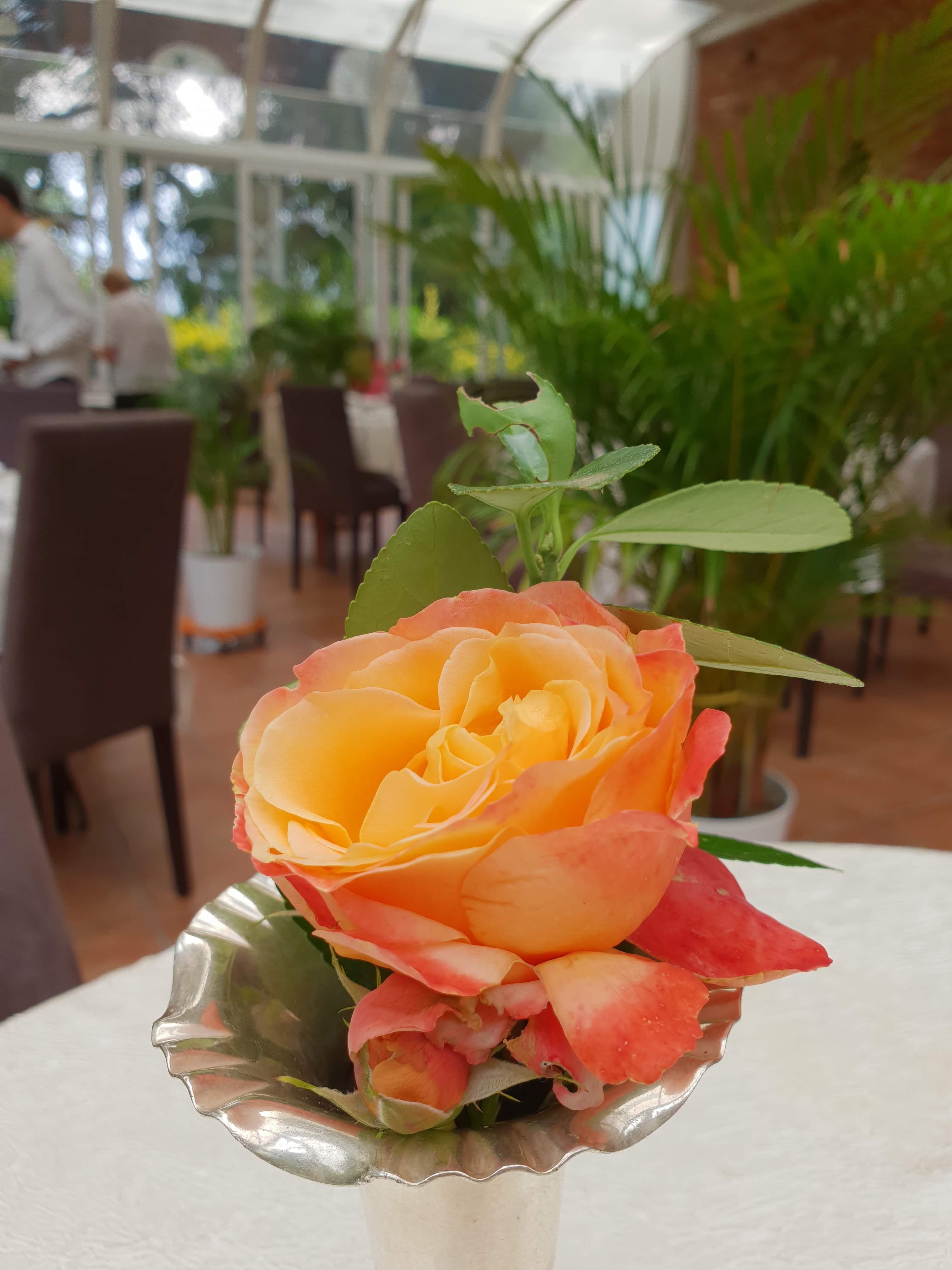 C'est fin, c'est bon, c'est beau et fleuri dans l'assiette ; cet ancien séchoir a été magnifiquement rénové et sous la terrasse de verre il fait très bon encore en octobre