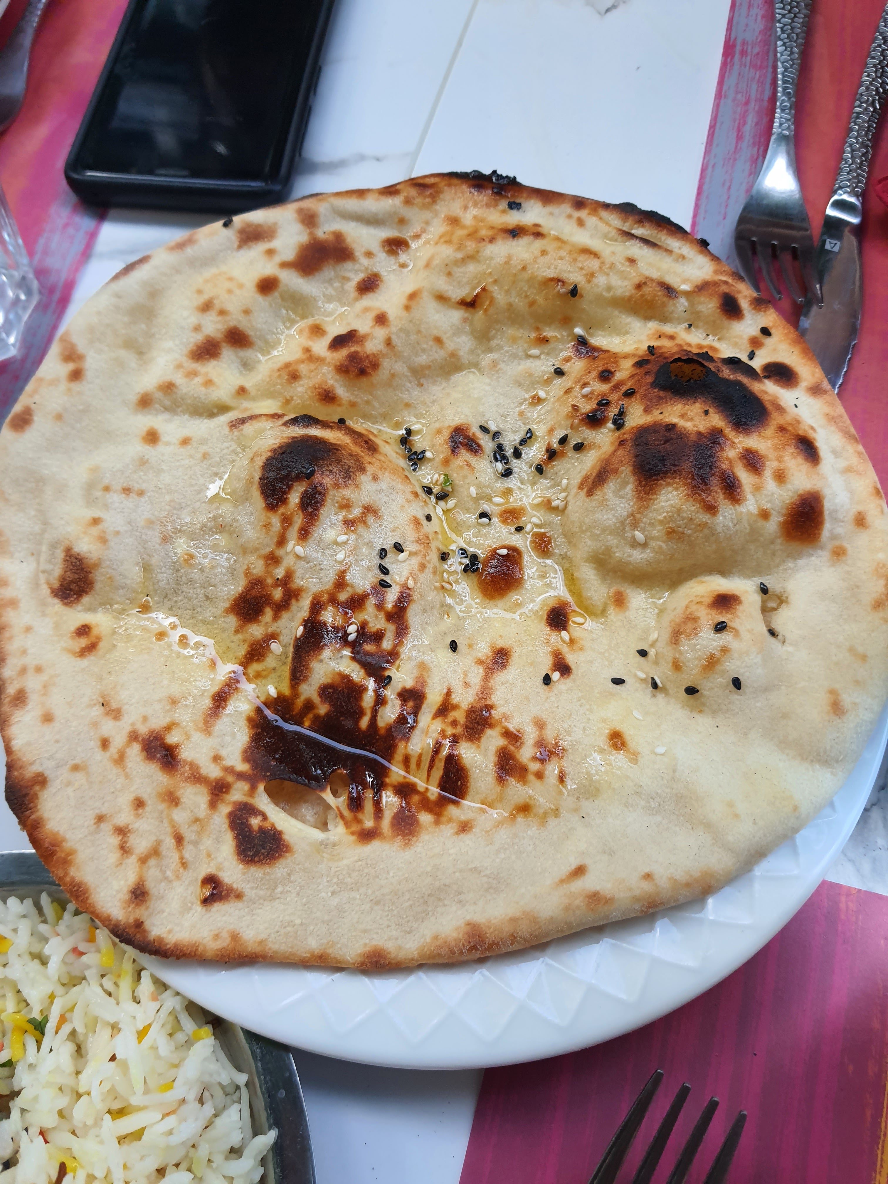Nous nous sommes régalées ce midi, les portions sont généreuses, savoureux, les naans incroyable et le service impeccable ! Je recommande vivement ✨