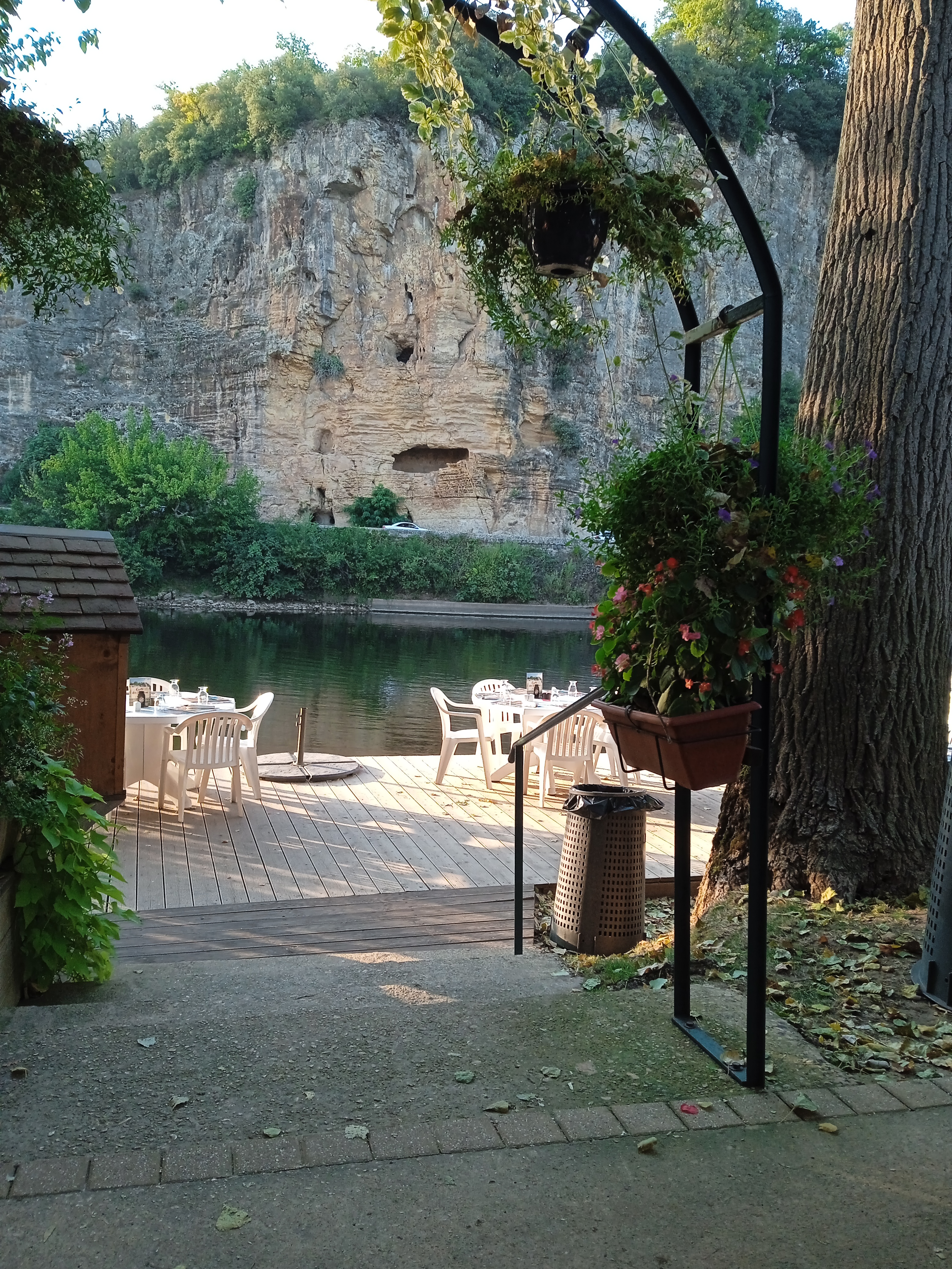 Service un peut long entre l'apéritif et le plat principal. Le cadre est idyllique pour des repas en famille ou en amoureux le long de la Dordogne, les sanitaires ne sont pas nickel, du à certains vacanciers qui ce soucis guère des gens qui passe derrière. 🙂