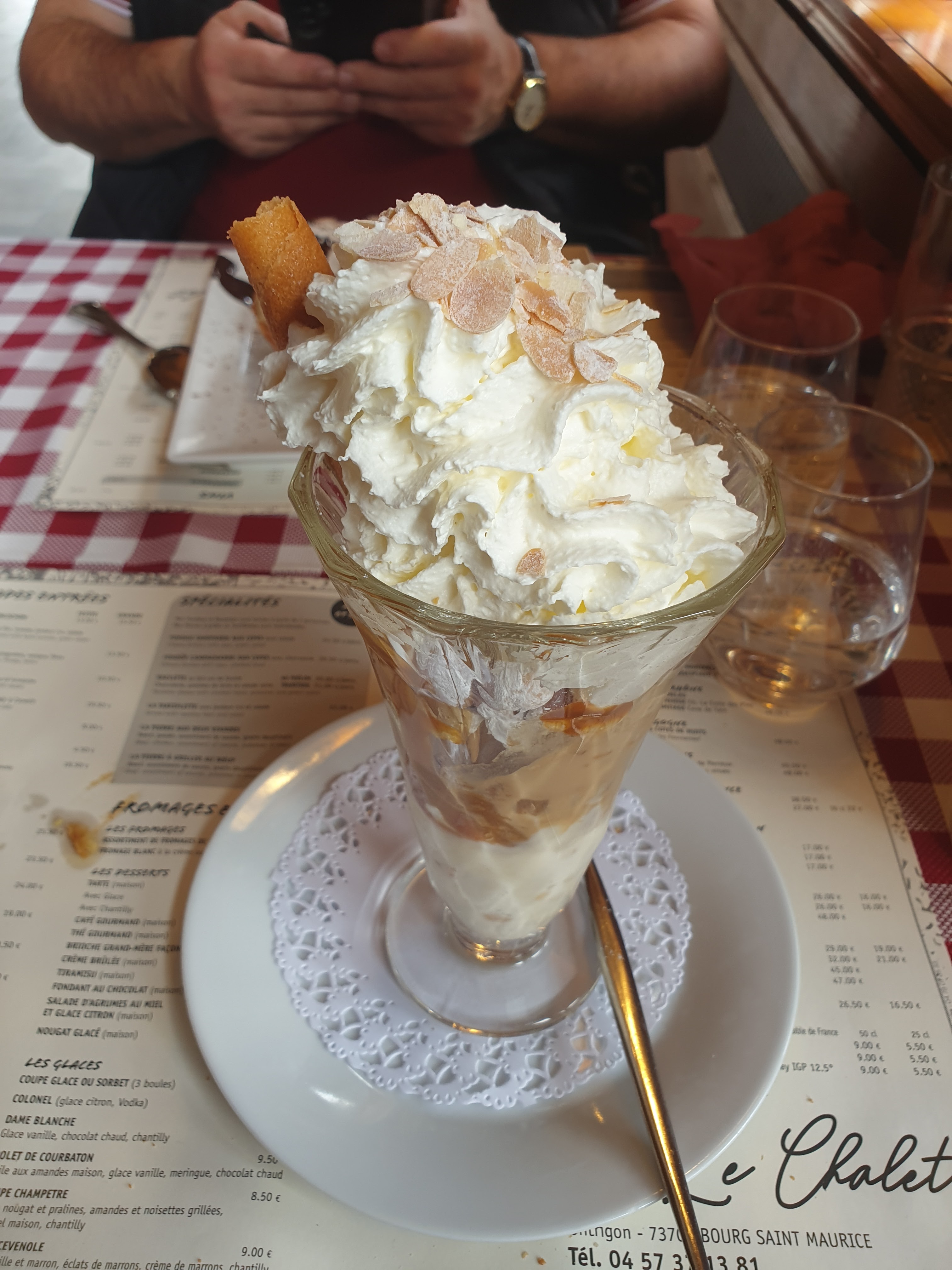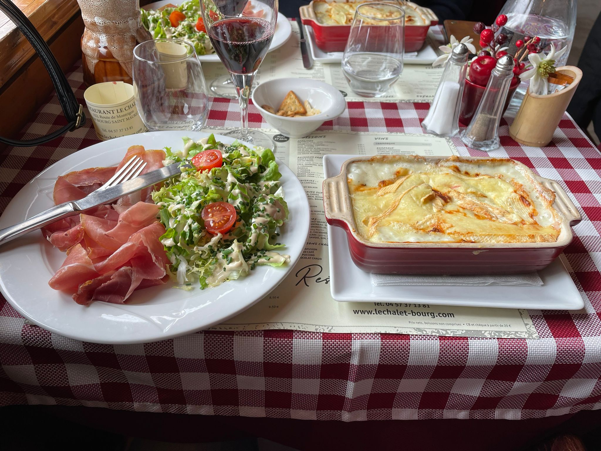 Nous avons passé un bon moment au Chalet. En entrée j'ai pris un tiramisu asperges.C'était bien frais. Mon beau frère a pris une très bonne souris d'agneau. La Tartiflette était bonne aussi