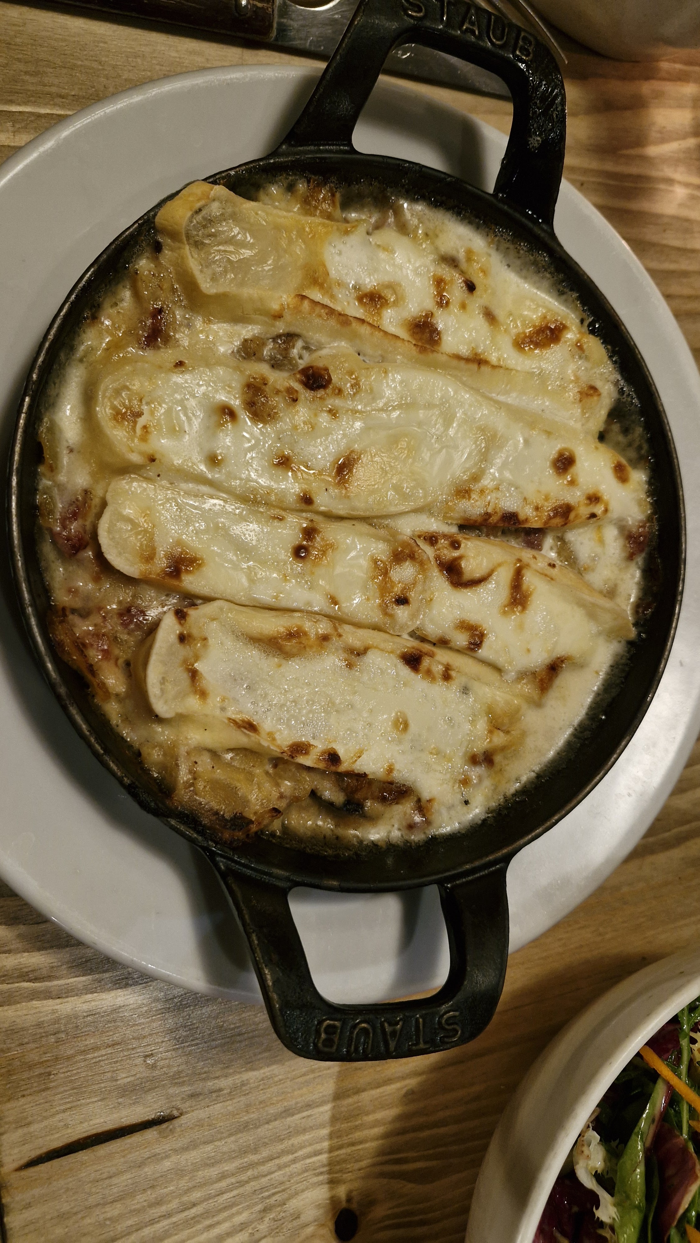 Nous avons réservé sur internet car le téléphone ne répondait pas. La table était proche d'une cheminée avec vue sur le canal. Nous avons opté pour une raclette au fromage fumé, la qualité et la quantité sont au rendez-vous.