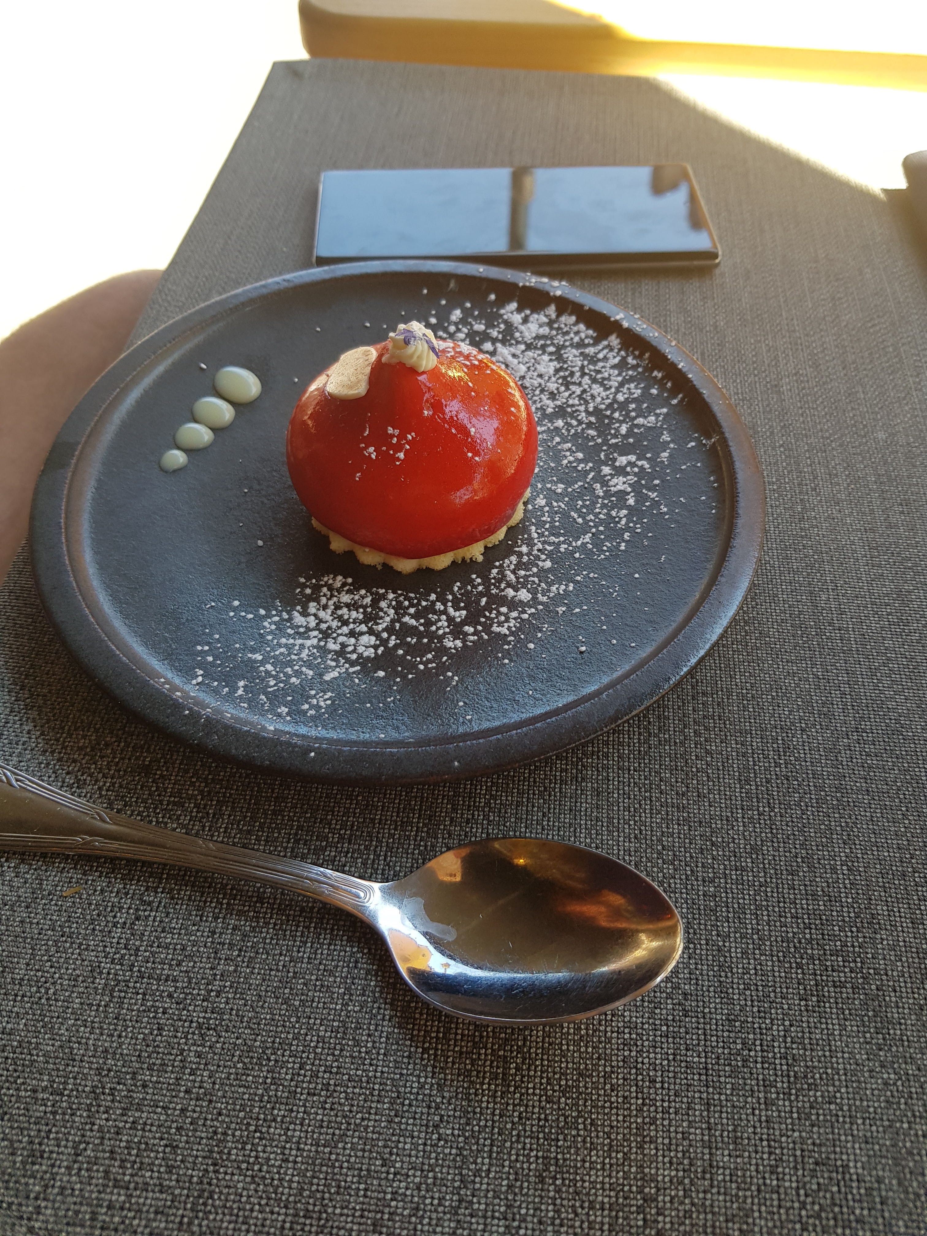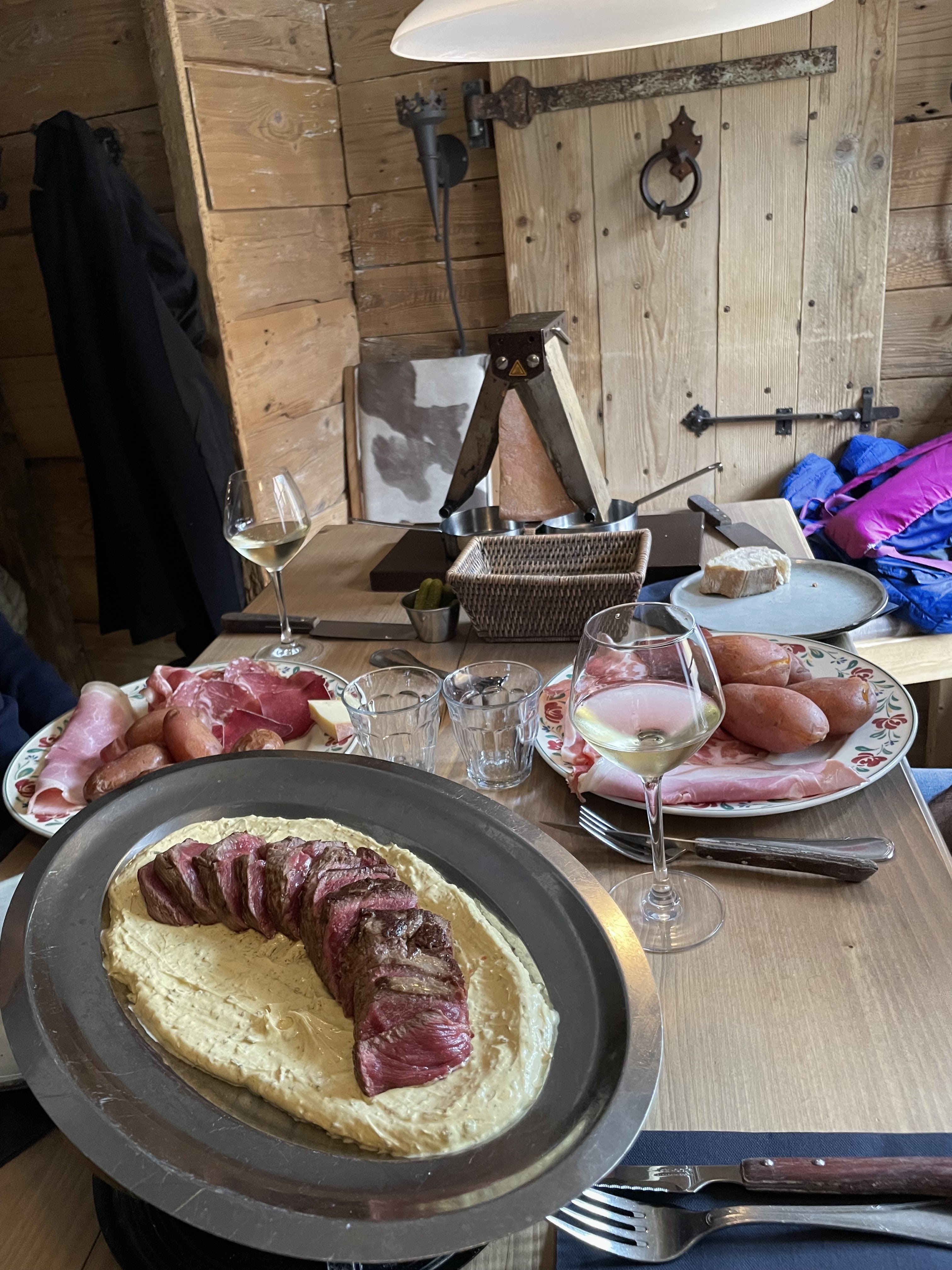 Le restaurant est magnifique, la décoration est très soignée. Très cher pour une simple raclette. Le fromage et la charcuterie sont de qualité mais ce n'étais pas très généreux. La tarte à la myrtille était excellente, le dessert signature aussi mais manque peut-être de quelque chose dans l'assiette (la maison se sent seule). Quand même 122 euros pour 2 personnes ...