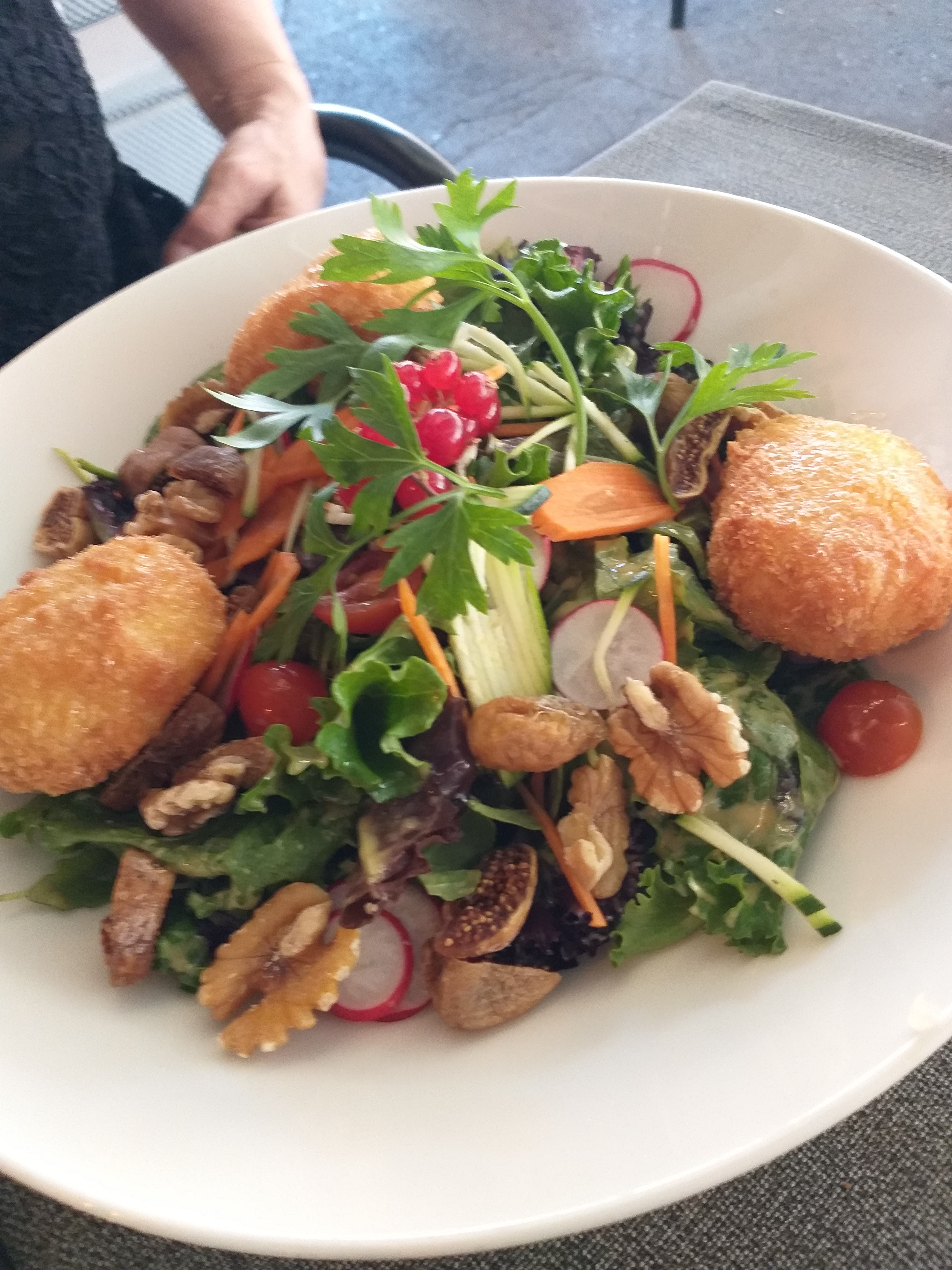 Parfaitement placé. Carte diversifiée : régional, élaboré, simple. Service et accueil impeccable.