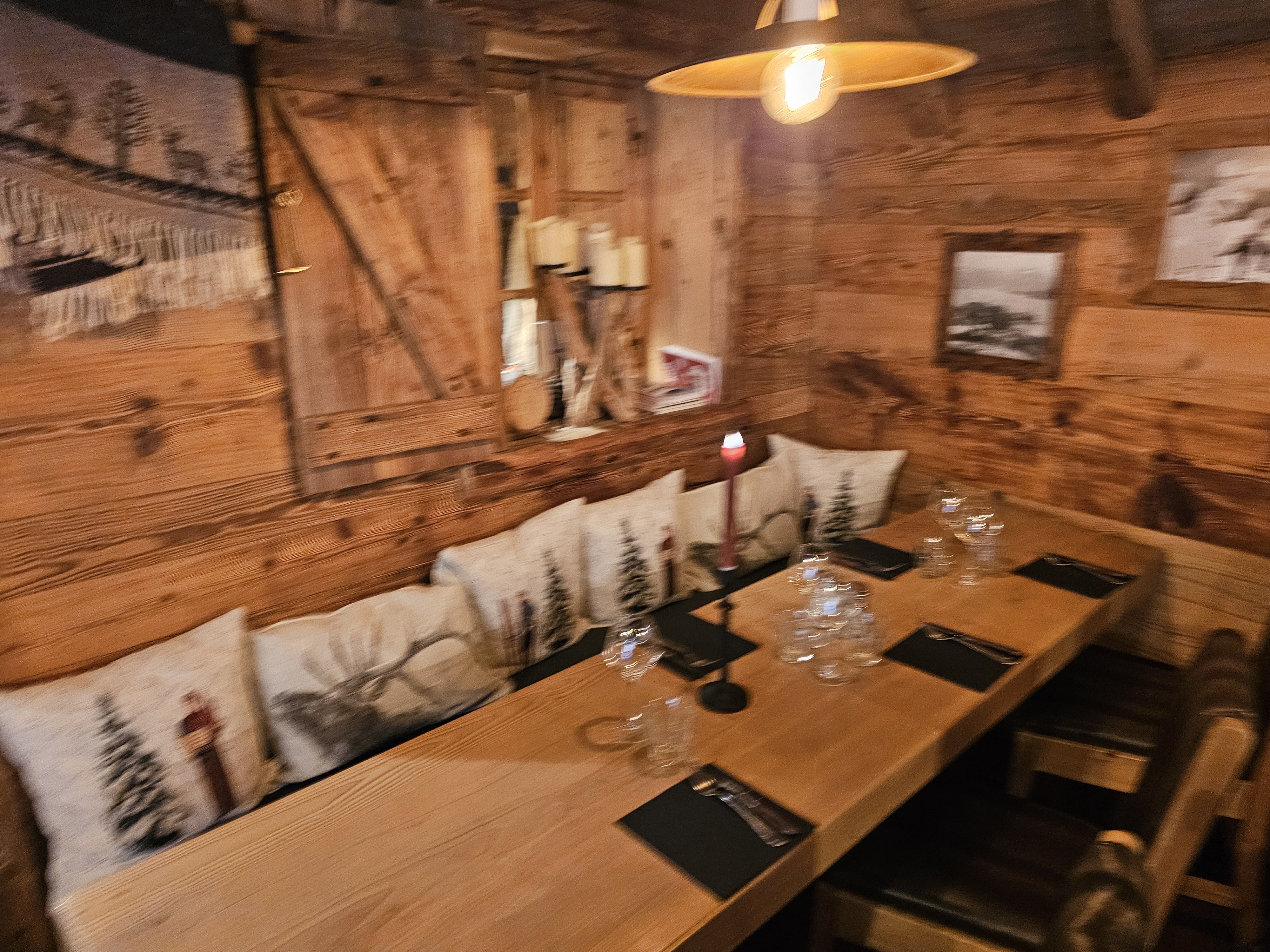 Restaurant joliment décoré, ambiance hivernale traditionnelle. C'est assez grand, ce qui est bien si vous avez besoin de trouver une table sans réservation préalable. Mélange de plats traditionnels (fondue & raclette) et internationaux. Le service était correct, lent mais peut-être parce qu'il était plutôt complet.