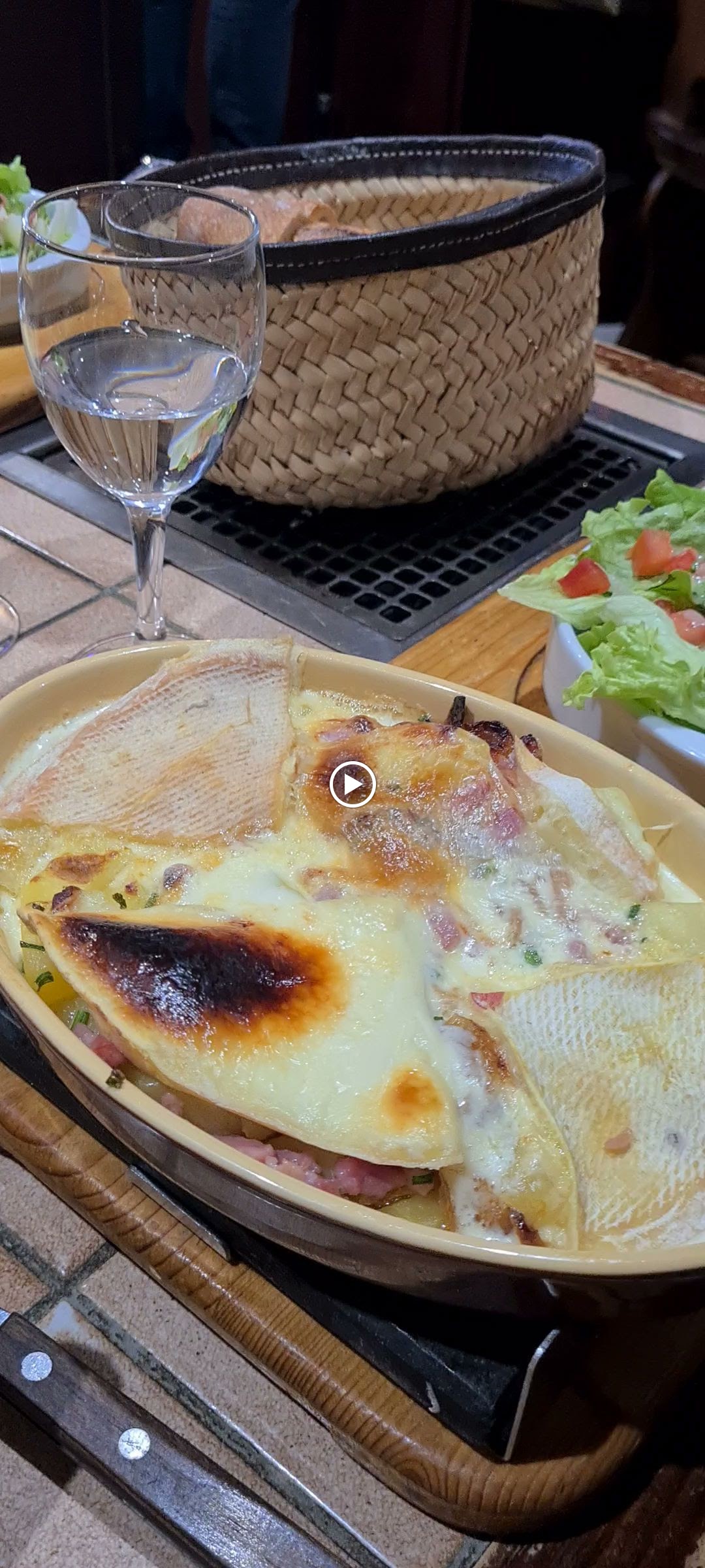Fondue avec du pain baguette qui plus est un peu sec.... De la baguette! Ce n'est pas respecter notre chère gastronomie française. La fondue se sert avec du vrai bon pain. Puis la raclette pour 1 personne la présentation a revoir. Du coup c'est cher pour ce que c'est