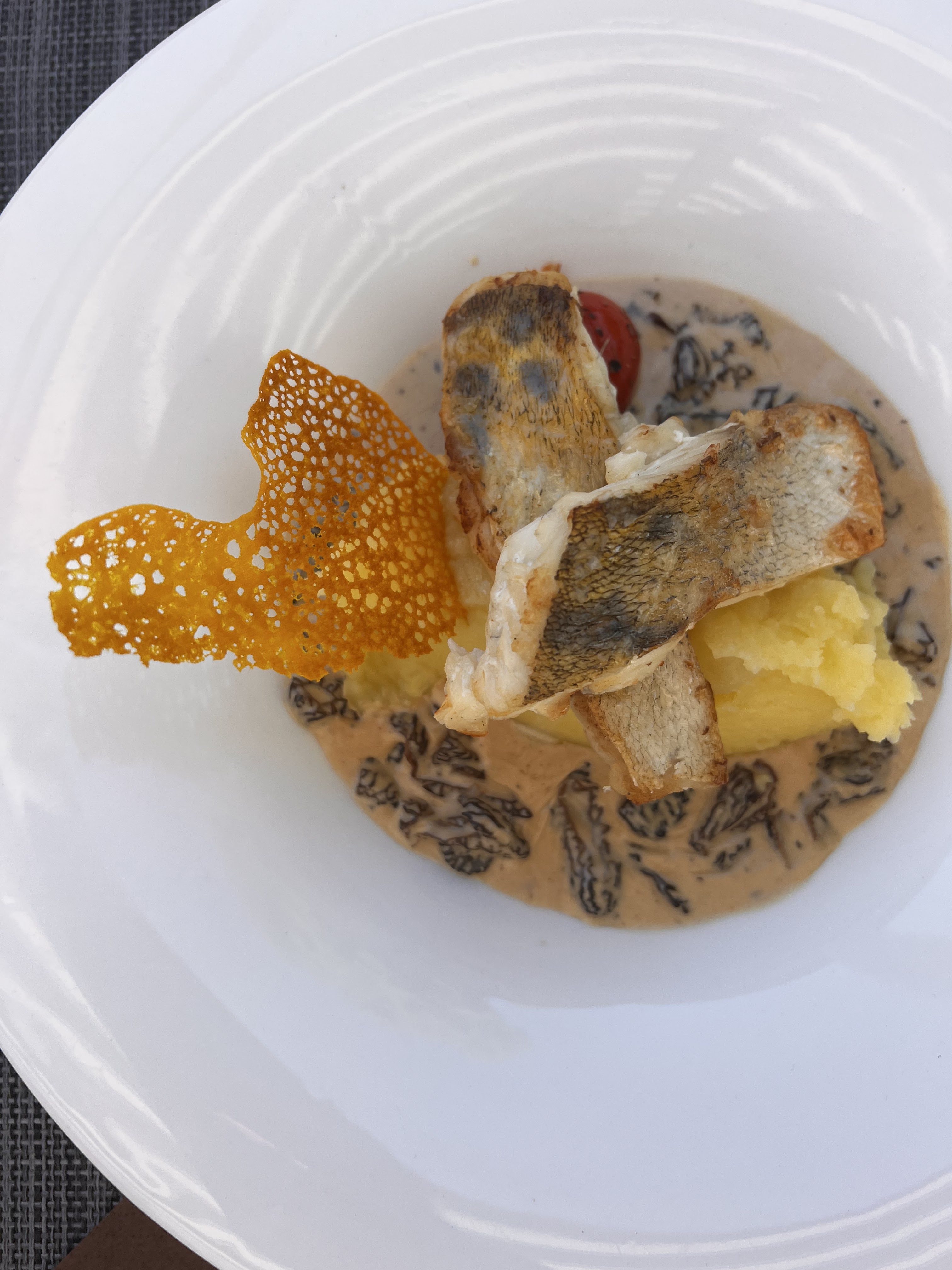 Le restaurant est bien situé à côté du port. Il est très propre et peu sonore grâce aux panneaux absorbant phonique au plafond et mur. Les tables sont bien espacées pour une meilleur intimité. La carte n'est pas très grande, mais c'est souvent un gage de fraîcheur. Il y a un menu du jour, nous avons préféré la carte. Nous nous sommes régalés, tant par les yeux que par les papilles. Mon épouse a pris le dos de cabillaud sauce champagne et moi la friture de carpe. C'était excellent. Félicitations au cuisinier pour sa sauce champagne et l'accompagnement du poisson hyper frais. La sauce tartare avec la friture de carpe était très bonne, sans ail pour être digeste. Le rapport qualité prix est excellent. Nous avons payé pour 2 avec entrée crudité, plat, dessert et 1 verre de vin 52 euros. Absolument correct. Cerise sur le gâteau, le repas était très digeste, malgré friture, frites, sauce tartare, glace avec chantilly ! Seul petit bémol, une gamelle d'eau n'a pas été proposée à notre chien. Nous reviendrons. Filet de sandre au vin jaune et morilles, nous te dégusterons.