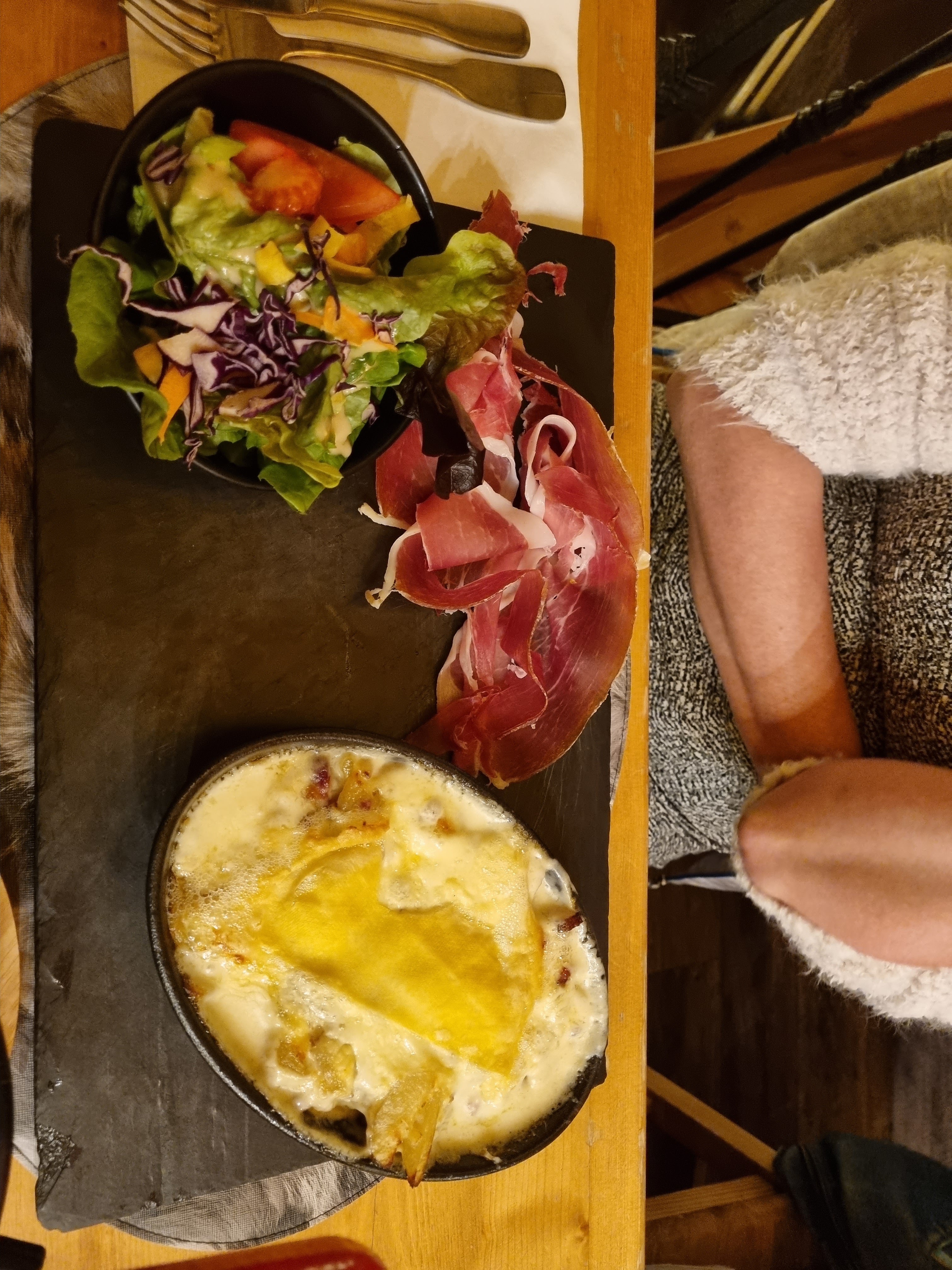 Le cadre est sympathique, le personnel accueillant mais très déçue par la raclette pour 7 personnes ! En effet 3 plats de pomme de terre, 3 plats de salade et 2 petites planches de charcuterie coupée à l’italienne avec une seule tranche de jambon blanc, de bayonne et quelques tranches de rosettes ! Pour 29 € par personne c’est très abusé ! Dommage… nous ne reviendrons pas.