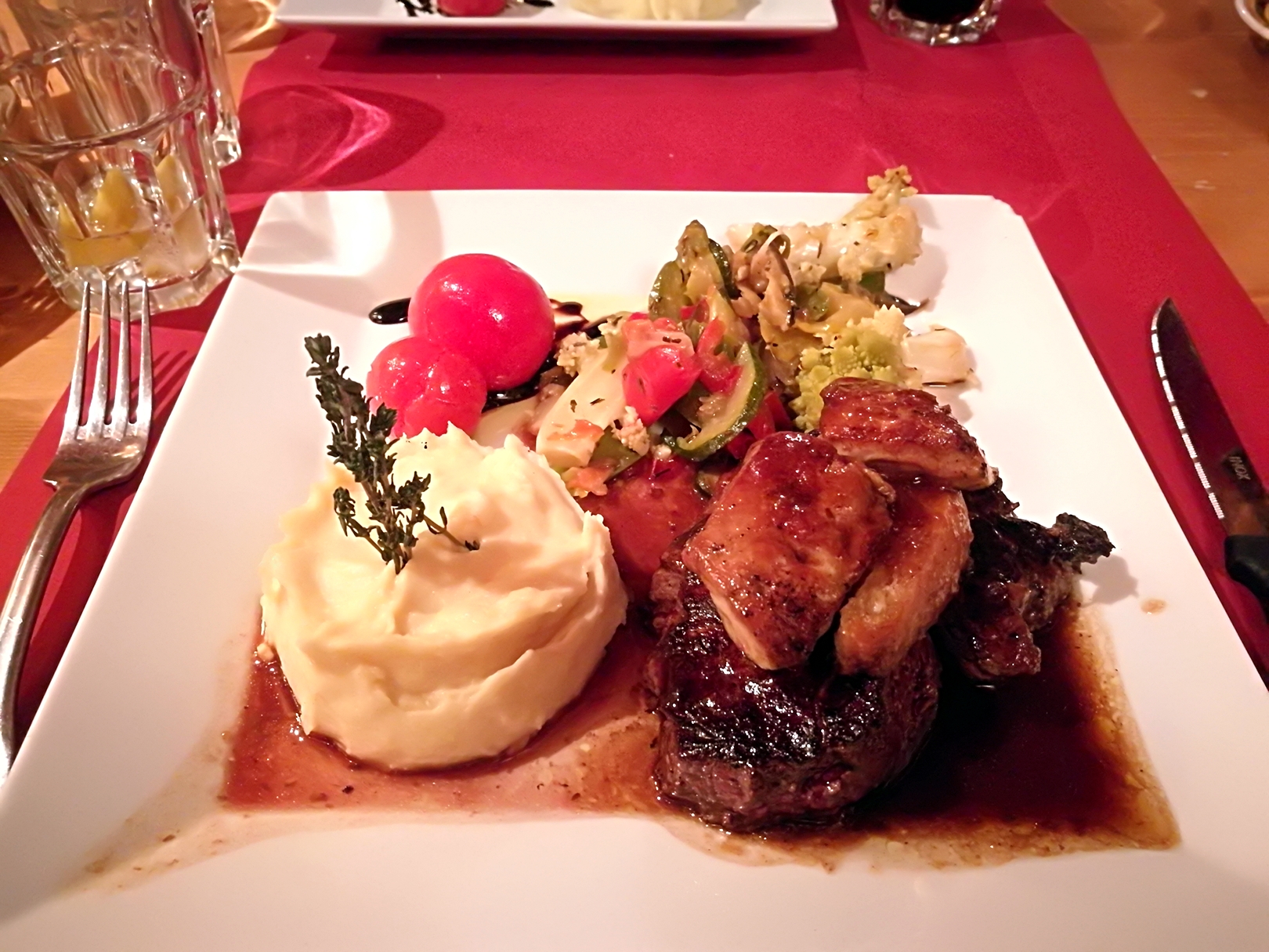 Déception sur les plats… la fondue était fade et épaisse servie à peine chaude. Le filet de bœuf n’était pas non plus au rendez vous avec de petite quantité. Comptez 22€ par personne pour la fondue et 31€ pour le filet. Dommage le cadre est pourtant agréable et les serveuses sympathiques !