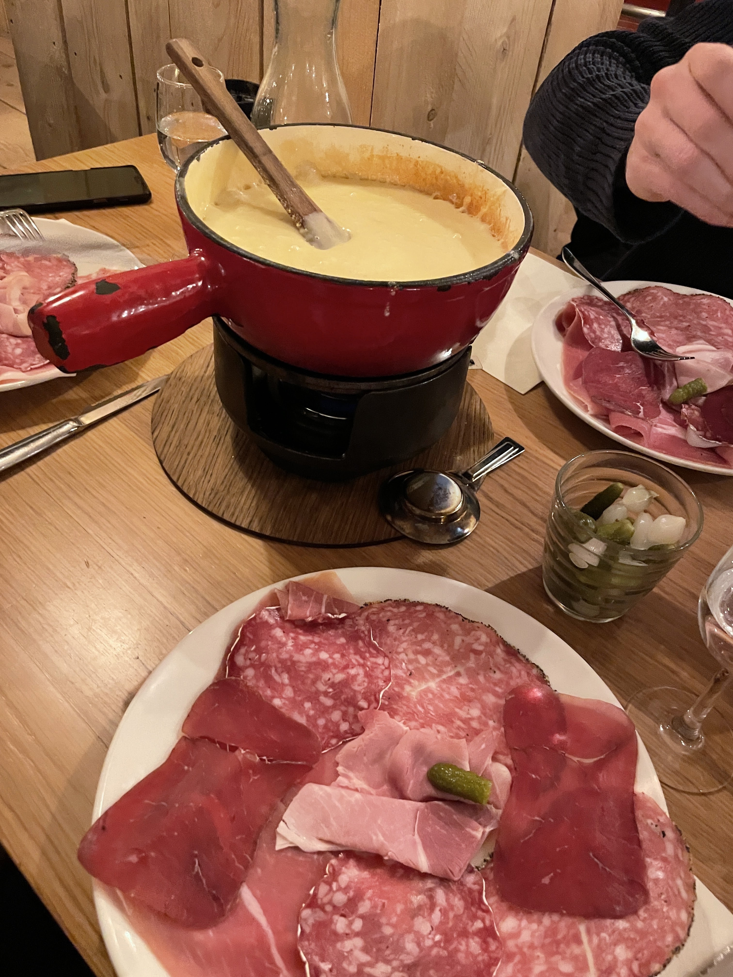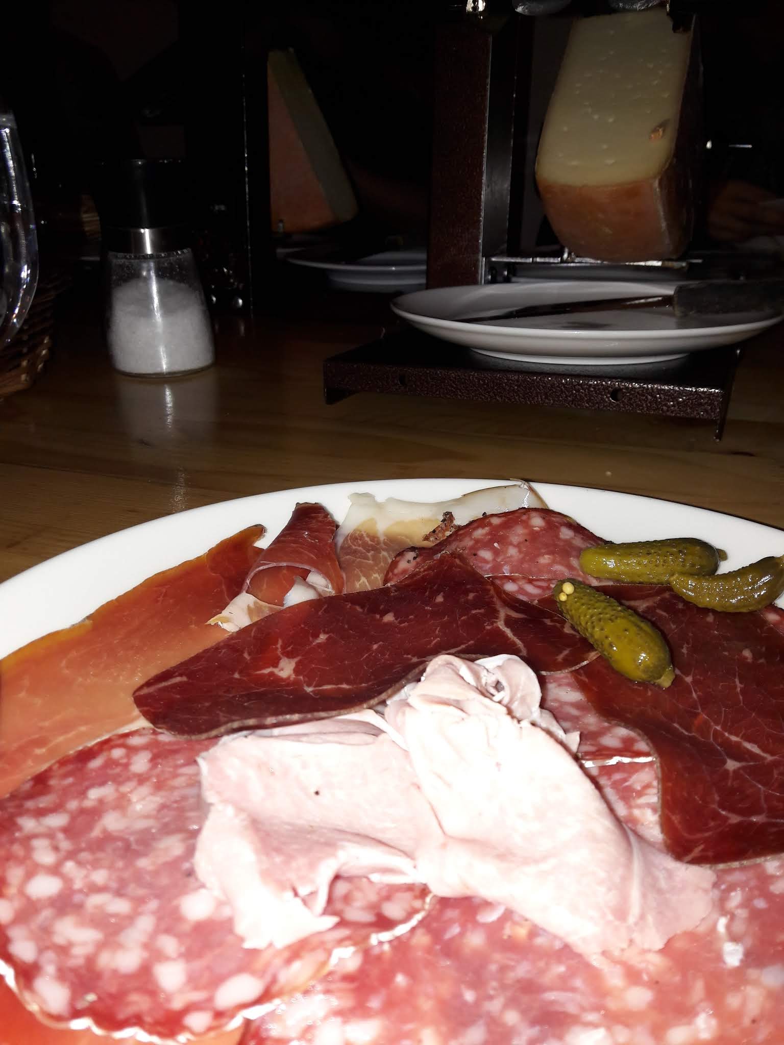 Très bonne fondue et raclette! Charcuterie de bon goût! Une raclette très (trop?) Copieuse pour une personne! Service rapide, parfois un peu sec dans la démarche mais agréable malgré tout. Bonne ambiance montagnarde !