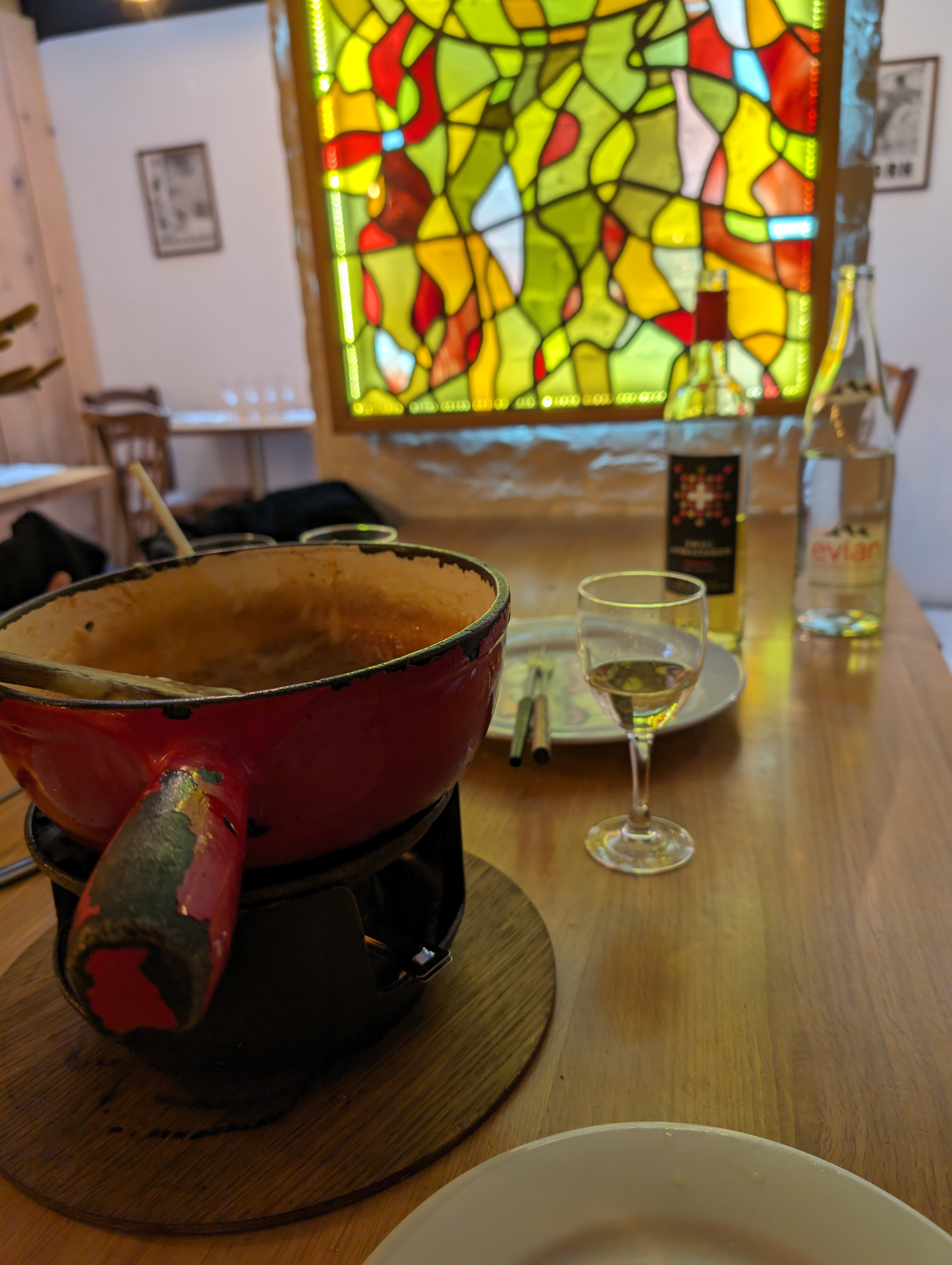 Un endroit très sympa. Les fondus sont très bonnes et les serveurs très chaleureux et sympa, malgré un service un peu rapide. Les desserts sont très bon aussi. Je ne recommande pas la charcuterie par contre.