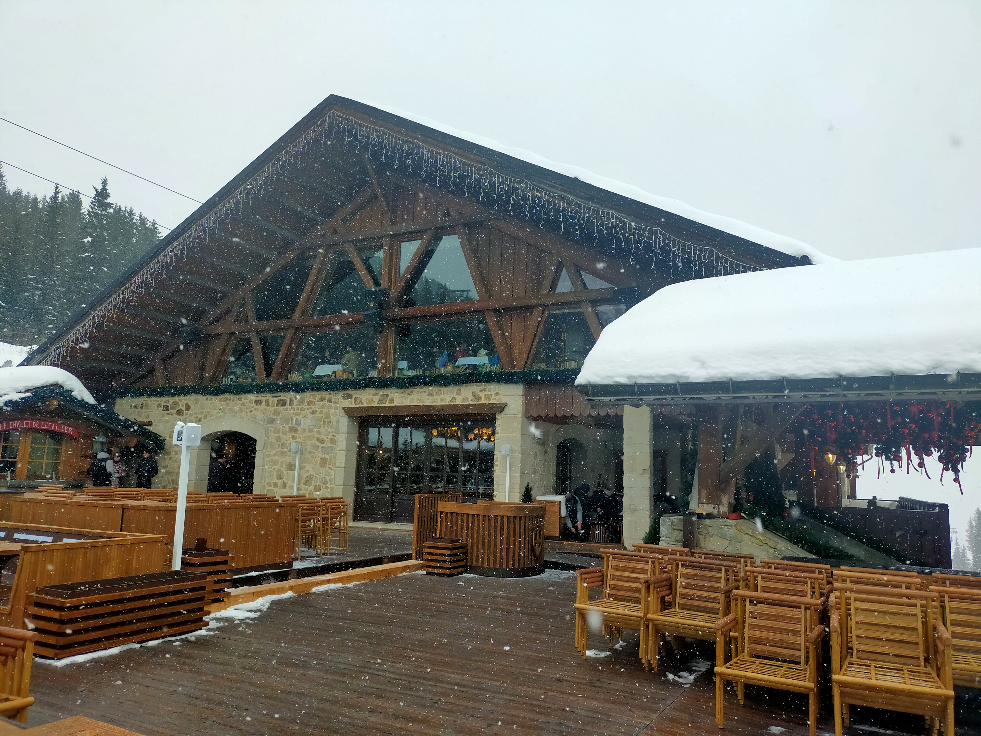 Restaurant semi festif sur les pistes, personnel en tenue ( savoyarde ), DJ, splendide buffet de dessert. On sait où on va, sait où on est, pas pour toutes les bourses.