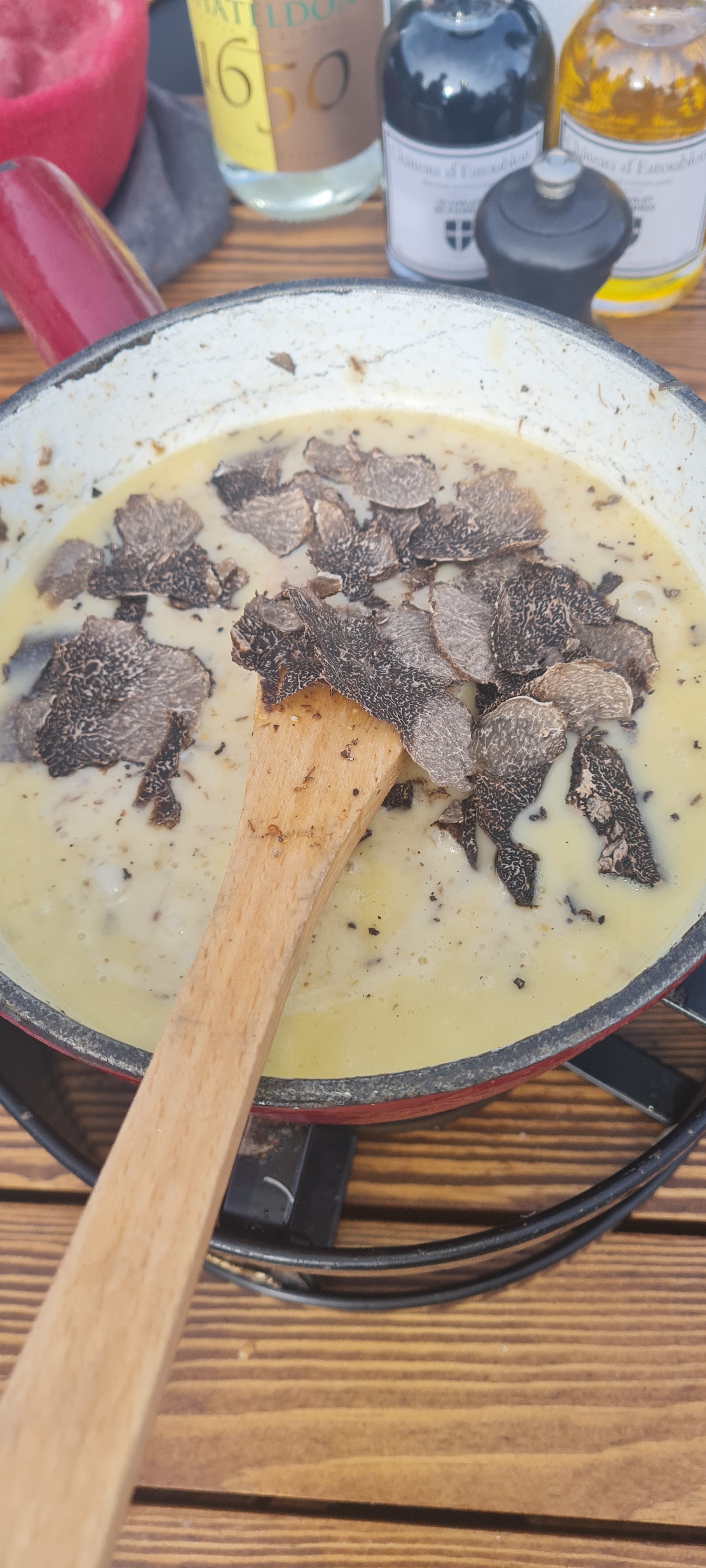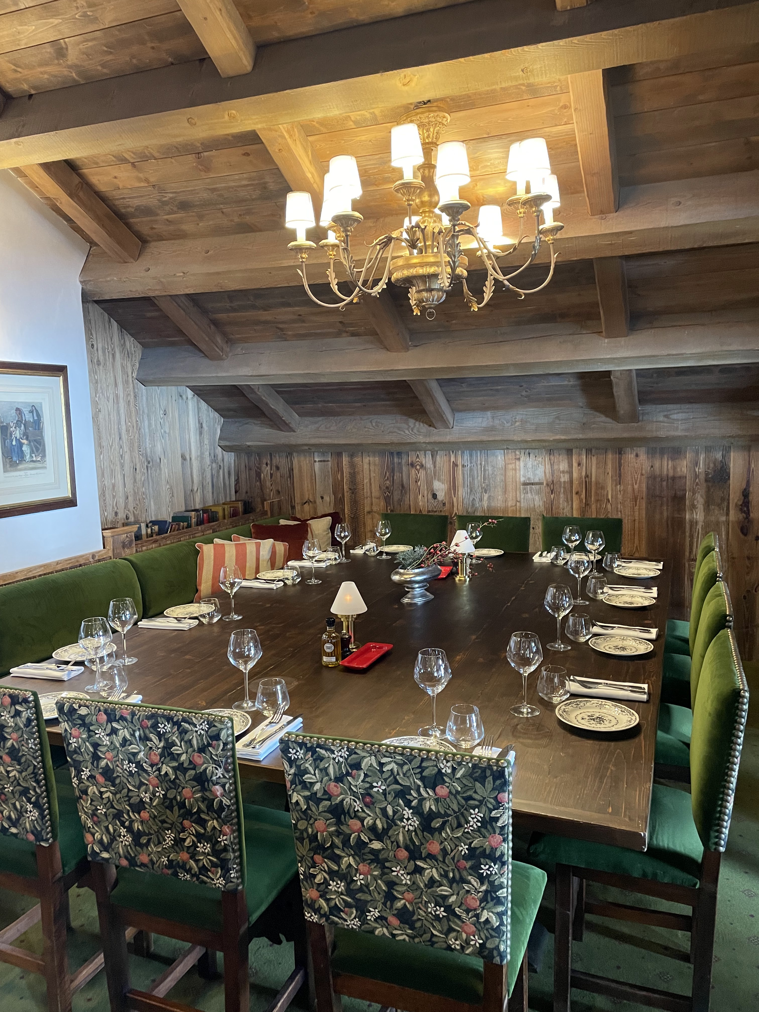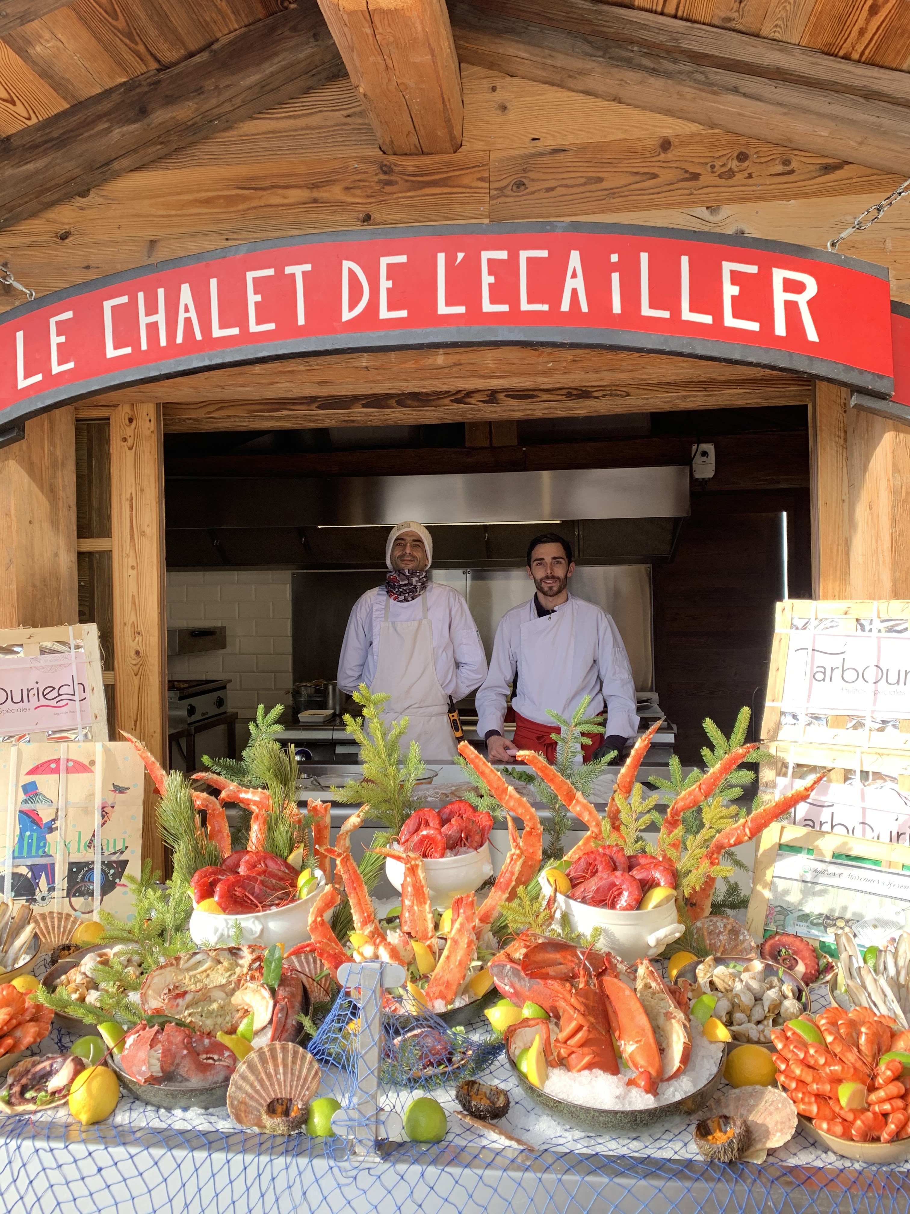 Après une matinée chocolat chaud autour du feu ouvert, nous avons tous les deux réservé pour revenir déjeuner le même jour. Un déjeuner de ski très agréable avec du champagne, des huitres, de la fondue (française) et divers digestifs sous un ciel bleu ensoleillé avec quelques convives amusants aux tables voisines ont constitué une excellente expérience.