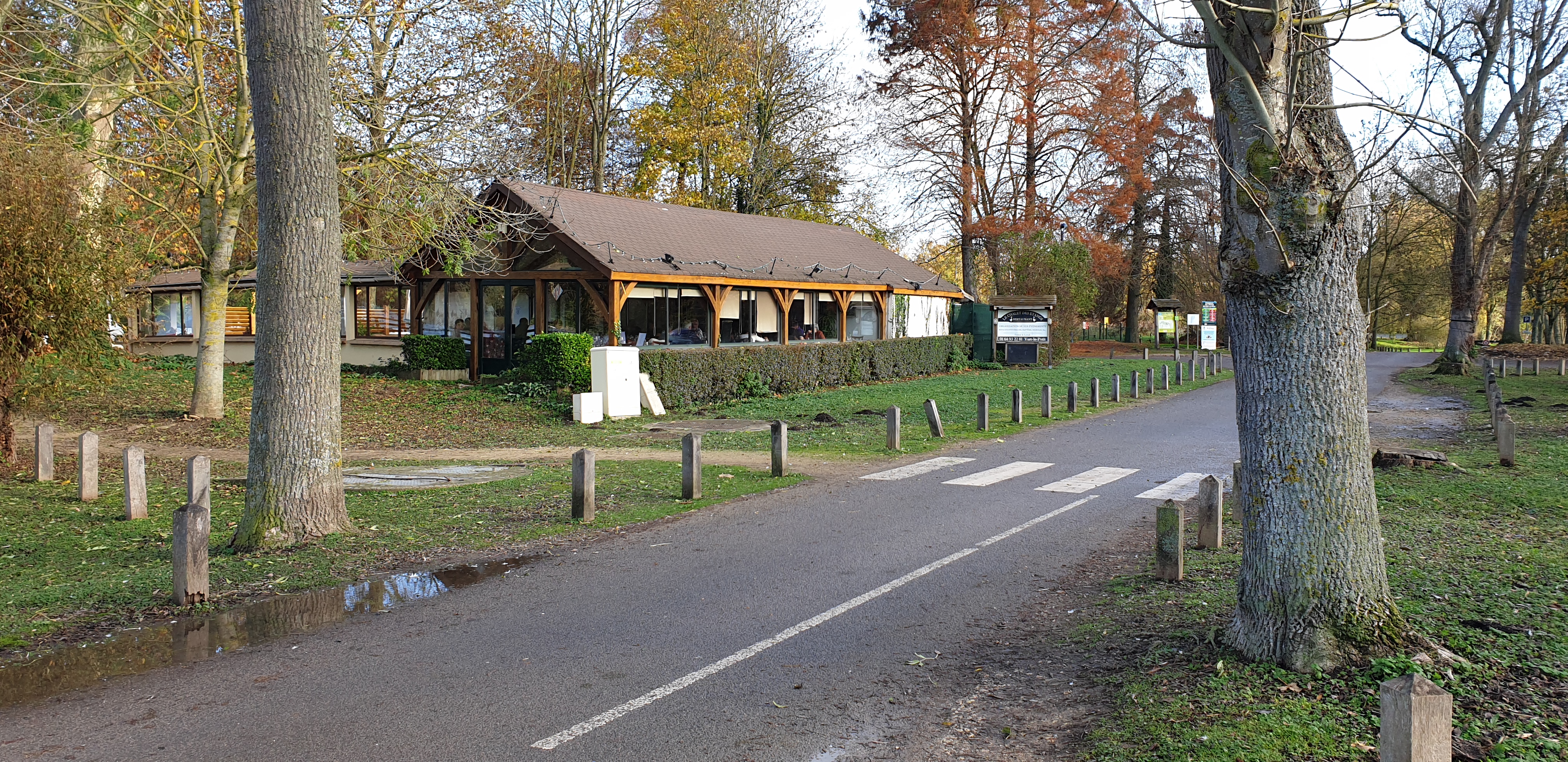Un endroit bucolique, très agréable aux beaux jours. On peut profiter de la vue sur l'étang, les cygnes ... Se promener après, profiter du cadre.. Peut-être juste prévoir des sets de table pour les tables en terrasse pour ne pas manger à même la table en bois, et un rafraîchissement des lieux en extérieur. Le patron est sympathique, la plupart des plats sont faits maison. Les dessert sont très bons. Satisfaits de notre première fois dans ce restaurant très bien situé.