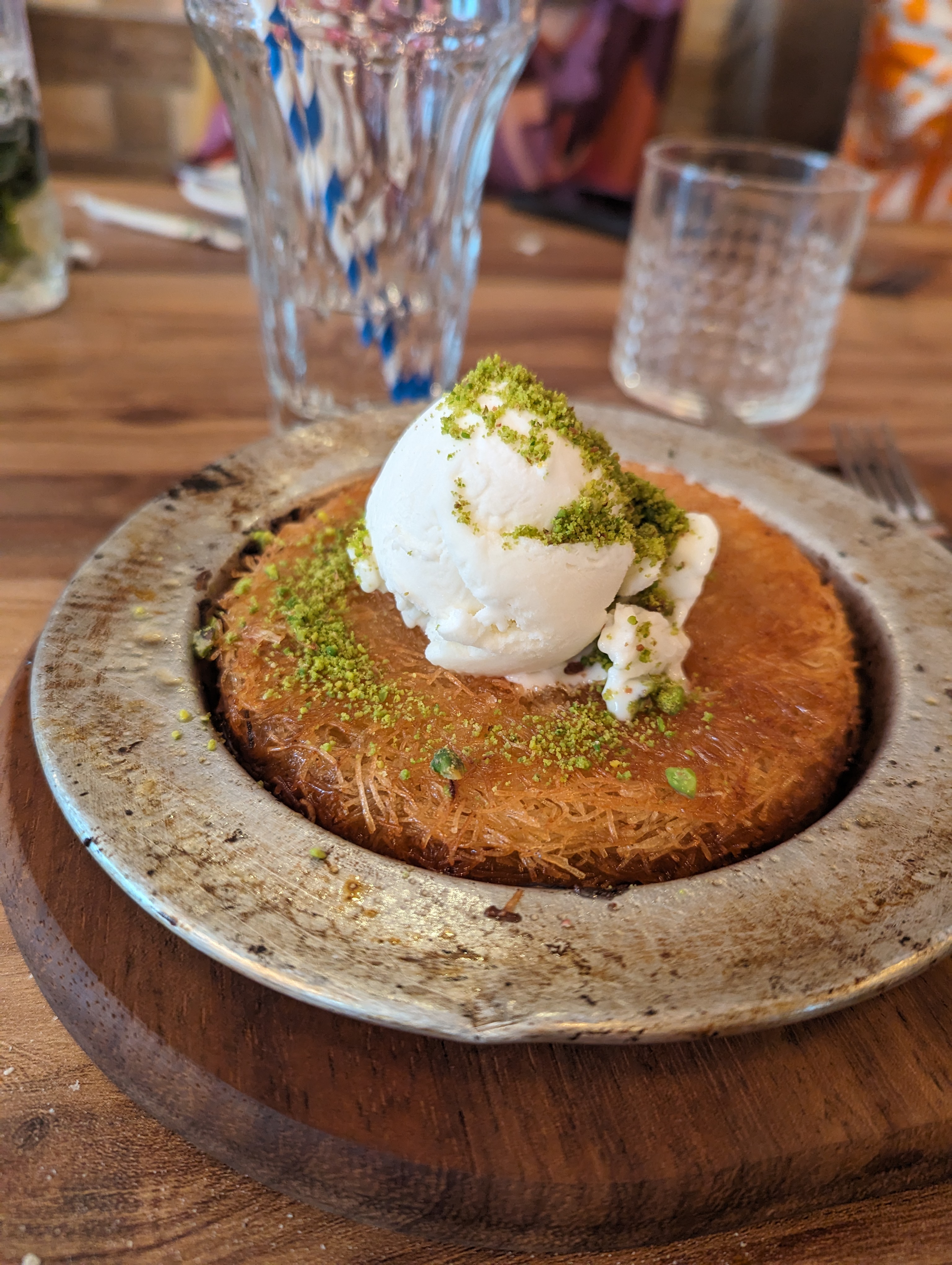 L’équipe du restaurant est très gentille et accueillante. Je m’y suis rendu avec une amie pour un dessert (d’ailleurs le kunefe était incroyable) mais on compte revenir très vite pour découvrir la carte 👌🏻