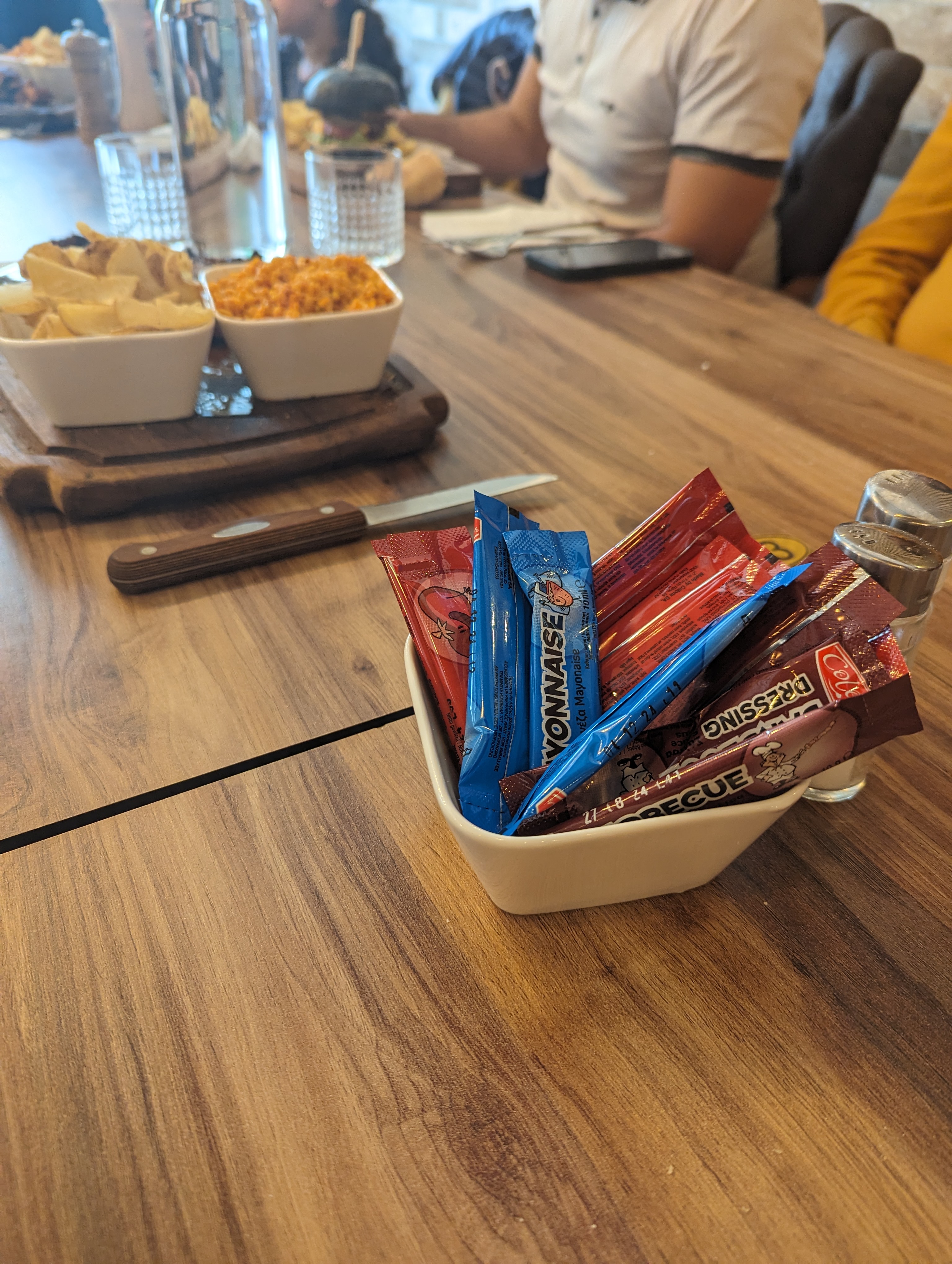 Cadre sympathique, facile de se garer grâce au supermarché à côté. Pour la cuisine c'était mitigé, le boeuf cheddar n'était pas à la hauteur de mes attentes. Le plat était bon ( le chalet steak) Pour le dessert un kunefe très bon. Au niveau du service ce n'était pas ça du tout nous avons demandé deux fois du citron qui n'est jamais arrivé. Les cocktails sont arrivés bien tard pendant le plat. Pour les sauces je n'ai pas compris ils nous ont ramené les sauces comme au fast food Pour le prix des plats et le cadre du restaurant servir dans un Petit récipient serait tellement plus agréable
