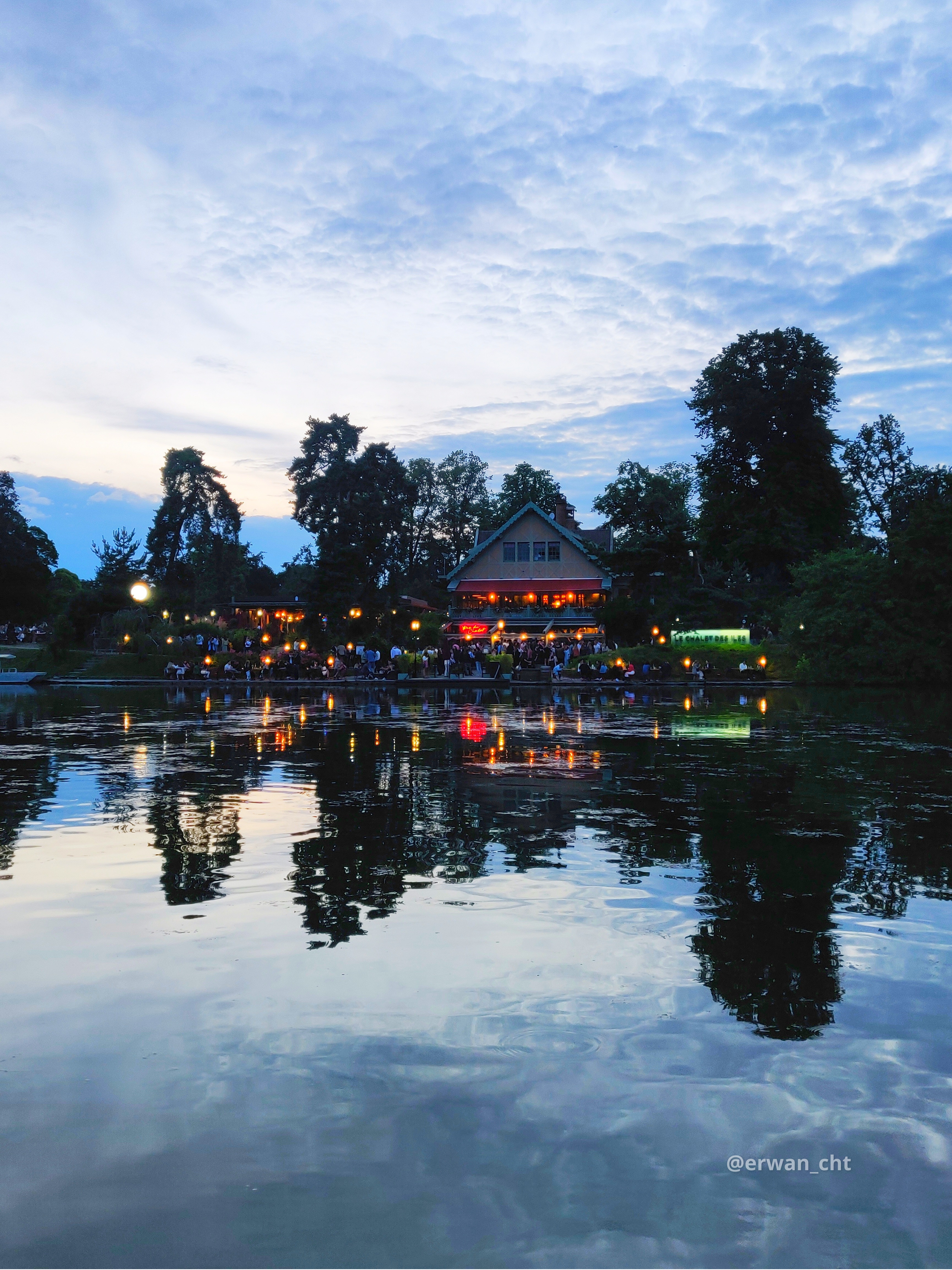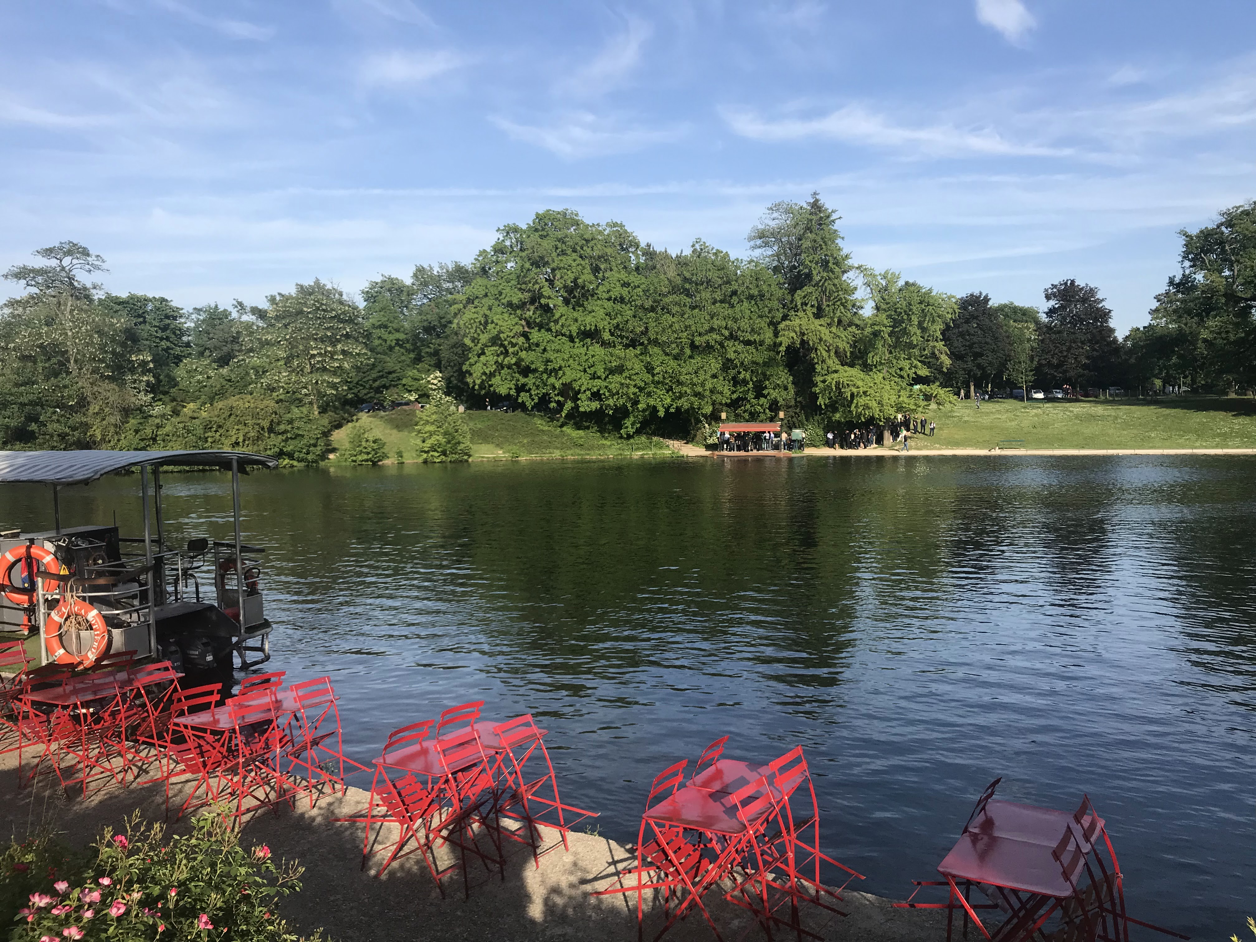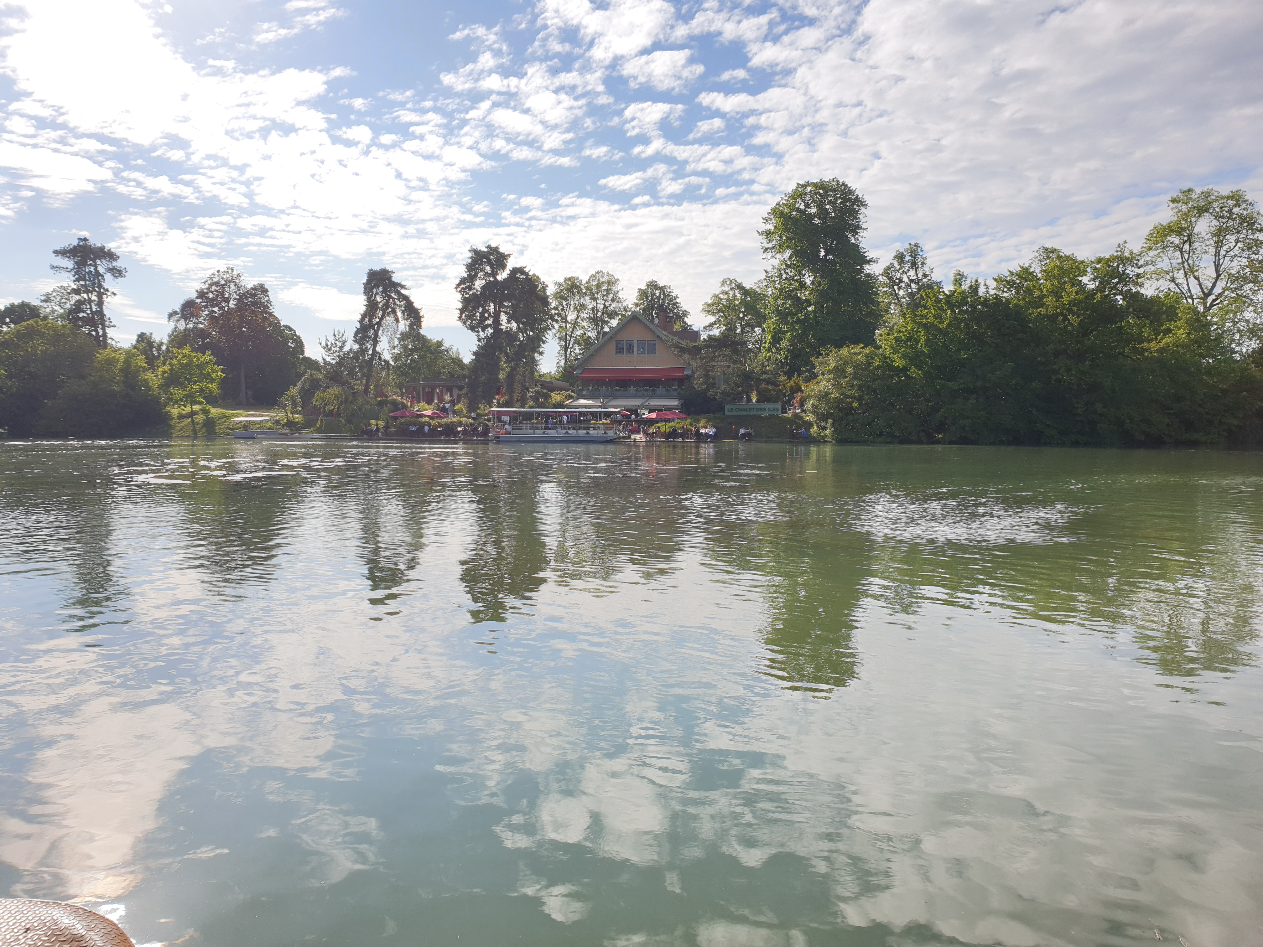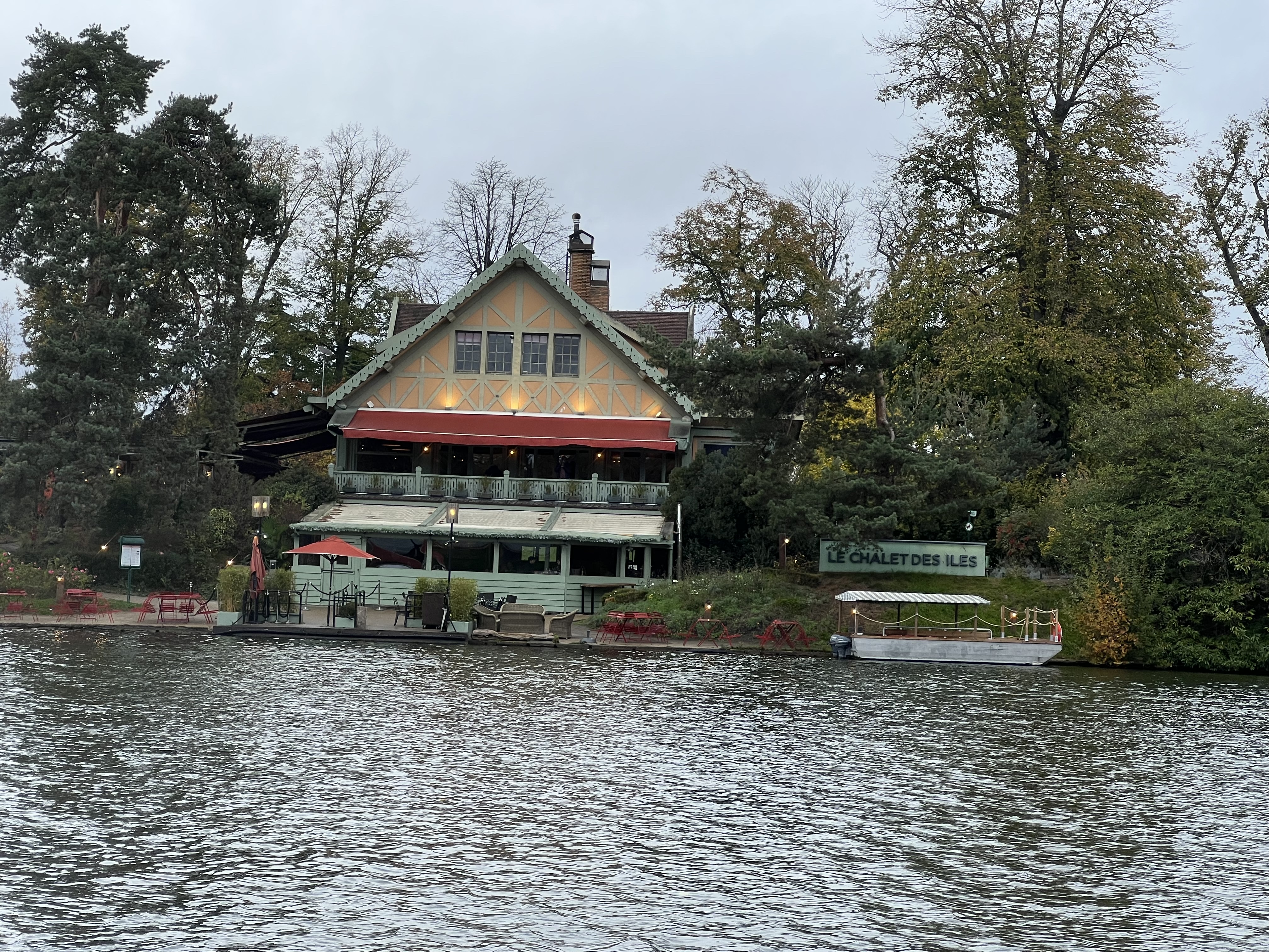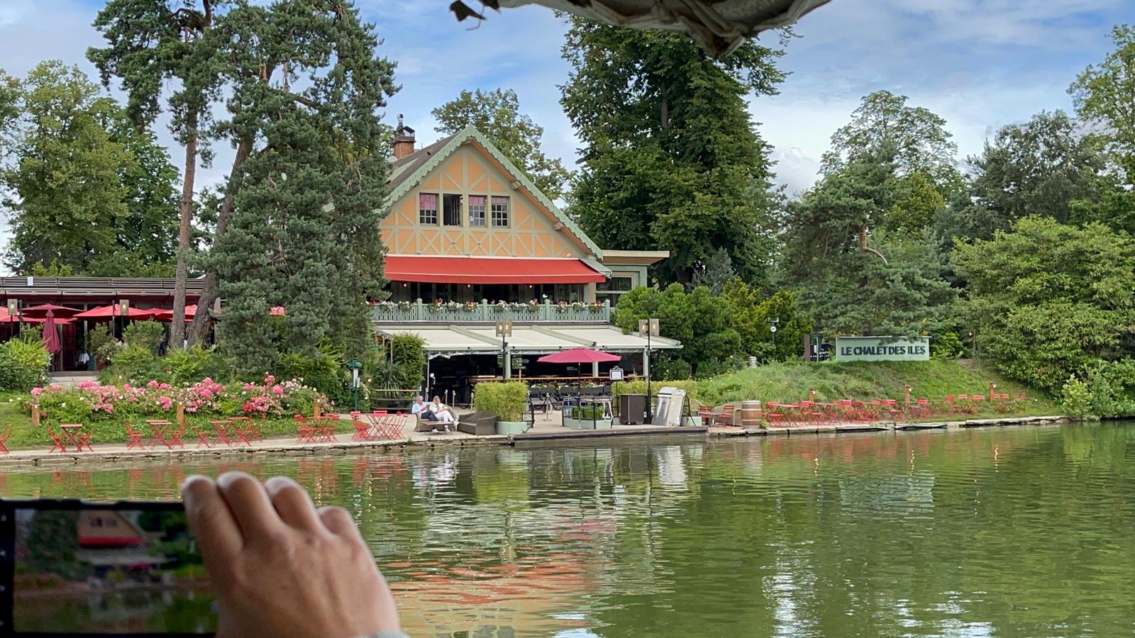 Bel havre de paix sur une petite île nichée sur le lac inférieur au bois de Boulogne... Le chalet des îles fait bar et restaurant avec service bateau pour aller chercher les clients sur la rive opposée. 👍😉