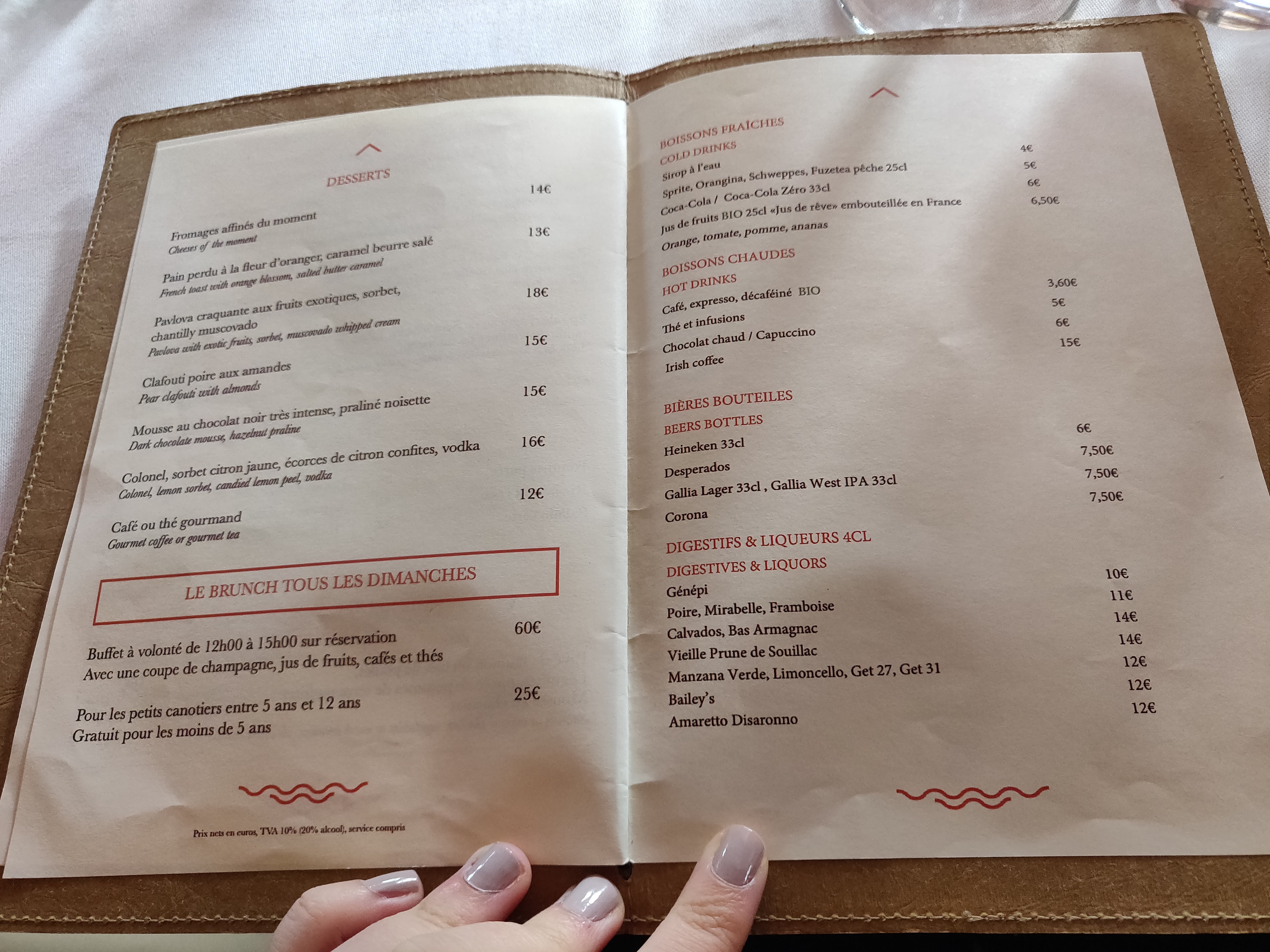 Magnifique découverte, je suis allée dimanche pour le brunch, il est très copieux et délicieux par contre manque de diversité au niveau des jus. Les serveurs sympathiques, il y a juste une longue attente pour le champagne et l’eau mais sinon ils sont à l’écoute y a juste une serveuse brune qui n’a pas du tout le sourire mais les autres sont adorables. Le cadre est exceptionnel.