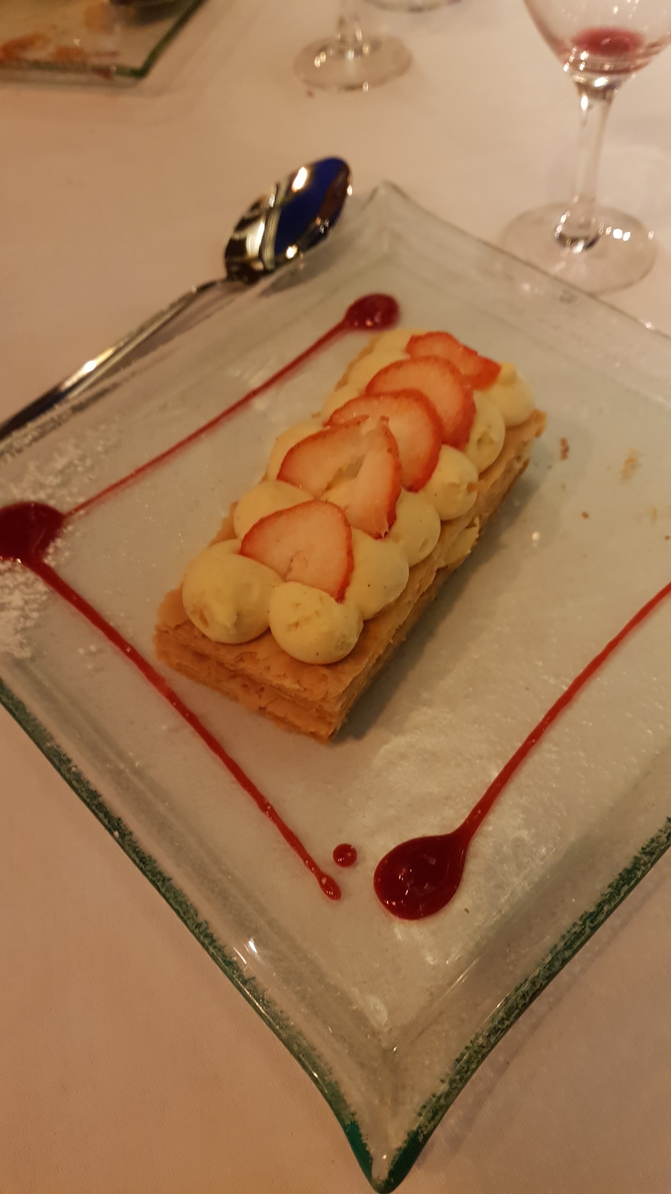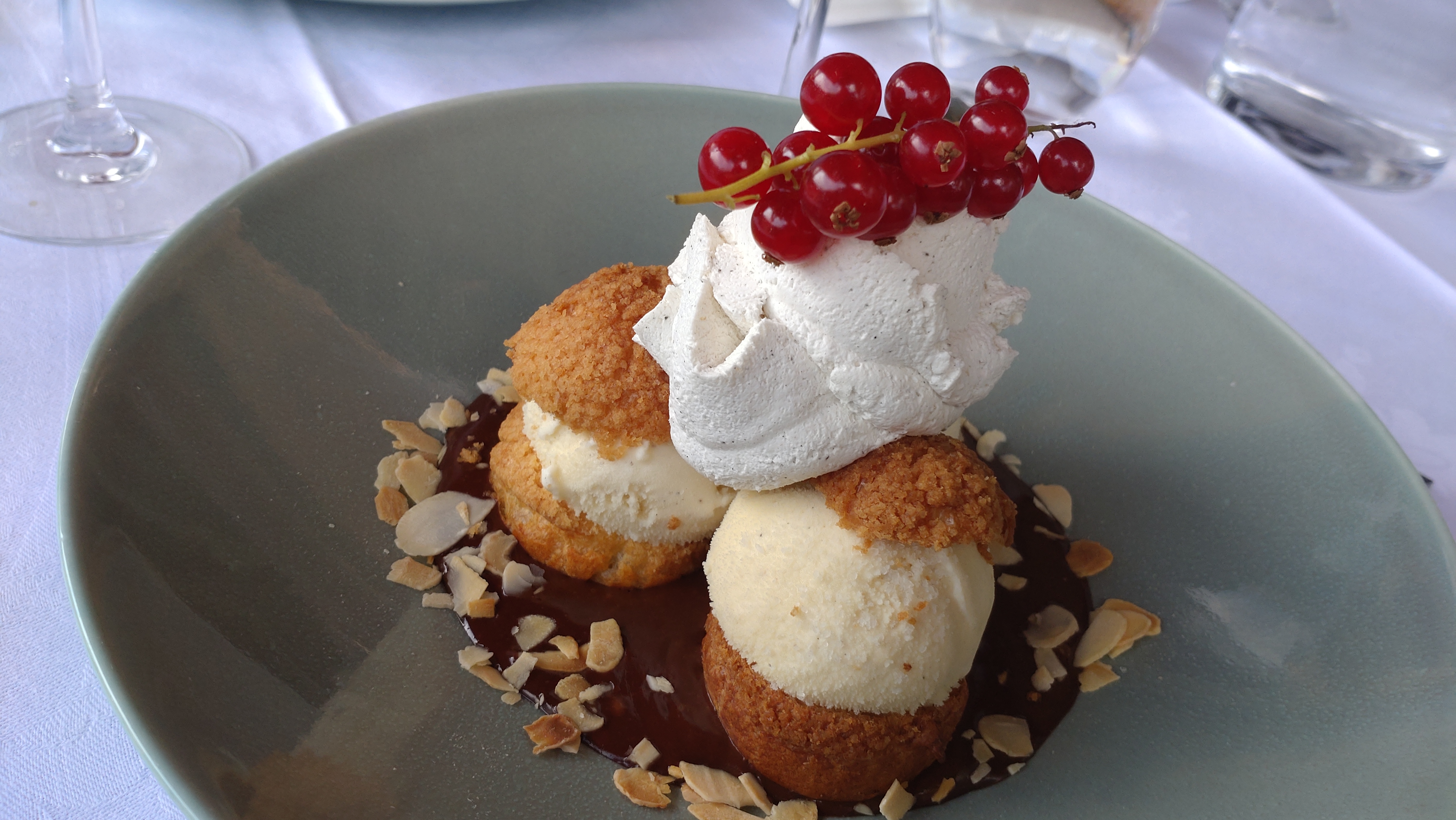 Nous avons très bien mangé mais il est choquant que pour un établissement de cette classe on ne nous ait pas prévenu lors de la prise de commande que certains plats proposés n’étaient en fait plus disponibles et que c’est lors du service que l’on a été servi de desserts non conformes à la carte . Tout était bon mais pour certains d’entre nous si nous avions su cela nous aurions choisi un autre dessert. Enfin il est aussi choquant qu’il n’y avait plus de glaces à proposer aux enfants .