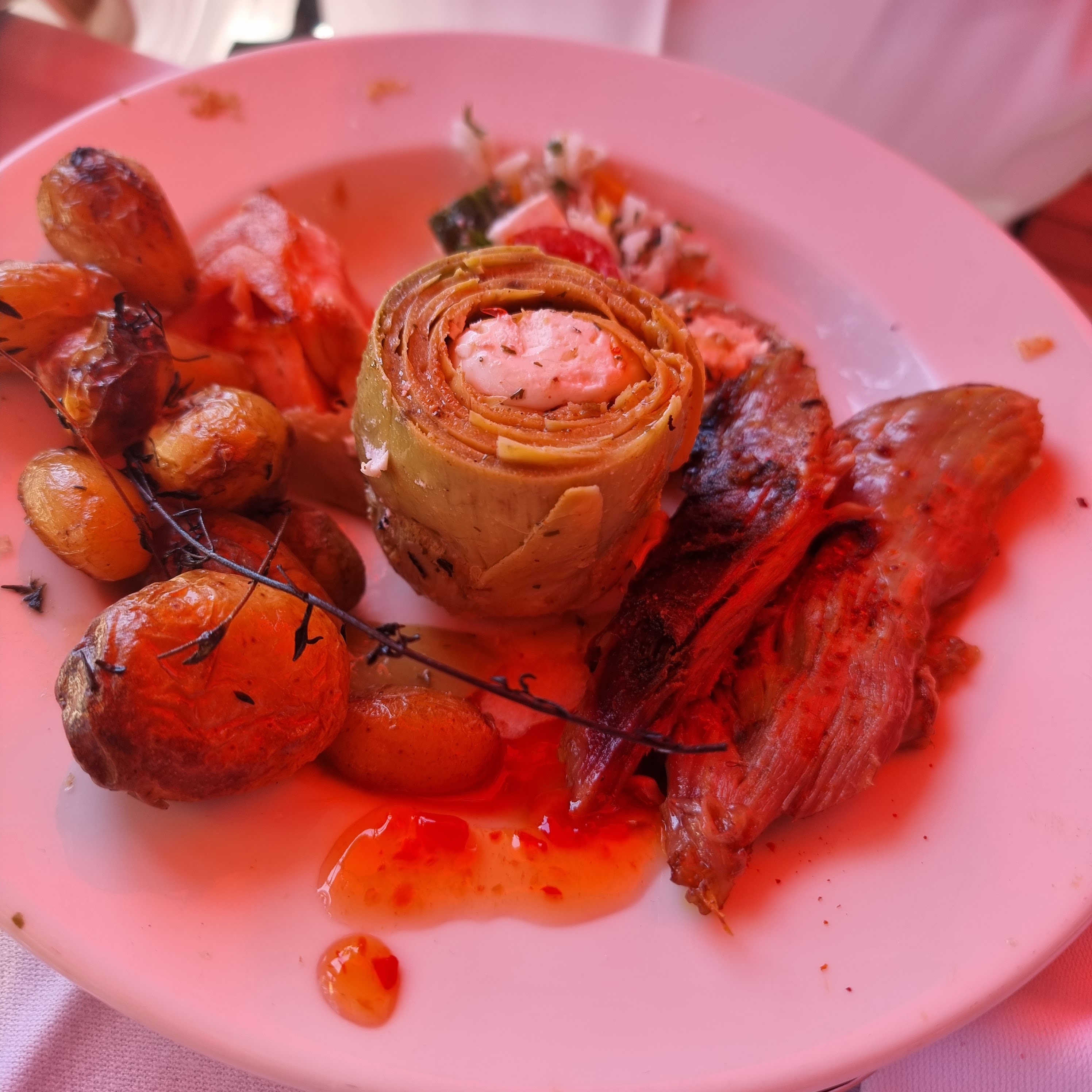 Bonjour installez vous confortablement avant de lire l’avis, A savoir nous avons réservé à 22h le restaurant pour l’anniversaire de mon amie, nous avons littéralement mangé dans le noir, énormément de moustique autour des tables en plastique l’endroit qui semblait être « chic et réputé » n’ai en faite qu’une sombre mascarade. Cela faisait ambiance très mariage bas de gamme. La serveuse nous a jetée les menus qu’on a dû rattraper au vol tout comme la bouteille de vin qui a été renversée sur mon amie. Les plats étaient très bon mais le rapport quantité prix est médiocre. Nous étions un groupe de 7 filles la serveuse nous a prise pour ses copines et nous a tutoyé toute la soirée. Ne parlons même pas des toilettes qui était pire que celle d’un festival entre odeur nauséabonde et les poubelles de la cuisine face aux toilettes c’était scandaleux. Et cerise sur le gâteau ! La serveuse nous a demandée de nous encaisser nous même en nous donnons en main propre le TPE car elle était trop occupée à se faire draguer à une autre table. La serveuse était tellement déchaînée toute la soirée qu’elle en a perdu sa CB à côté de notre table on aurait clairement pu payer avec sa carte au vu de notre encaissement seule. Je ne recommande absolument pas ce lieu avec un service aussi médiocre nous pensions venir dans un endroit chic et classe c’était en effet tout l’inverse.
