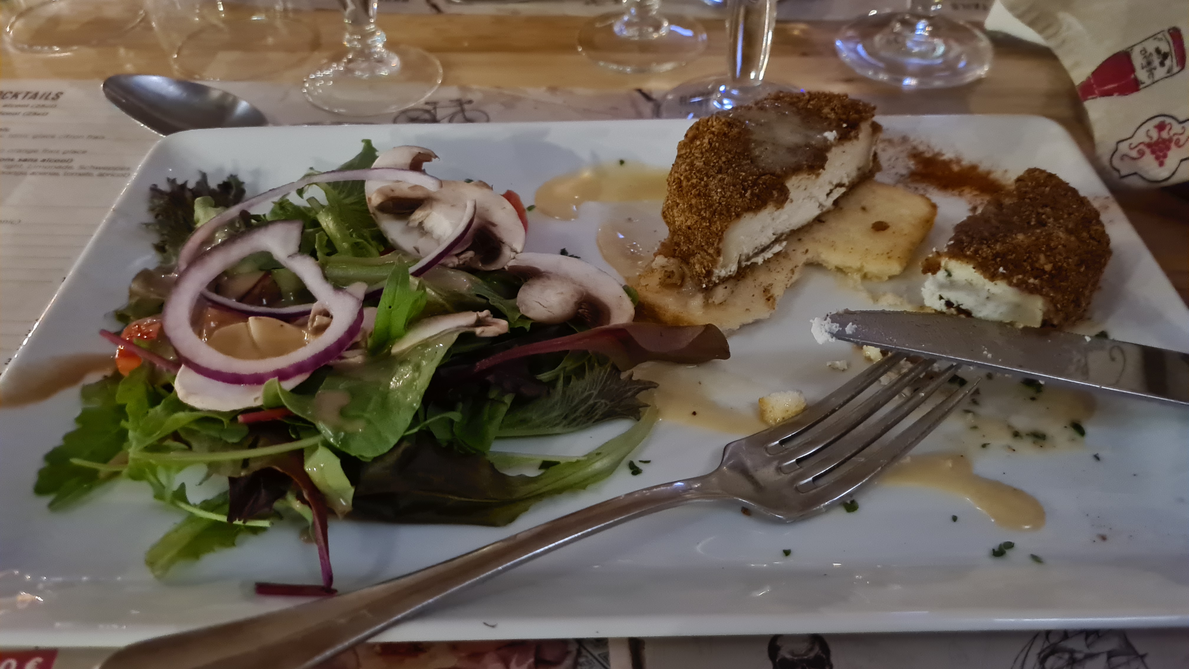 Plat très bon demi camembert/entrecôte sauce roquefort avec petit gratin et legumes en accompagnement et coupe de la botte. . Super service assuré par Jimmy ( souriant et agréable) merci à lui.