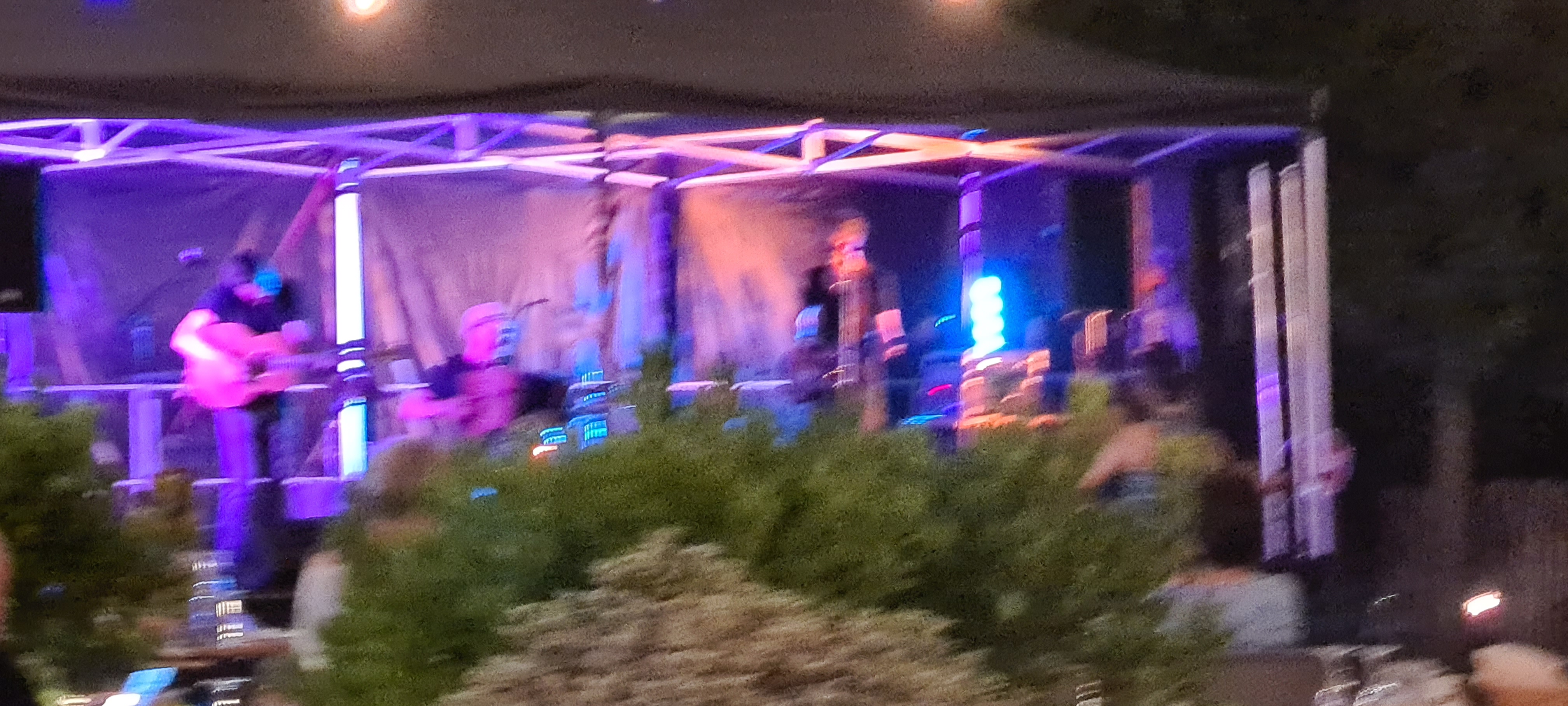 Soirée guinguette avec groupe FRED ET ROXY très bon répertoire varié. Dommage que l’on soit obligé de danser sur des cailloux😫 Cadre agréable, planche correcte (prenez le temps de couper le melon en tranches, cela prends 1 mn et cela évite d’avoir les doigts dégoulinants). Personnel très gentil mais on sent un manque de professionnalisme, nous avons demandé plusieurs fois le pain et le vin alors que notre planche était servie.