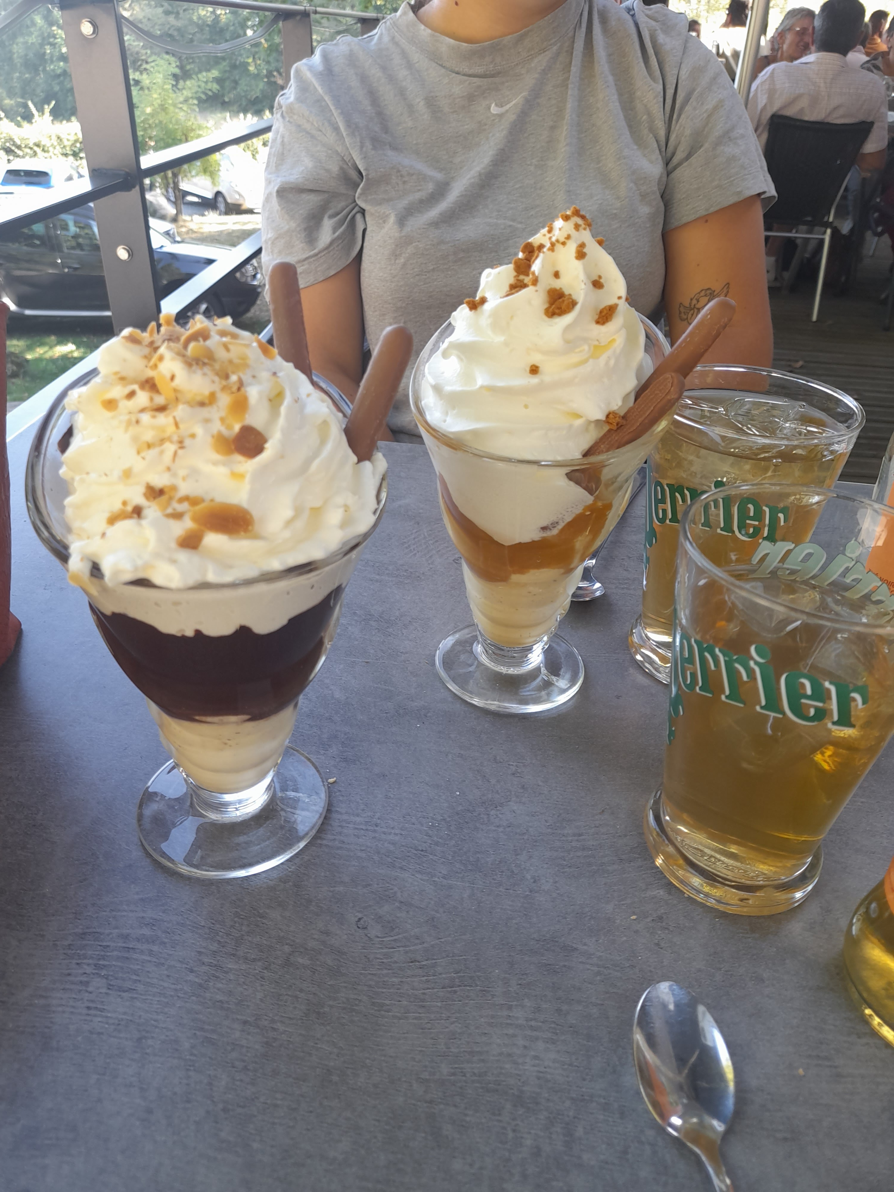 Superbe terrasse. La bière locale est bonne. Le banana Split manquait d'un peu de chocolat mais la chantilly est à tomber, légère et délicieuse. De nombreuses activités à réaliser comme de l'accrobranche et la visite des Pierres Jaumâtres si vous aimez marcher.