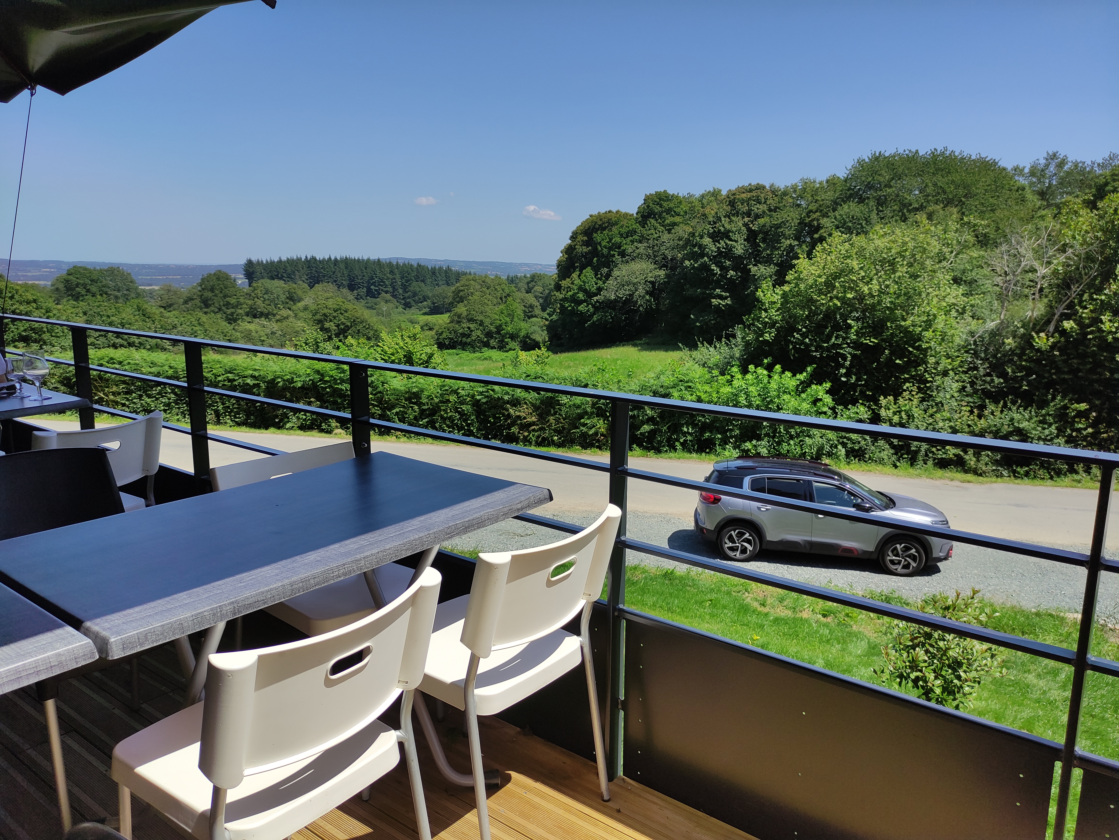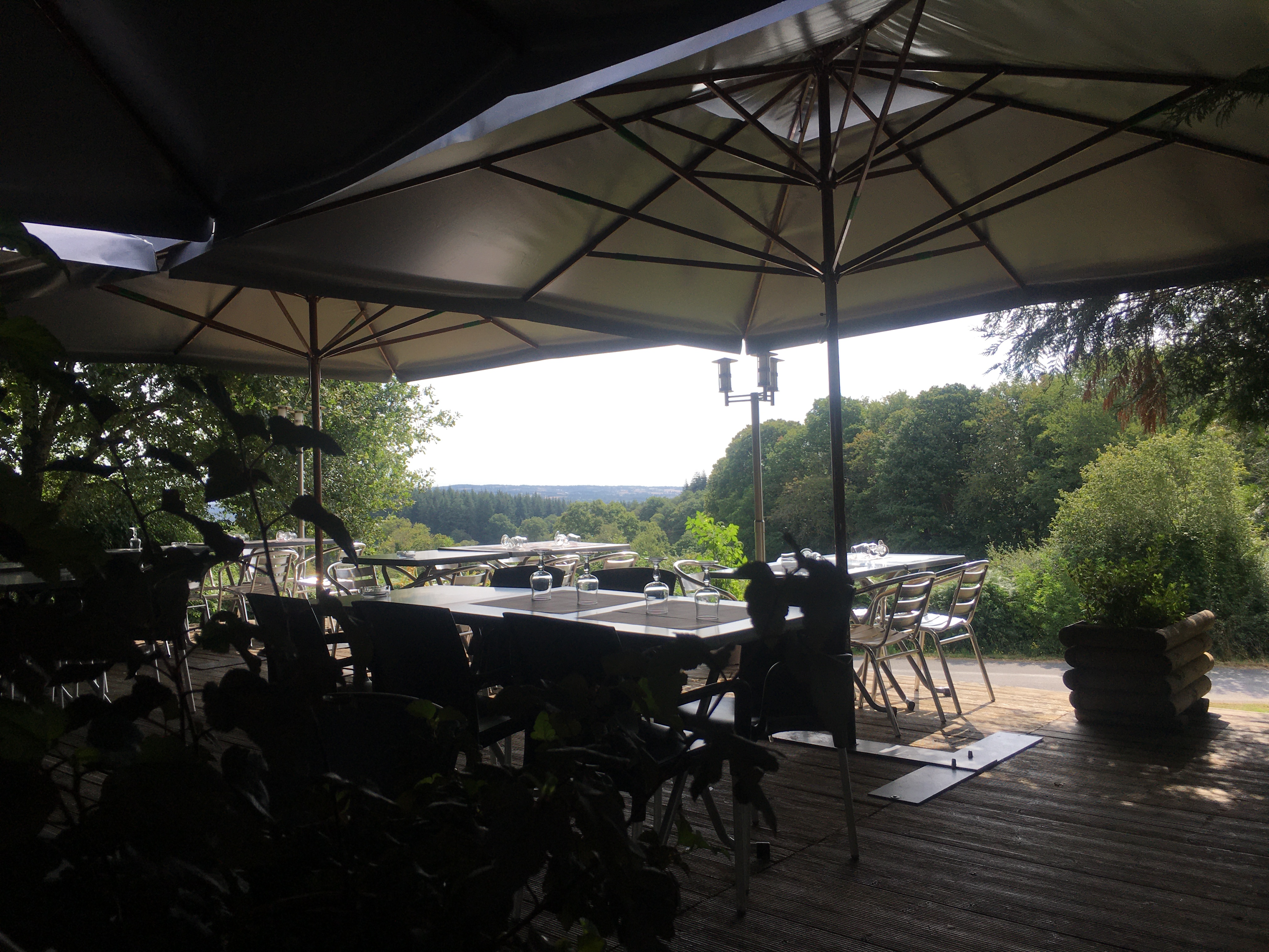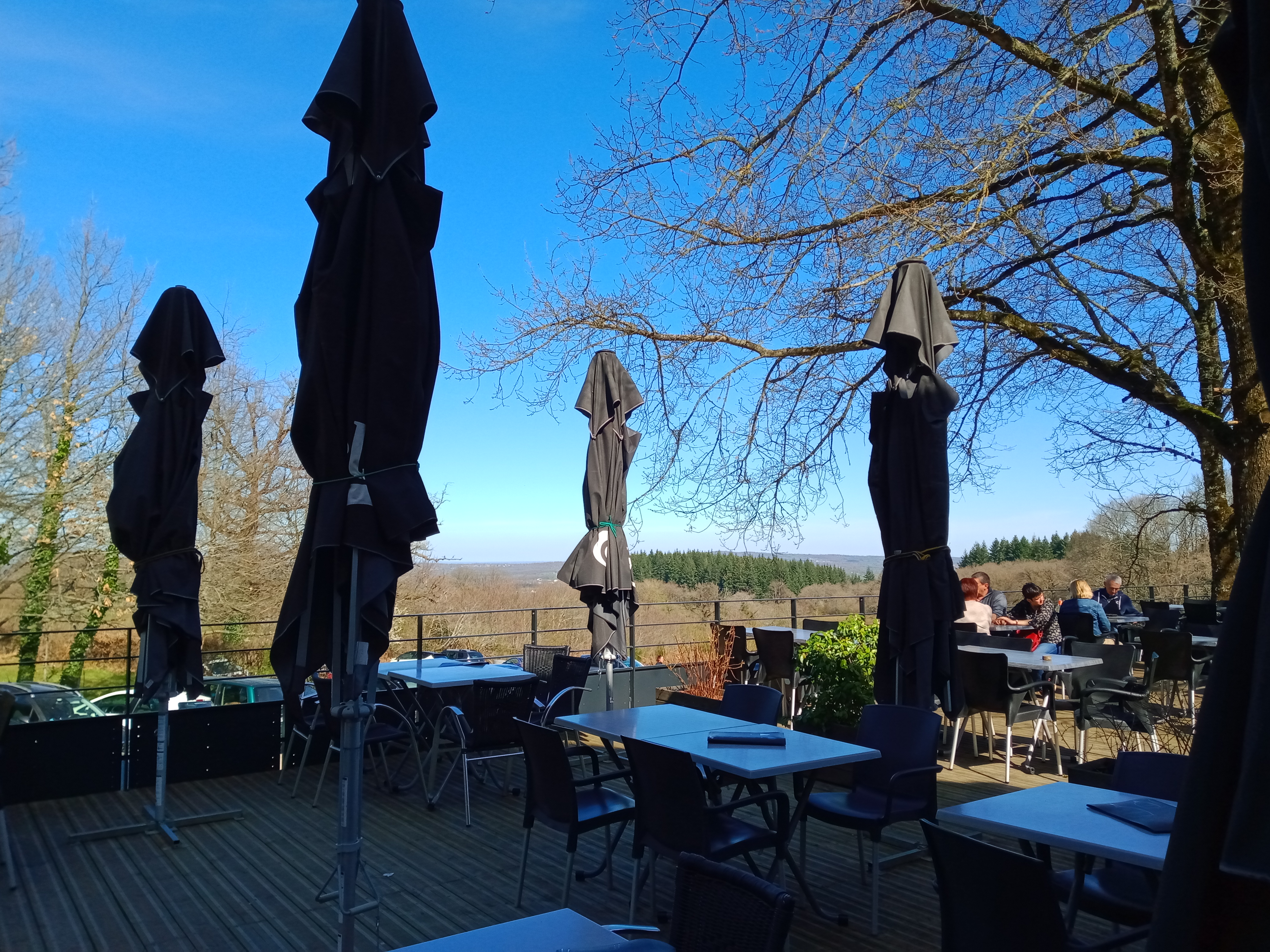 Une gigantesque terrasse avec une vue magnifique sur la campagne creusoise. Une partie de cette terrasse est couverte. L'accueil est top, les serveurs /serveuses agréables. Les plats sont simples, très bon et copieux (prenez la fondu creusoise 😋). Pour une soirée en amoureux ou un repas en famille c'est l'idéal.