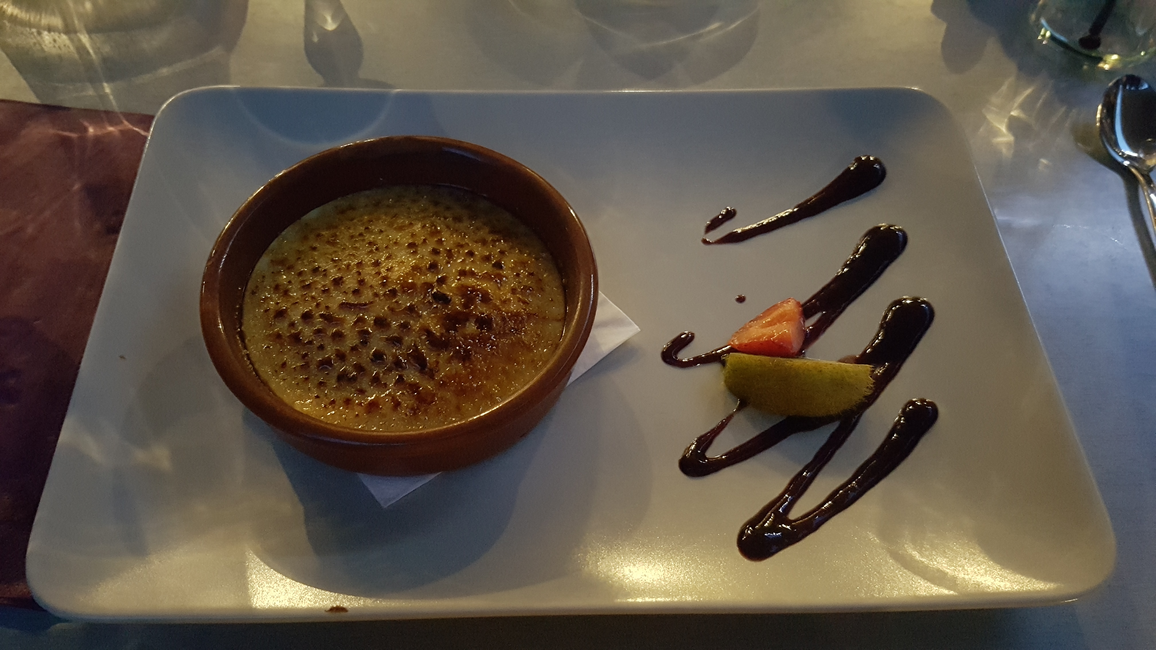 Apéritif à peine commandé , dans les 2 mn qui ont suivies nous avions déjà notre plat . Comme si nous devions mangés au plus vite pour libérer la place . Plat correct mais les profiteroles que nous avions prises étaient immangeables . Complètement surgelées , pâte à chou comprise . Coulis de chocolat totalement froid . Cher pour la qualité du repas et du service , Moins et de meilleure qualité serait plus appréciable . Vue magnifique