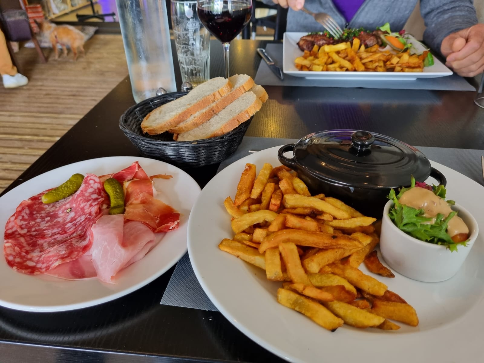 Fondu creusois servi avec une assiette de charcuterie que la cuisine avait sûrement récupéré d'une table, une tranche de jambon cru dur et sec et deux tranches de saucissons, un malheureux cornichon complètement flétri. Les frites sans commentaires immangeable. Peut-être que je suis tombée un mauvais jour, la serverveuse nous a quand même changée la charcuterie en s'excusant. Bref journée gâchée