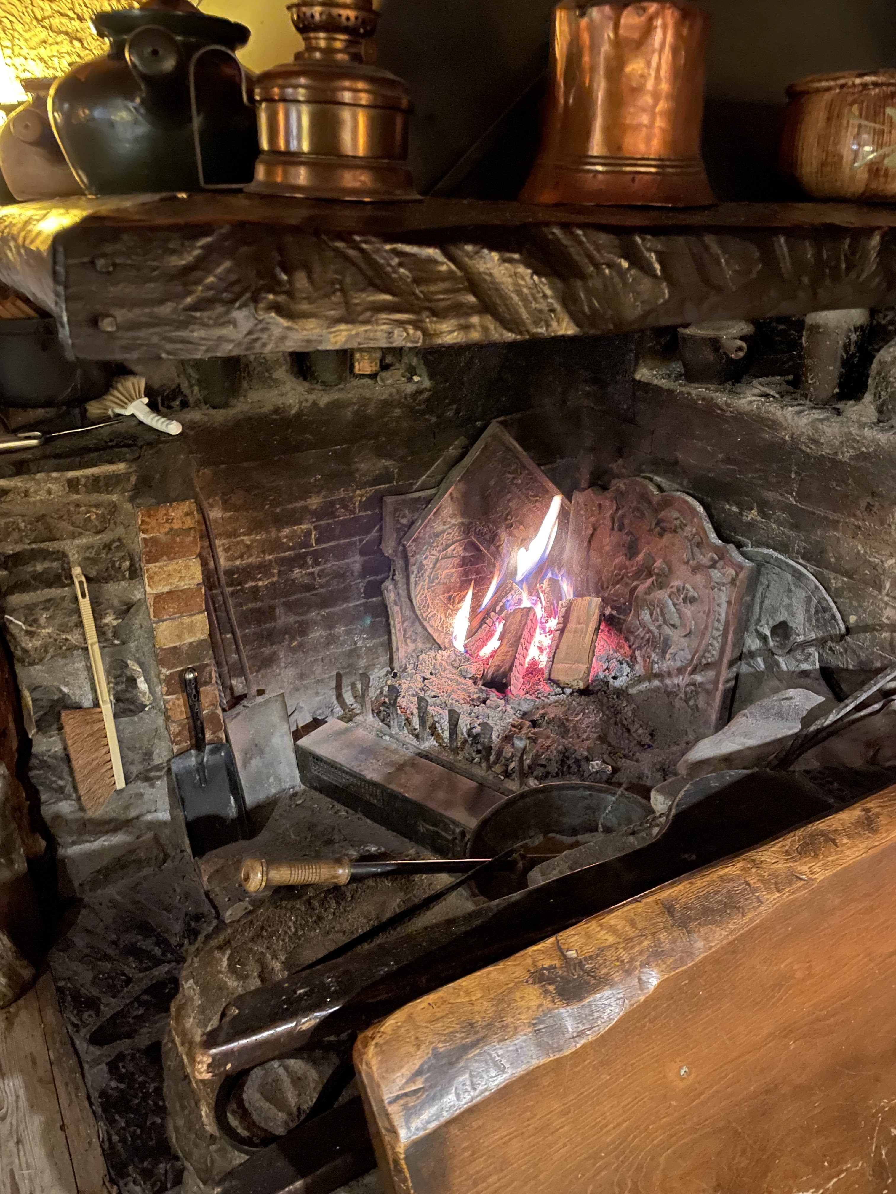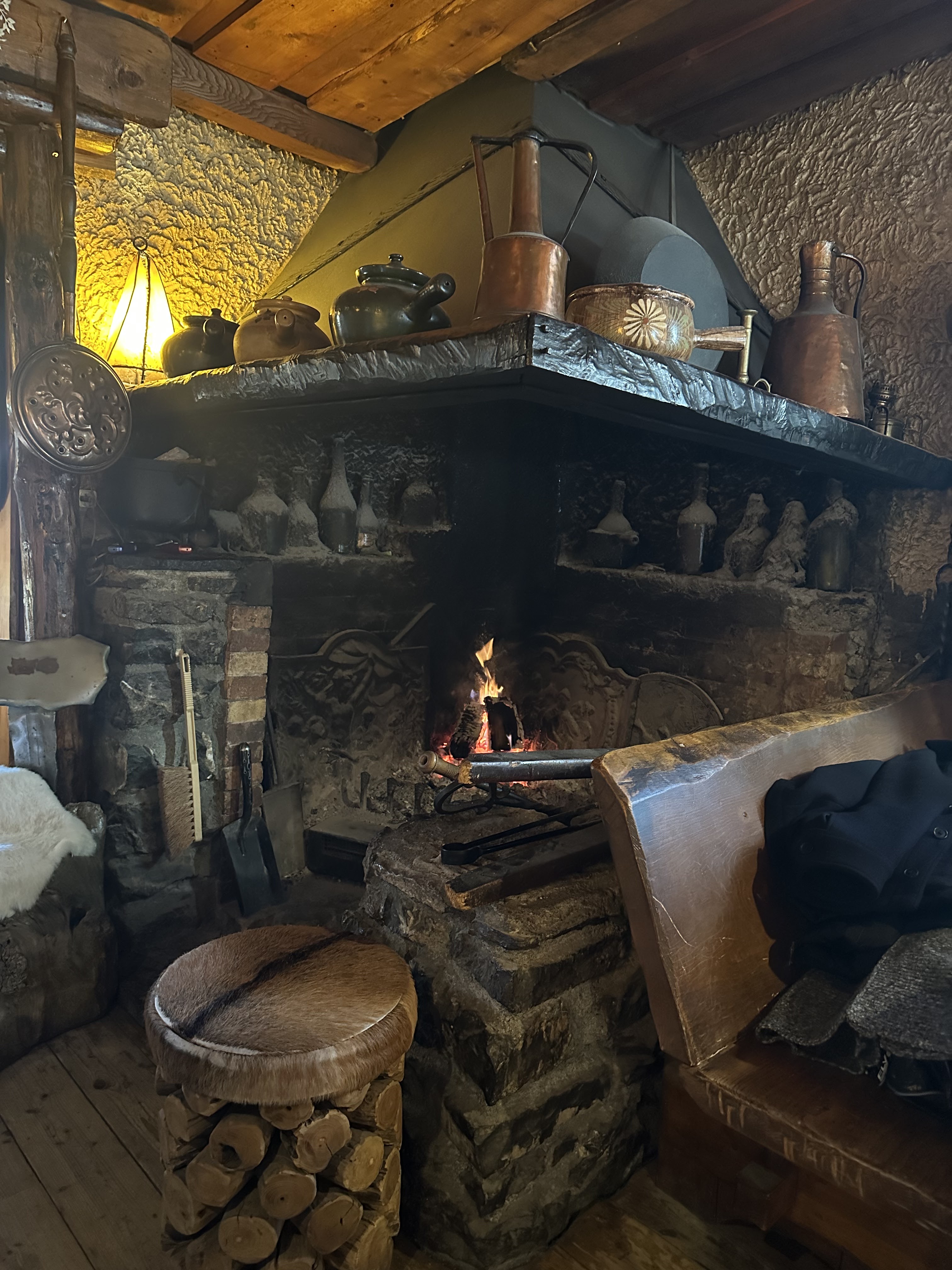 Une vrai ambiance chalet avec cheminée et repas délicieux.