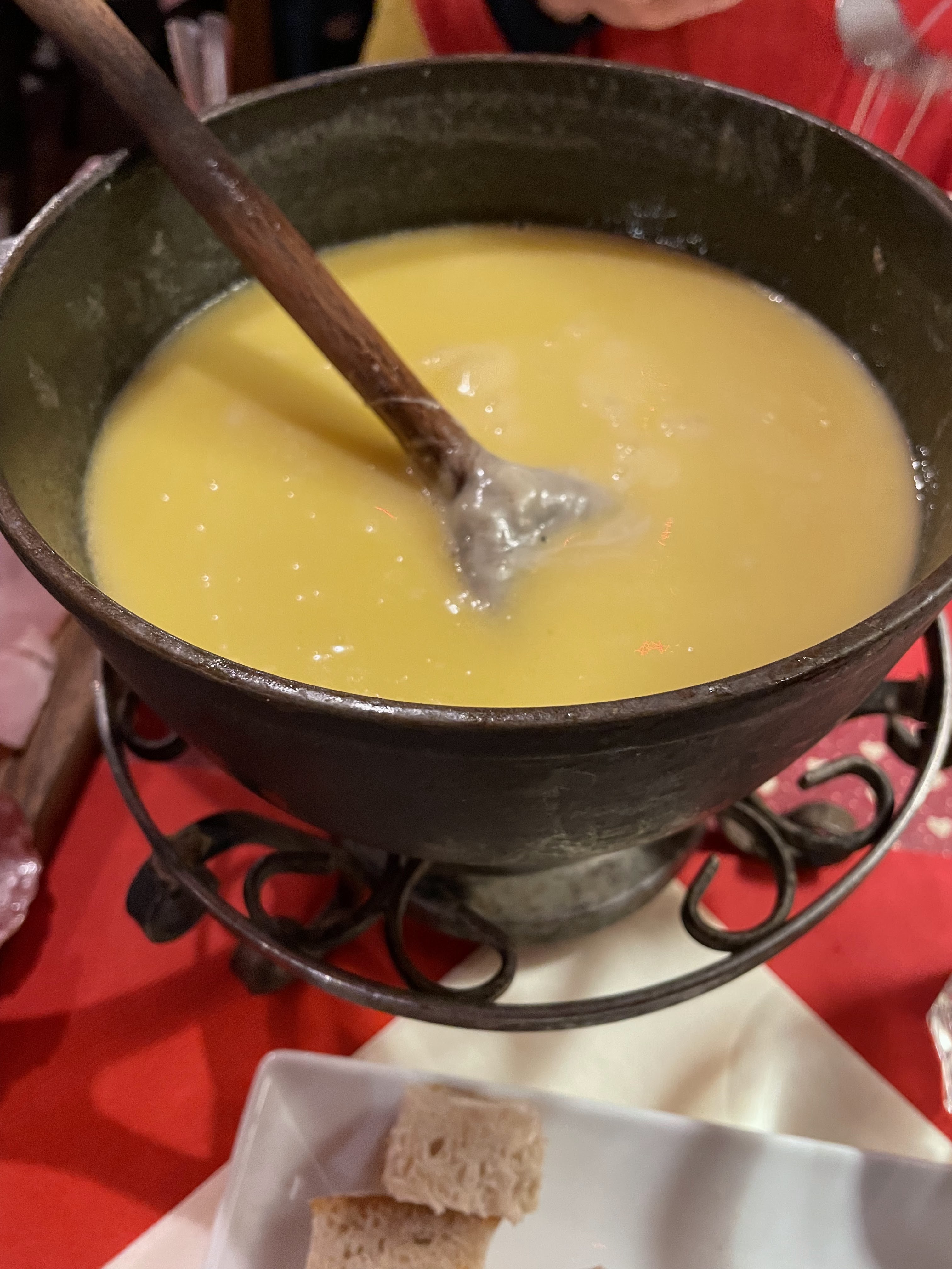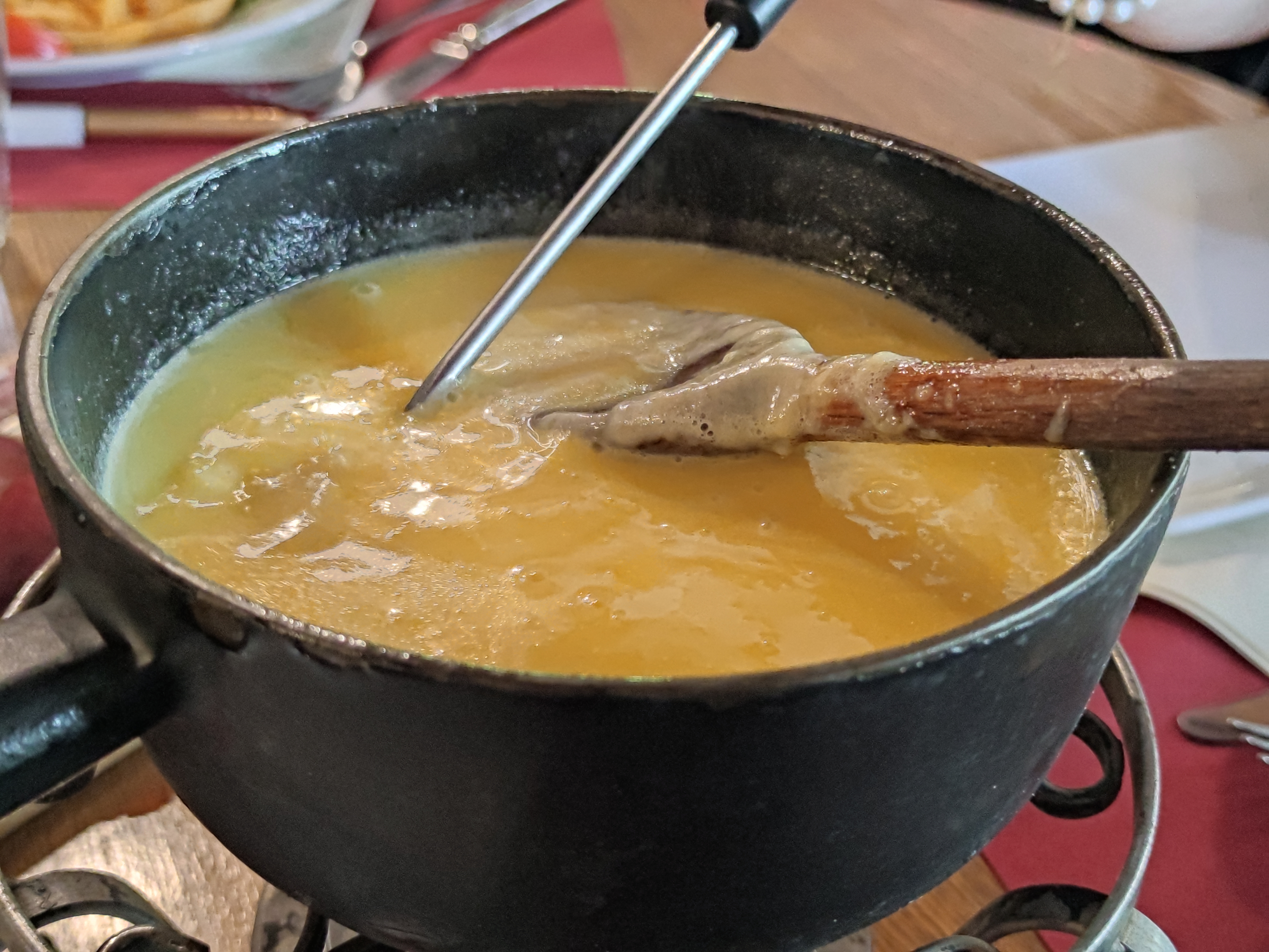 Fondue de mauvaise qualité, mal au ventre jusqu’au lendemain matin, pain rassis. Déçu, une chose est sûr les plats sont achetés déjà cuisinés et réchauffés..
