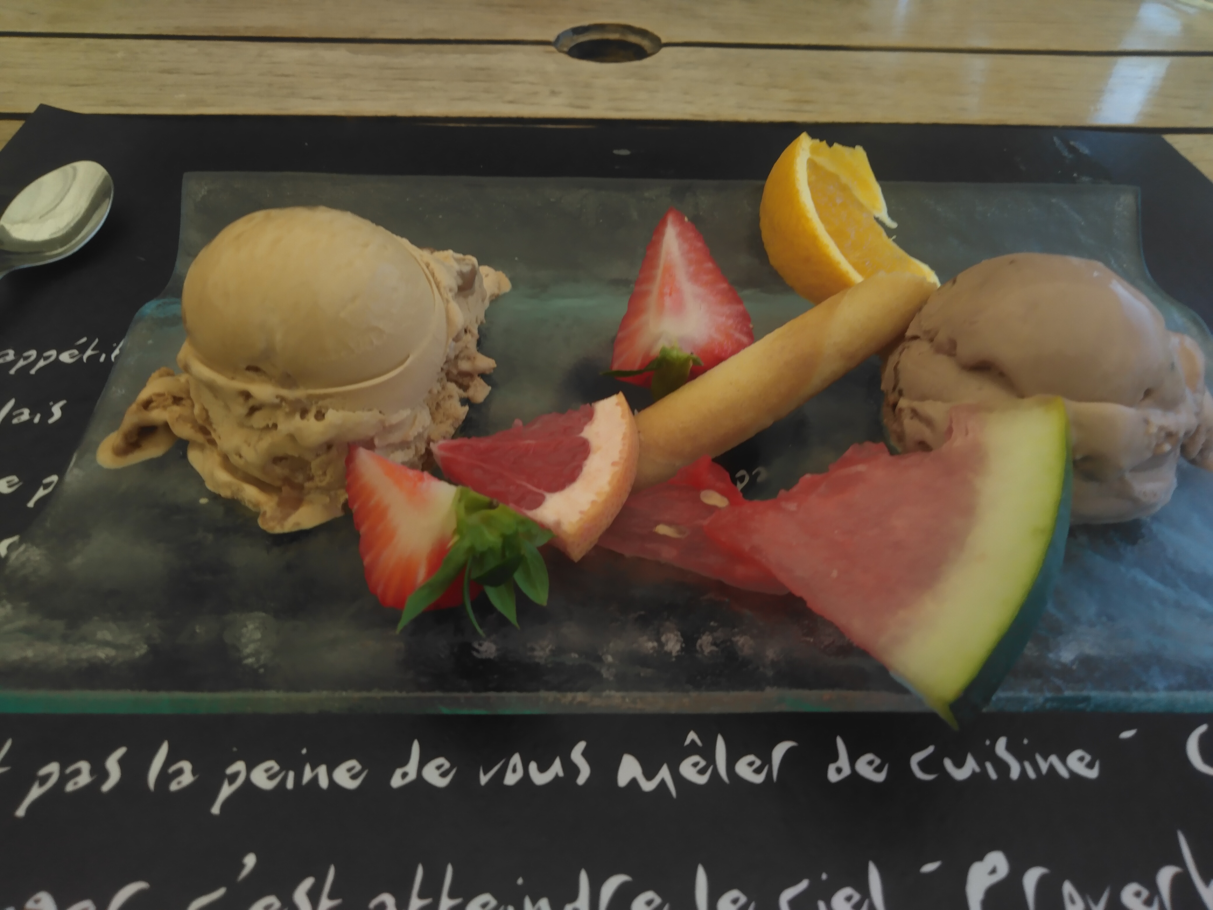 Bonne nourriture.. Mais pas du tout commerçant. Note de 660 euros, nous demandons s il est possible d avoir un digestif, réponse franche et sèchenon on offre pas les digestifs ici. Très bien nous irons dépenser notre argent ailleurs la prochaine fois.