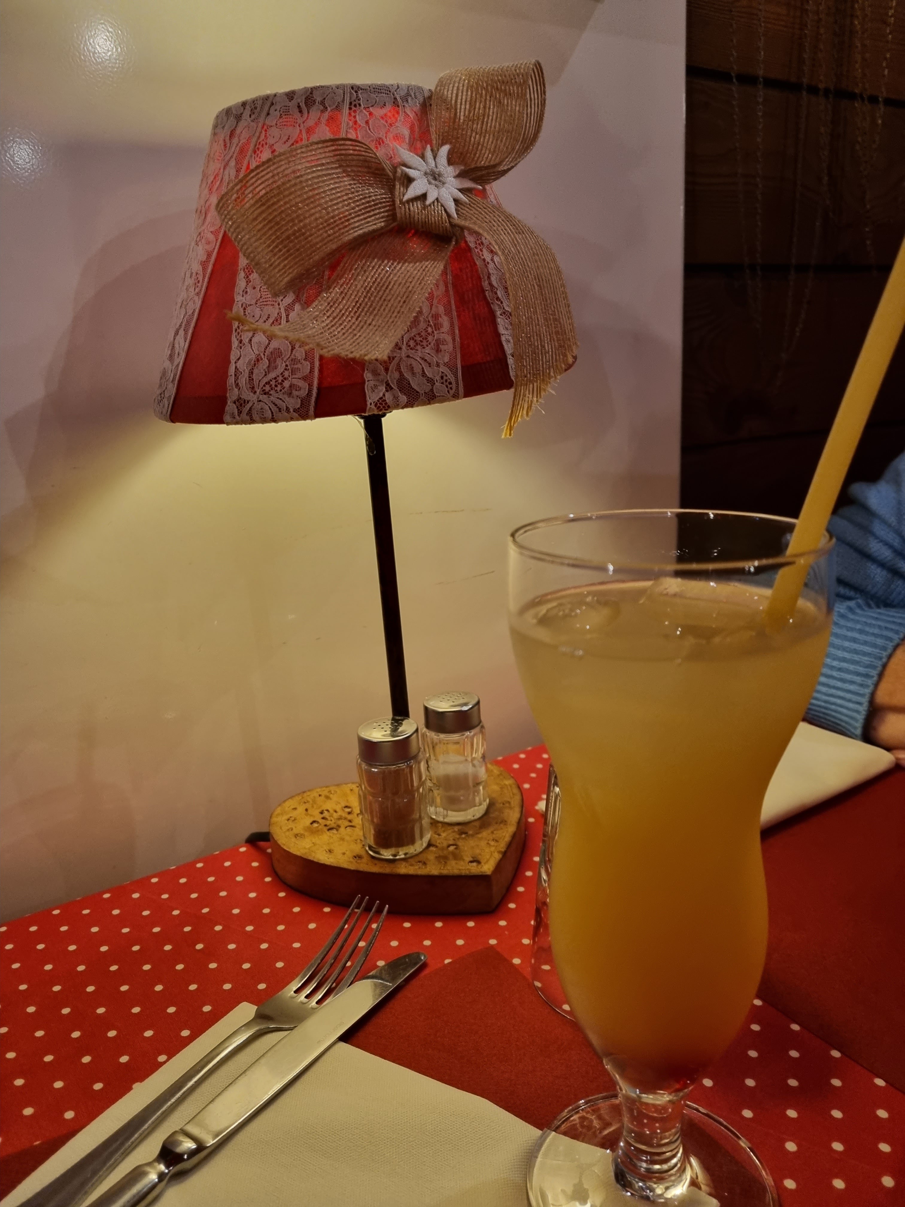 Pour ma part j’ai été extrêmement déçue de la fondue qui n’était pas bien dosée (tres liquide sur le dessus et pâteuse en dessous malgré que nous ayons bien continué de la mélanger...). Le pain n’était pas frais non plus. Du coup c’était pas très digeste et nous n’avons même pas terminé la fondue ... Je ne peux pas dire que c’était mauvais mais ce n’était pas exceptionnel non plus. Essayez de couper les morceaux de pain un peu plus petits aussi, car la plupart sont beaucoup trop gros. Le dessert était bon ainsi que le cocktail sans alcool « coucou » Par contre le cadre est super sympa avec tous les coucous partout
