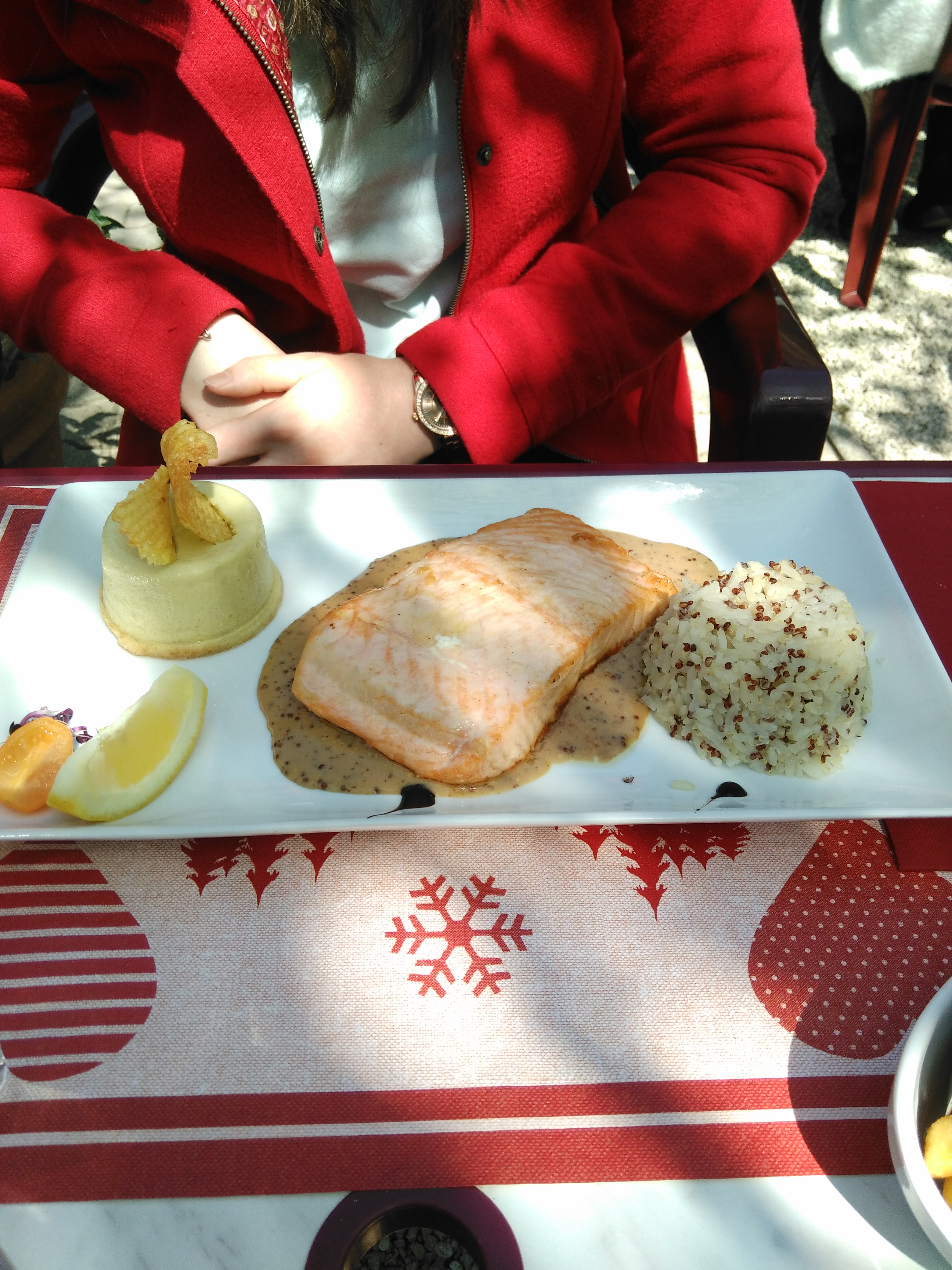 Pris la tartiflette, elle était bonne, mais bruyant sous le chapiteau. Service agréable