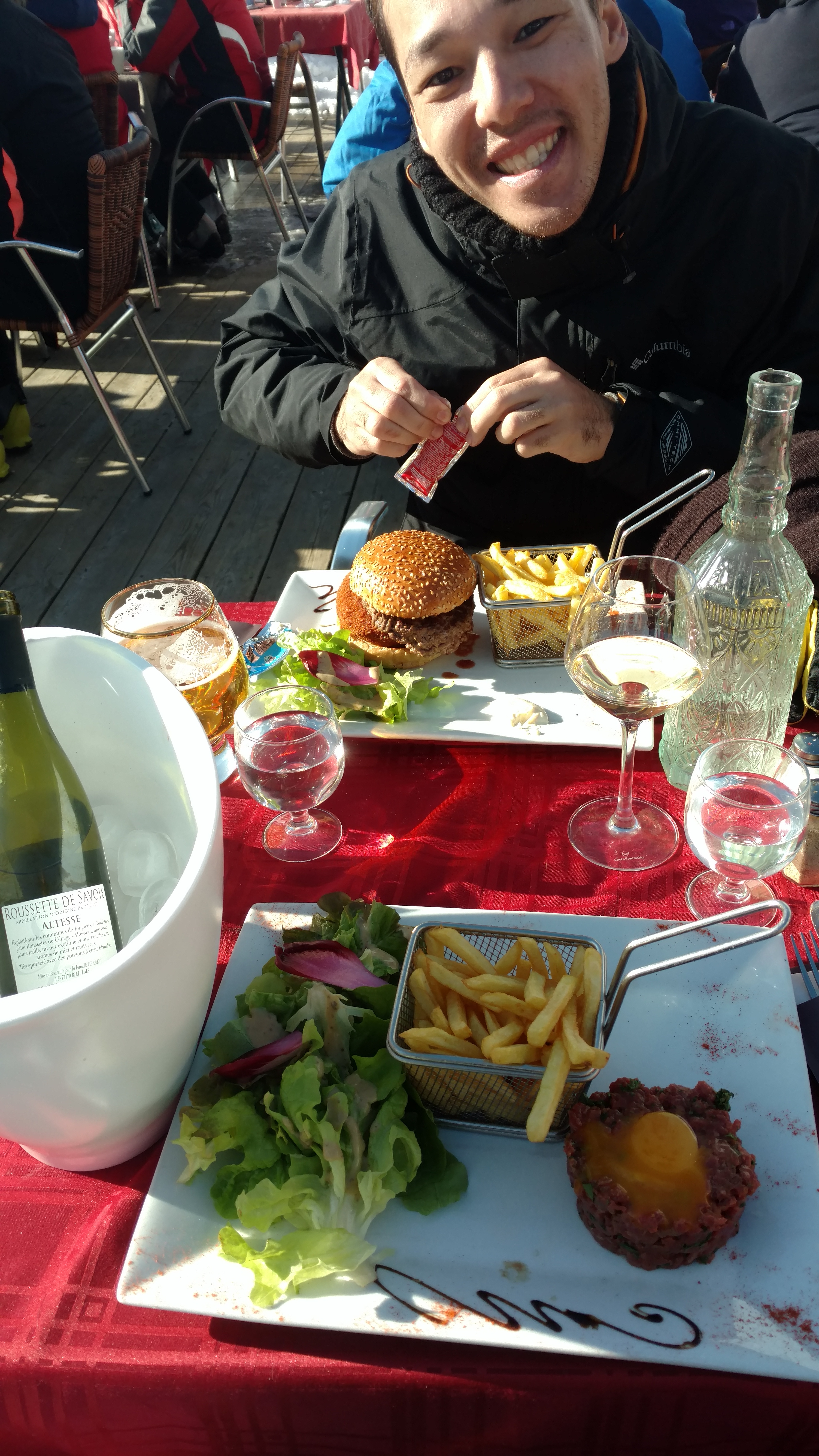 Avec une température à -10 degrés, nous arrivâmes dans cet établissement tout guillerets à l’idée de pouvoir se réchauffer. Le serveur nous expliqua que c’était complet à l’intérieur. Quelle ne fut pas ma surprise en allant aux toilettes de voir que plusieurs tables pour quatre furent disponibles. Après concertation avec mes amis, je m'empressai donc de demander à notre serveur une table à l'intérieur. Malheureusement celui-ci donna la dernière devant moi. J’apprenais par la suite que la consigne du patron était de faire le service uniquement à l’extérieur et que par conséquent nous étions arrivés trop tôt. plus grave, mon ami Cyril allait se prendre une assiette en plein dans le nez qui se mît à saigner, le serveur ne prendra même pas la peine de s’excuser, dixit « il n’avait pas le temps de se mettre à genoux ». Cela étant dit, aujourd’hui nous étions dans un autre établissement de haute montagne et cette fois de qualité avec notamment un service impeccable. J’ai fait la remarque à notre serveuse qui a rétorqué : « qu’elle était bien considérée par son patron et que par conséquent elle aimait son travail. À méditer..