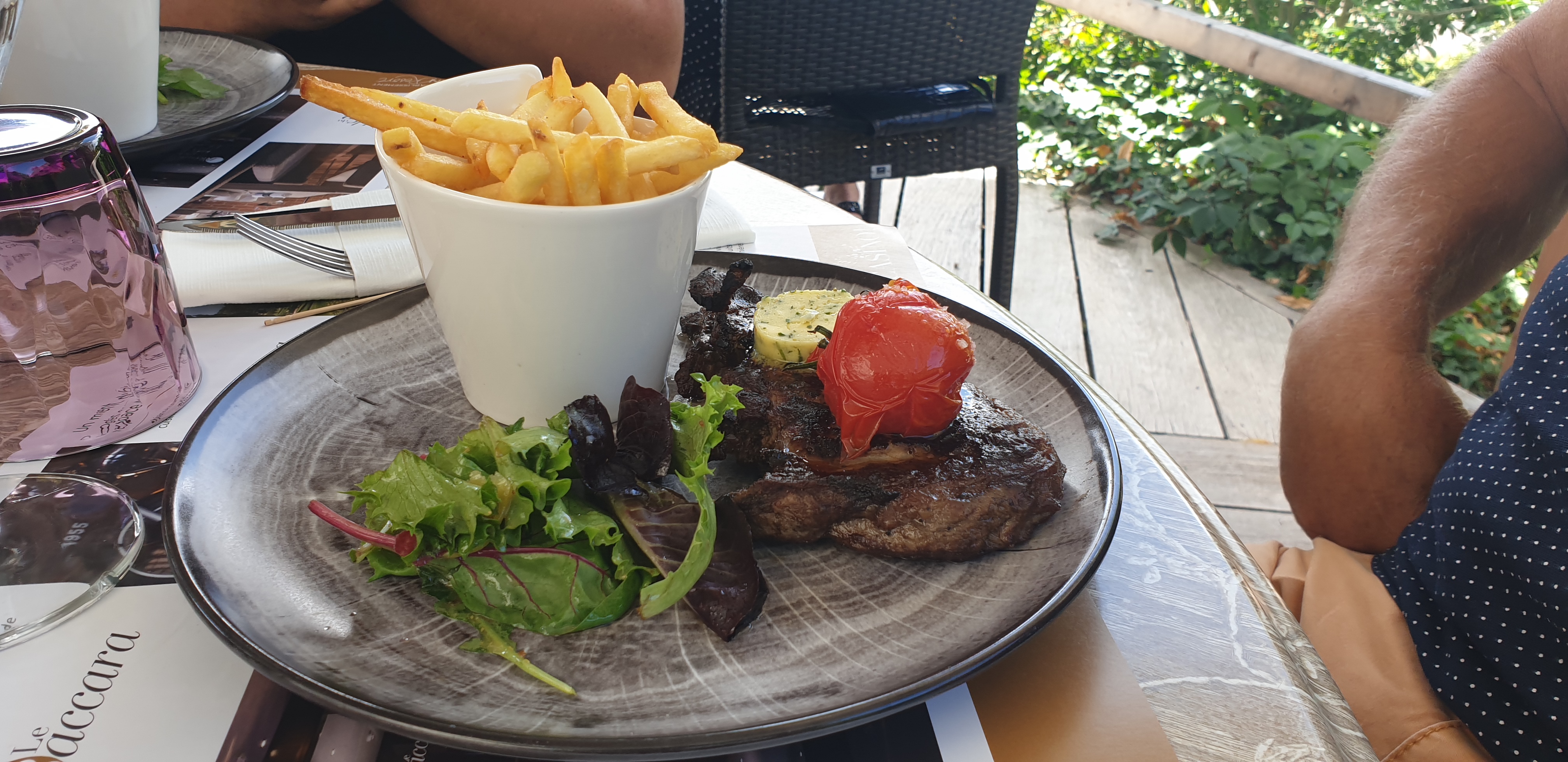 Superbe terrasse plein soleil le midi, cadre très agréable, plat classique mais bien fait !