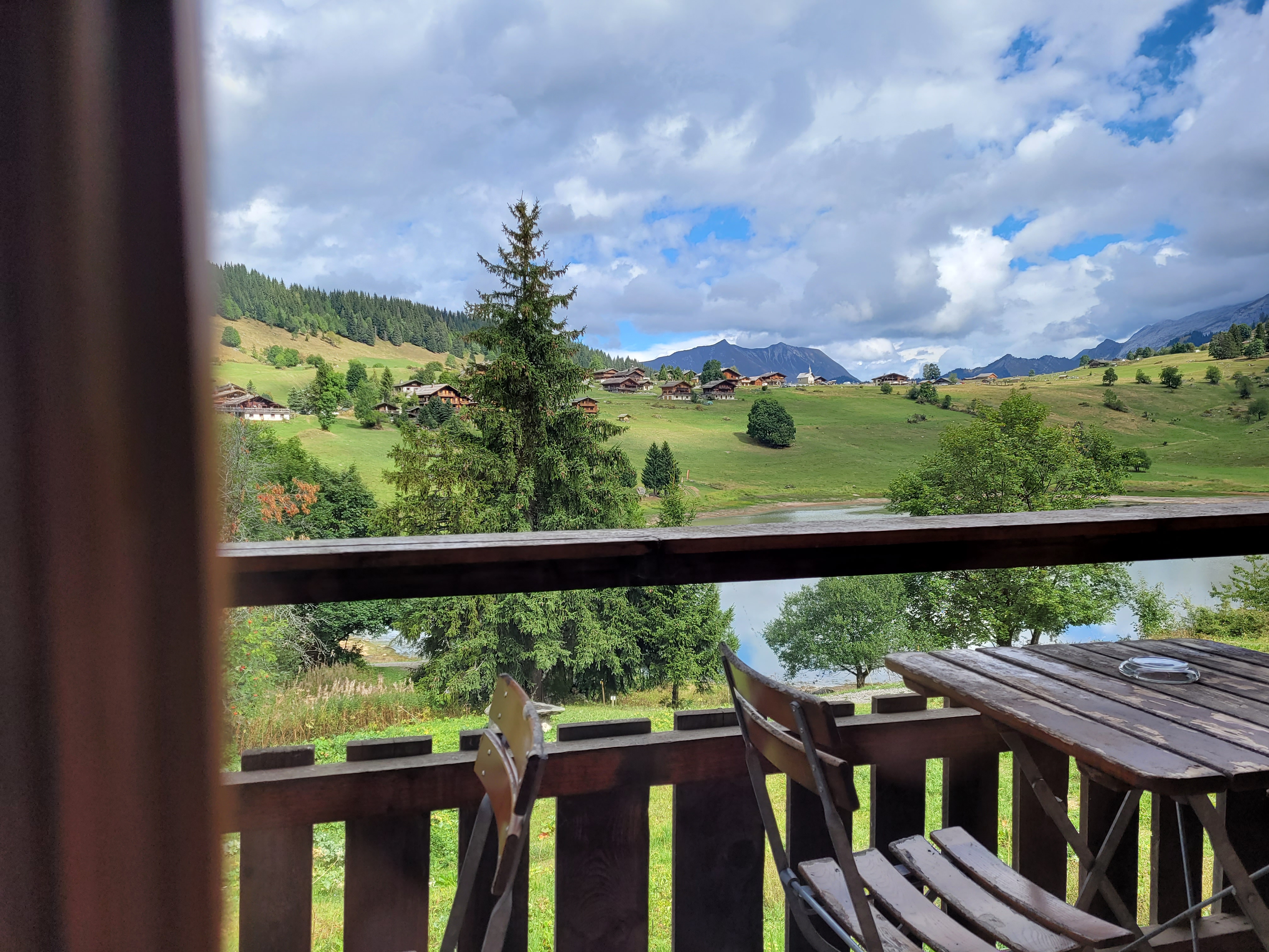 Vue magnifique sur un lac et les montagnes. Restaurant qui propose une très belle terrasse avec la vue lac et montagnes.Interieur très. chaleureux où l hiver il doit être agréable de manger une fondue.Cette saison on trouve des menus très copieux avec du choix et des plats très bien préparés. Il existe aussi.une carte avec des parts très copieuses.Tout est bon et servi avec un grand sourire. Le rapport Prix/ Qualité est excellent.Je ne peux que recommander ce restaurant.
