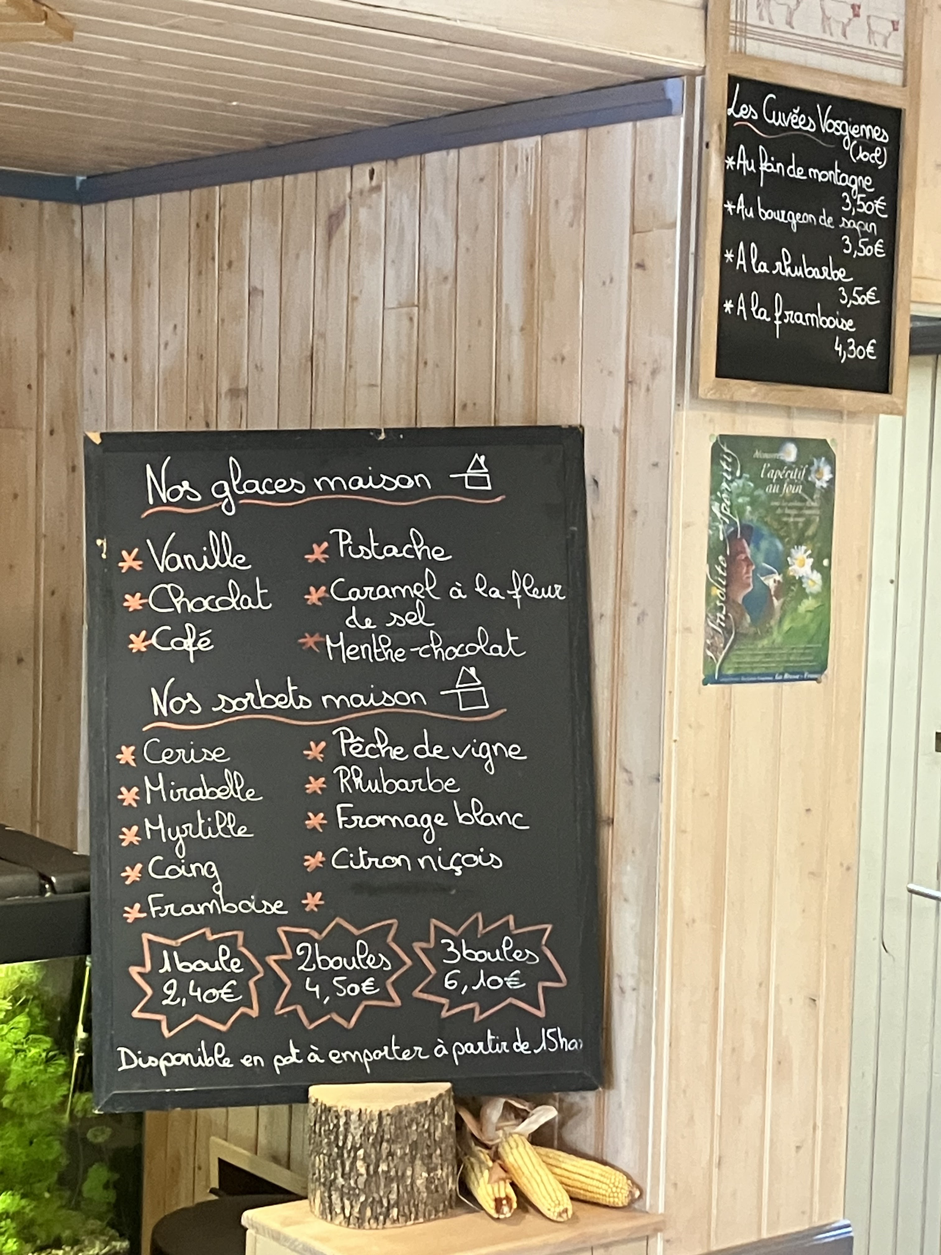 Un cadre magnifique, au bord d'un lac de montagne. Nous avons testé, à emporter, les excellentes glaces maisons. Les parfums classiques comme café sont excellents. Je vous conseille de tester les succulents coing, mirabelle ou quetsch. Accueil sympathique. A conseiller.