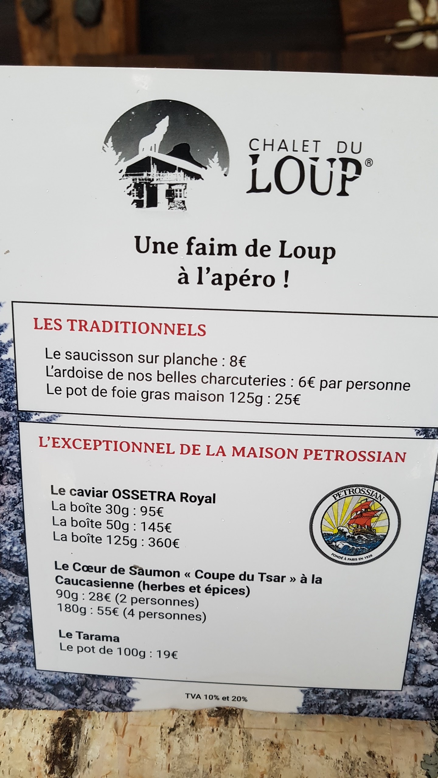 Le Chalet du loup est devenu un attrape touriste. La qualité des plats n’est pas au rendez vous et l’ambiance encore moins. L’équipe de femmes qui accueille ne décroche pas un sourire et a oublié ce qu’est la bienveillance et le principe de l’accueil de leurs hôtes. Des vins au verre pas au niveau, des plats froids et beaucoup trop cher pour la qualité gustative. Nous avions un excellent souvenir de ce lieux féerique. Le changement de propriétaire a fait beaucoup de mal à l’établissement.
