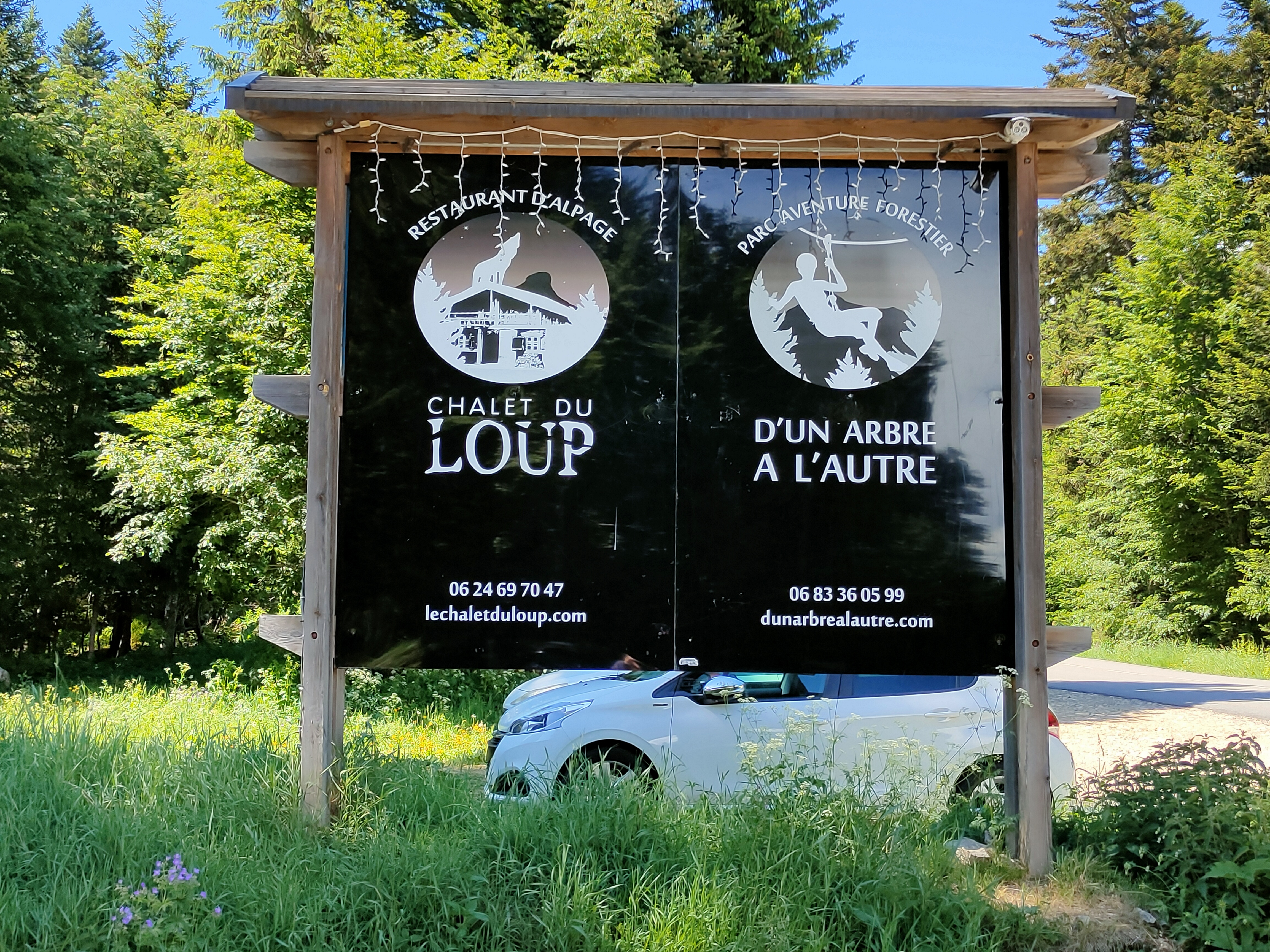 Un panneau situé sur la route du Belvédère du Revard. Le restaurant en pleine forêt. Un endroit atypique ou calme, chants des oiseaux et parfums des sous-bois le temps de la montée vers le chalet du Loup vous mets en appétit. Personnel accueillant et à l'écoute. Des plats tous aussi bon les un que les autres.de bon produit mis en valeur. De grands espaces pour petits et grands. Ah oui une boutique de produits...que dire d'autre sinon de réserver ou vous rendre sur place. Et profitez de l'instant présent. Leur téléphone pour être sûr des heures et jours d'ouverture : 09 65 25 29 68, Il ne vous reste plus qu'une simple chose à faire...Appelez et bonne appétit. L'établissement devrait révisé ses prix...et là se serait vraiment parfait !