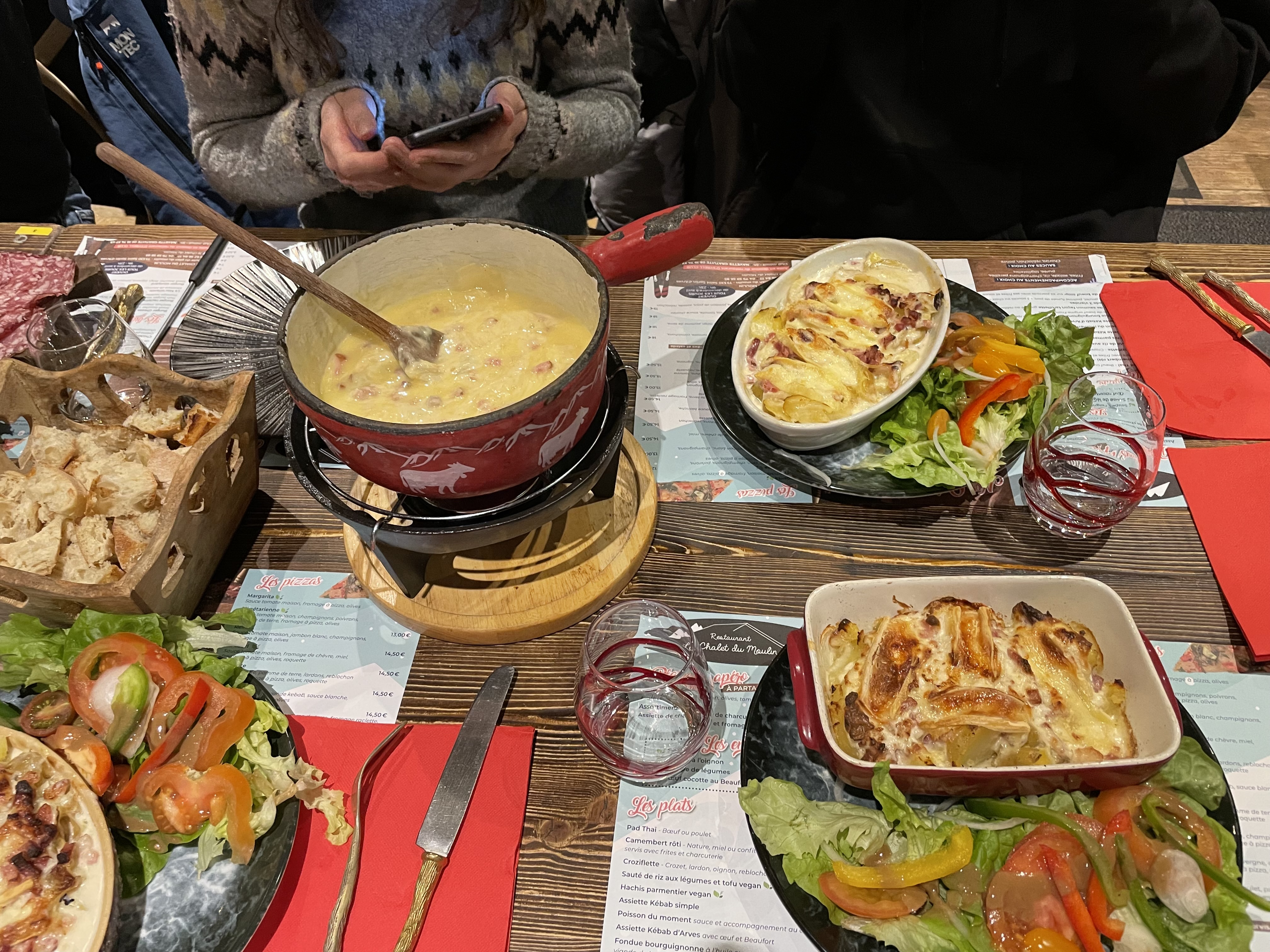 En tant que fromagère, j’ai été séduite et par la raclette et par la fondue, et mention spéciale pour la fondue aux morilles flambée à la chartreuse. Un vrai réconfort après une journée de ski où les ligaments croisés ont failli se décroisés.