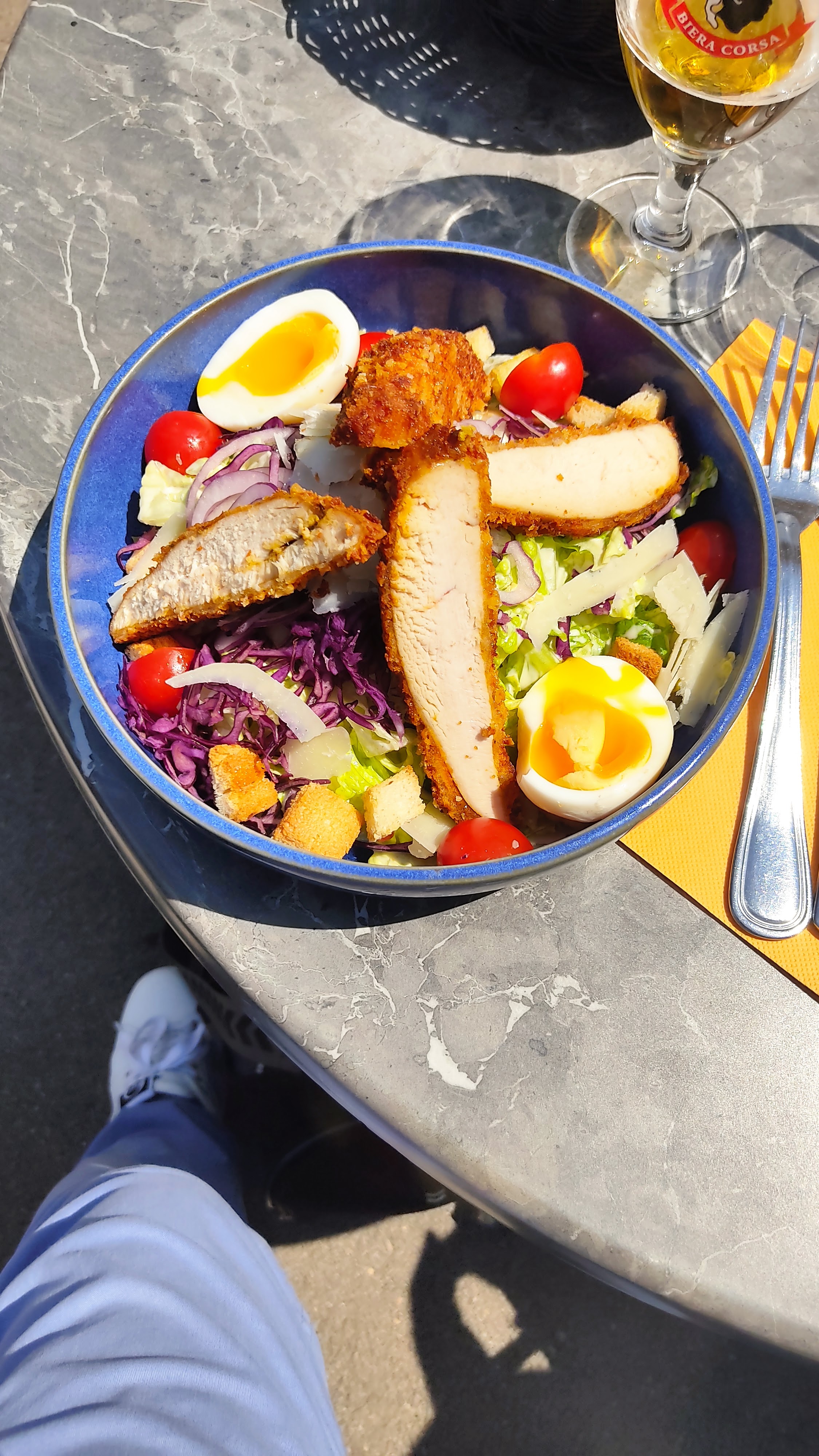 La nourriture simple et frais, Mais venir avec un enfant de moins de 2 ans n'est pas recommandé. Il n'y a pas de chaise pour bébé, Pas de table a langer, Et Manger près des deux tables avec des fumeurs c'est pas le top non plus.