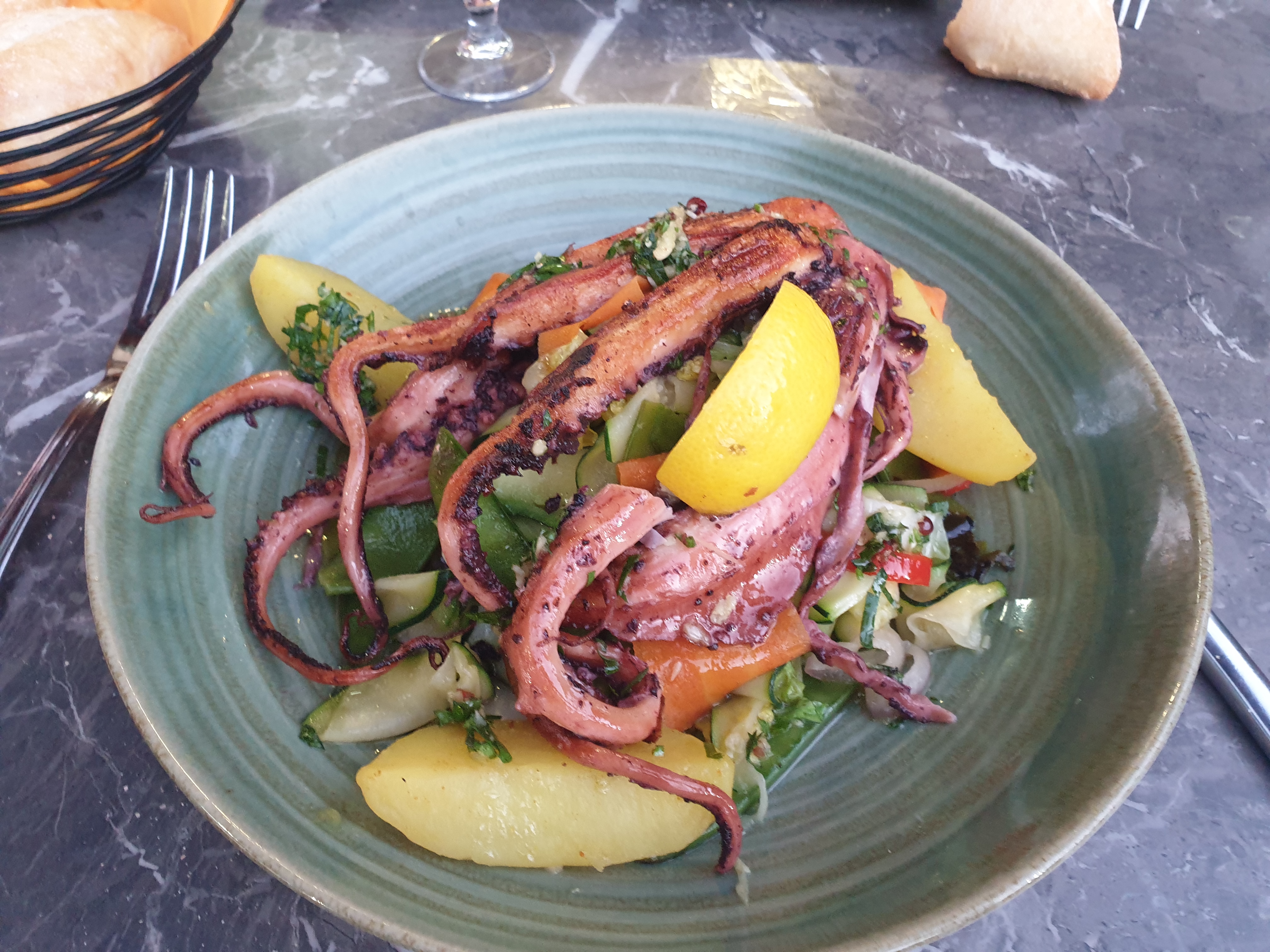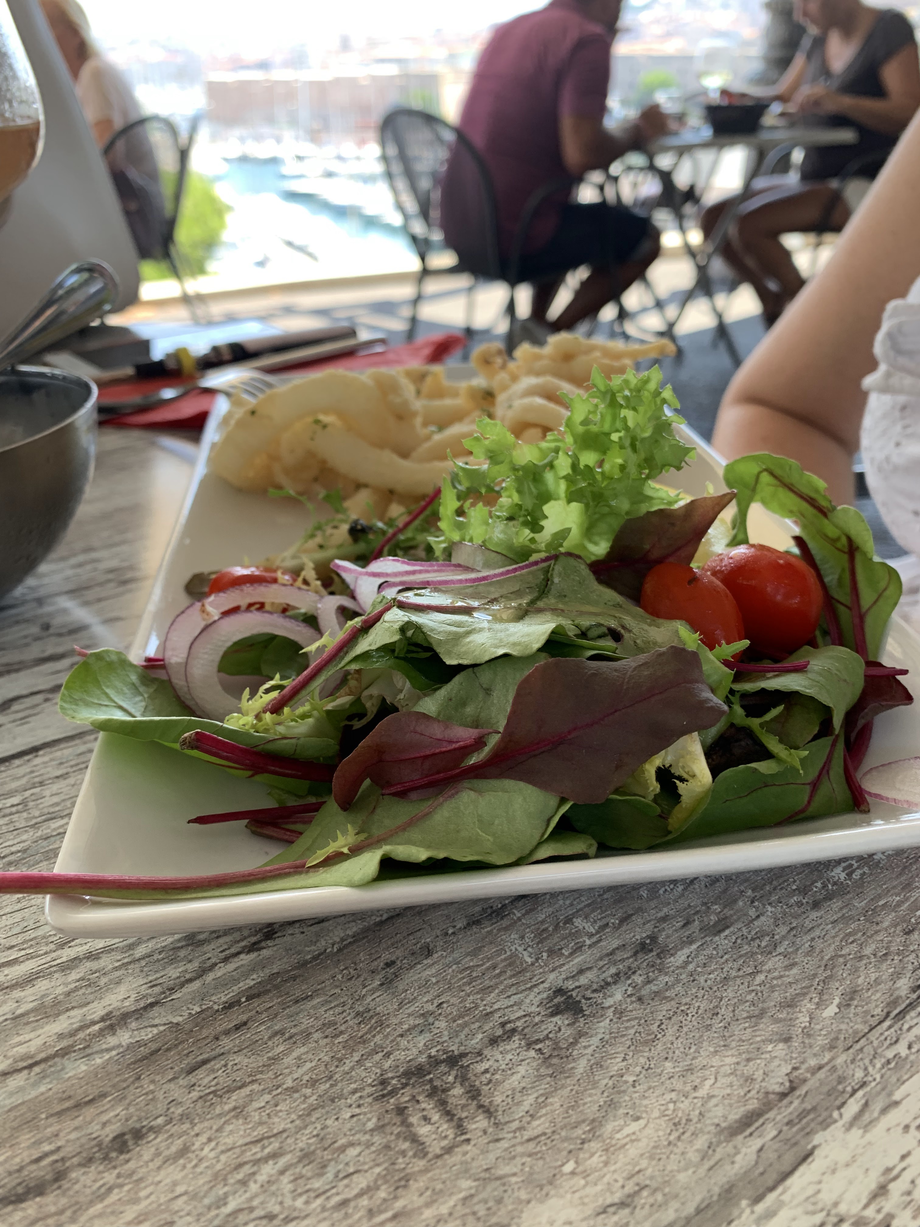 Magnifique vue sur le vieux port, plats raffinés et délicieux, accueil sympathique. Bémol pour le sol, en goudron, avec tâches.. C'est dommage, des petits cailloux rendraient le lieu plus cosy.