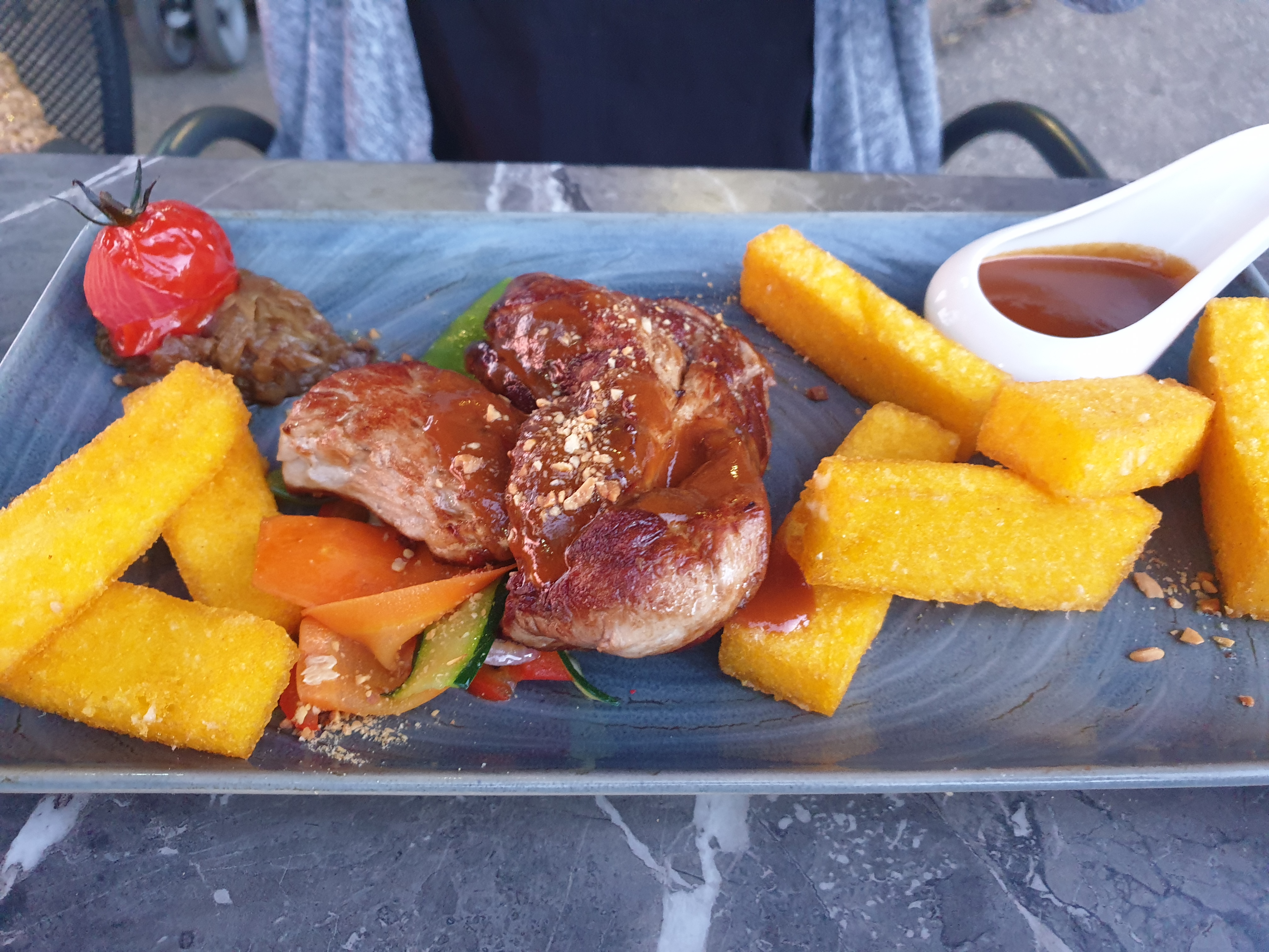 Un très bon accueil une jolie terrasse et une vue juste sublime. De l’entrée au plat ce fut parfait . Les plats sont beaux bons et très généreux.