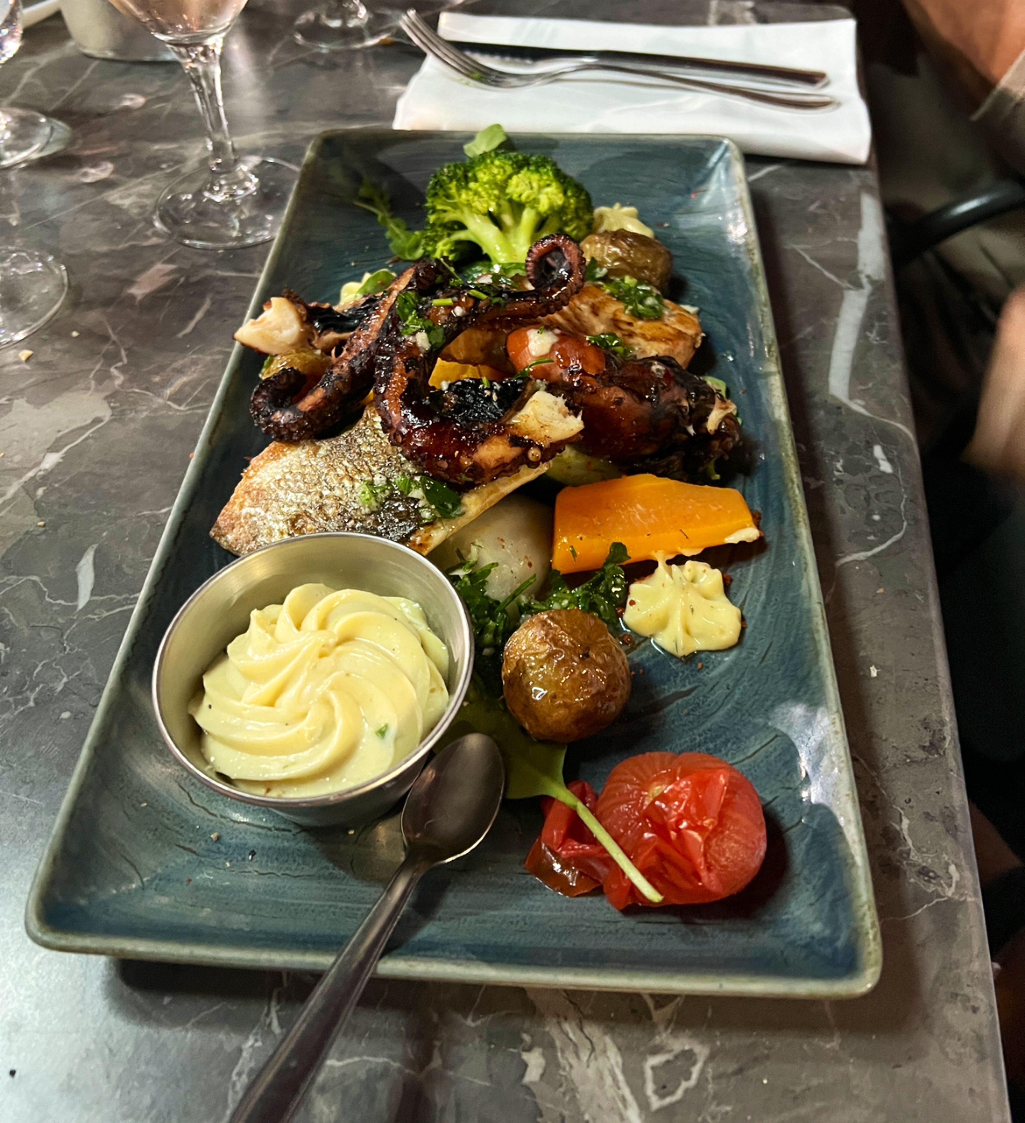 L endroit a un superbe panorama qui domine le port, les plats sont raffinés et tres généreux. On s est aussi régales d une bourrata sur son lit de gaspacho maison magnifique et d une assiette de foie gras roquette confiture d oignon et pain d épice excellent..... ❤️