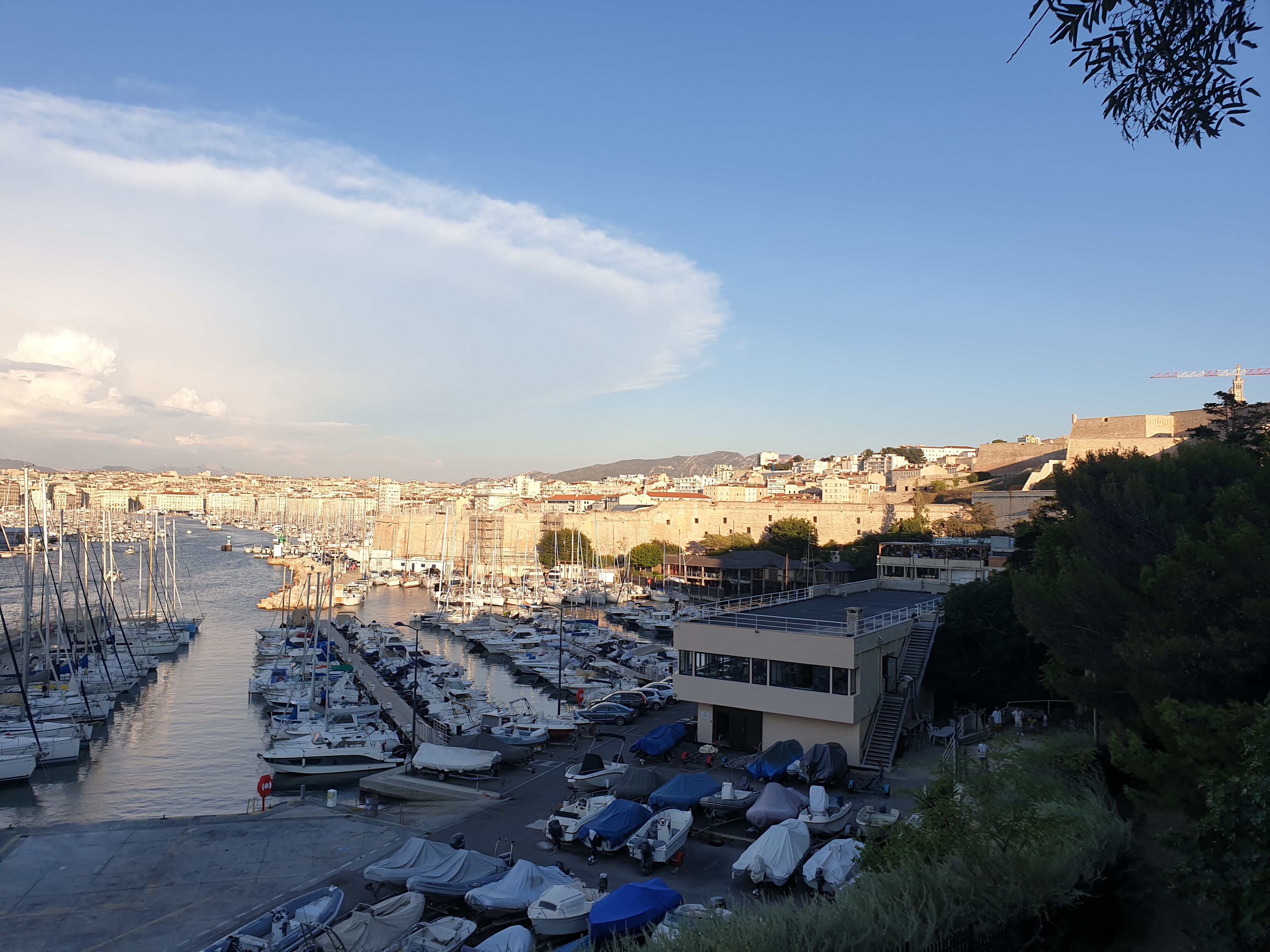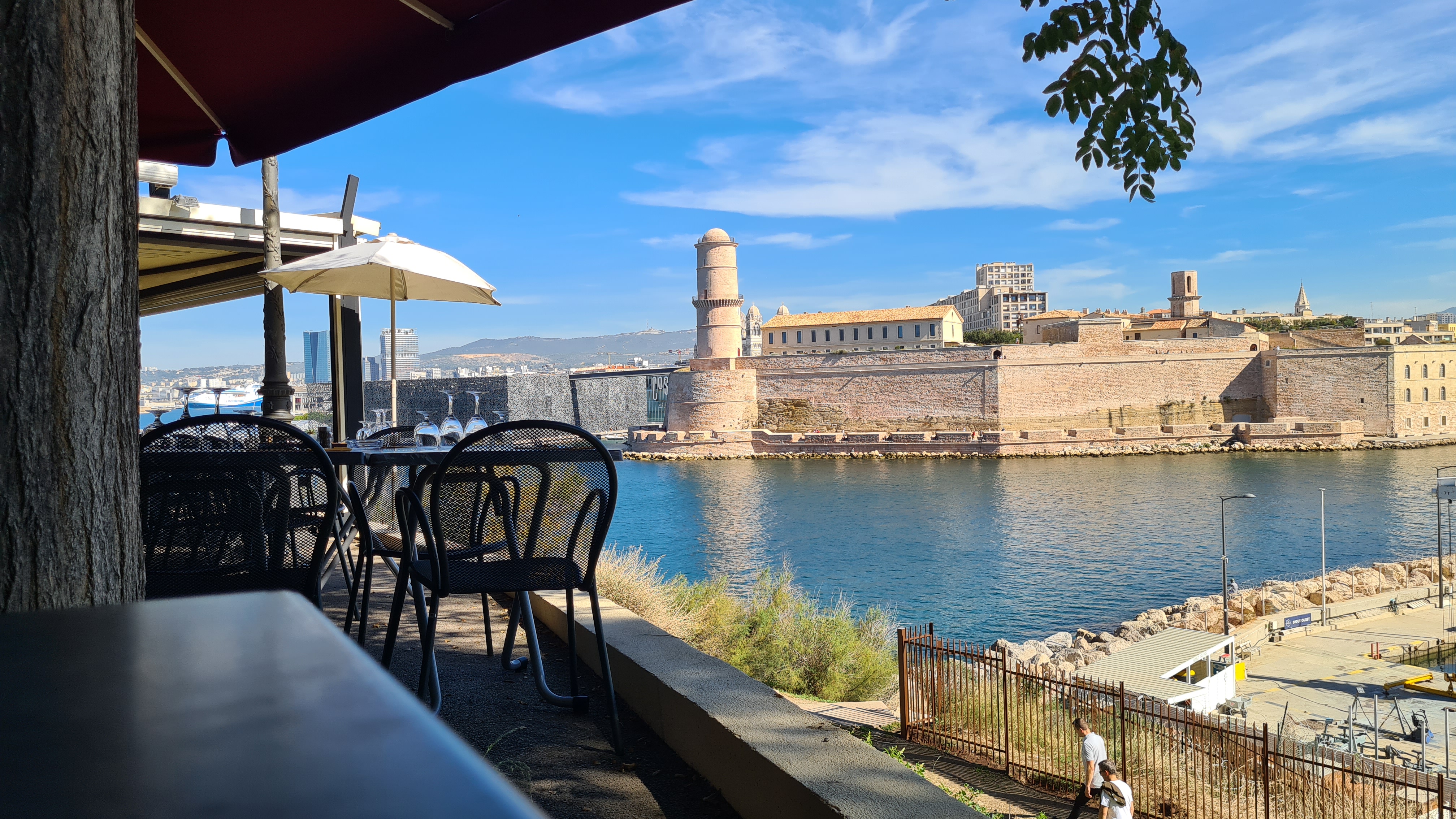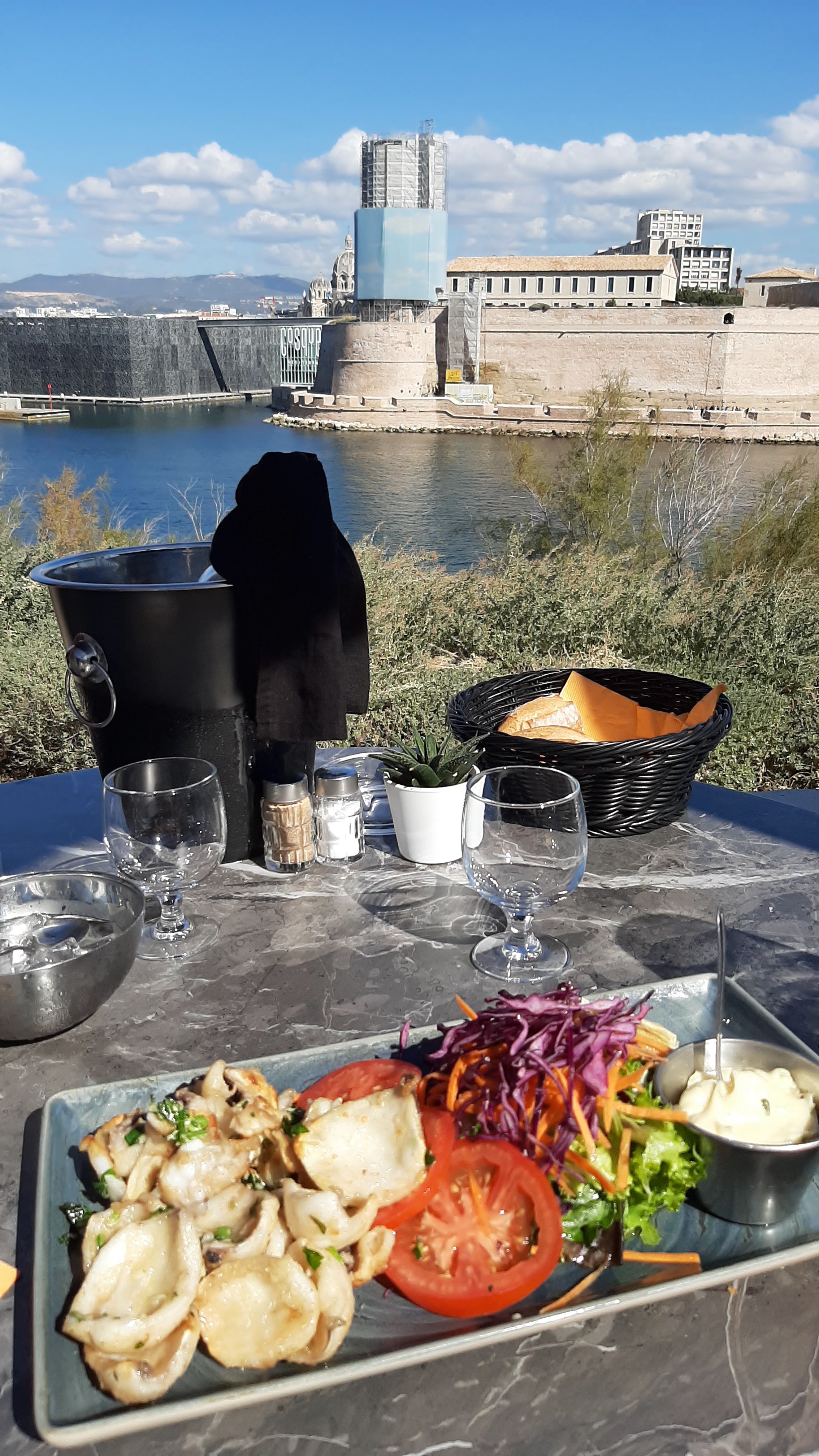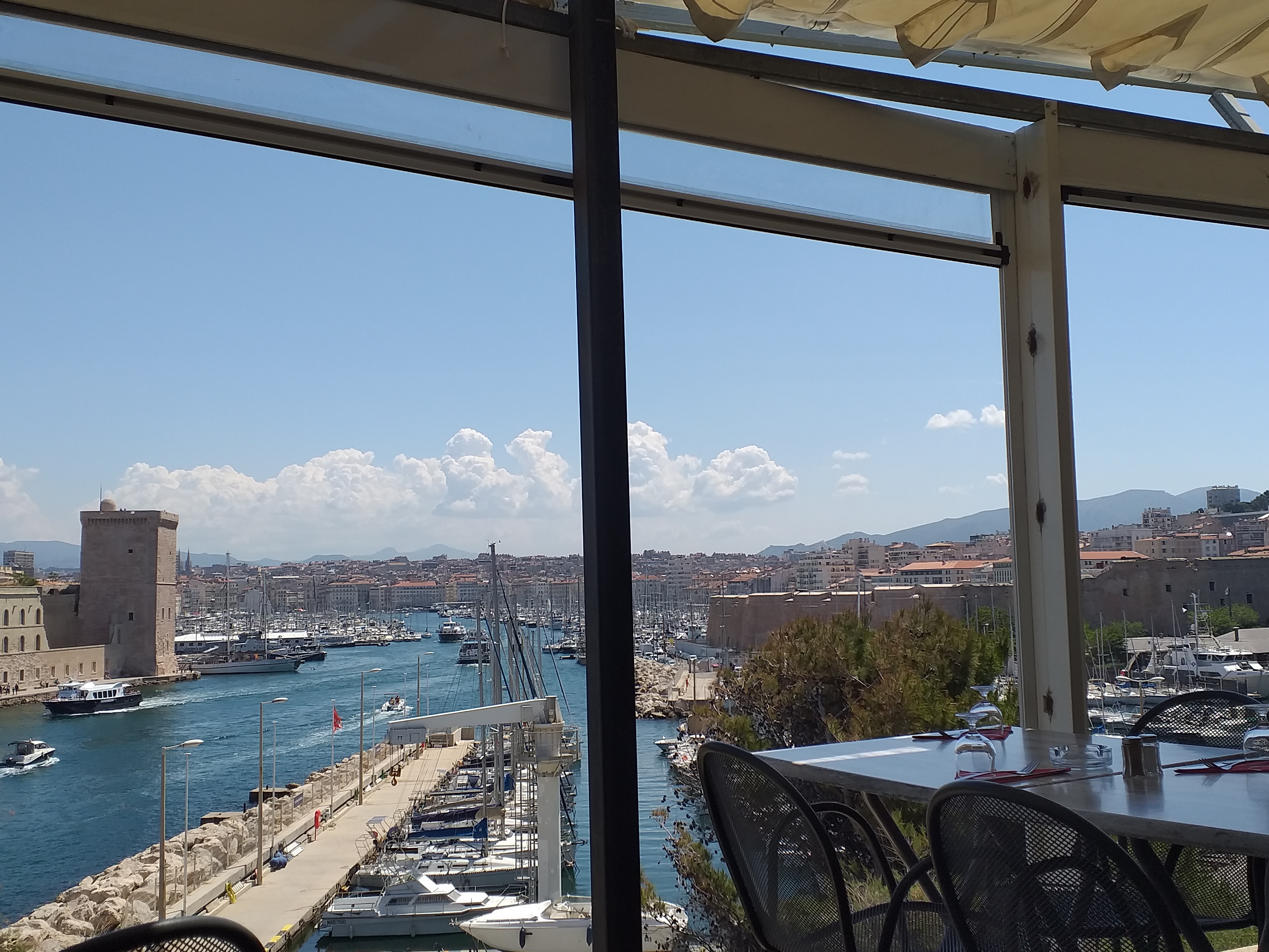Petit restaurant particulièrement bien placé avec une vue imprenable sur le vieux port, le Mucem et le Fort St Jean. La terrasse nest pas bondée, un midi en plein mois d'août il n'y a pas eu besoin de réserver. Les plats proposés sont frais et variés. Le prix est un tout petit peu plus élevé qu'ailleurs mais le cadre est tellement magnifique que c'est totalement justifié !
