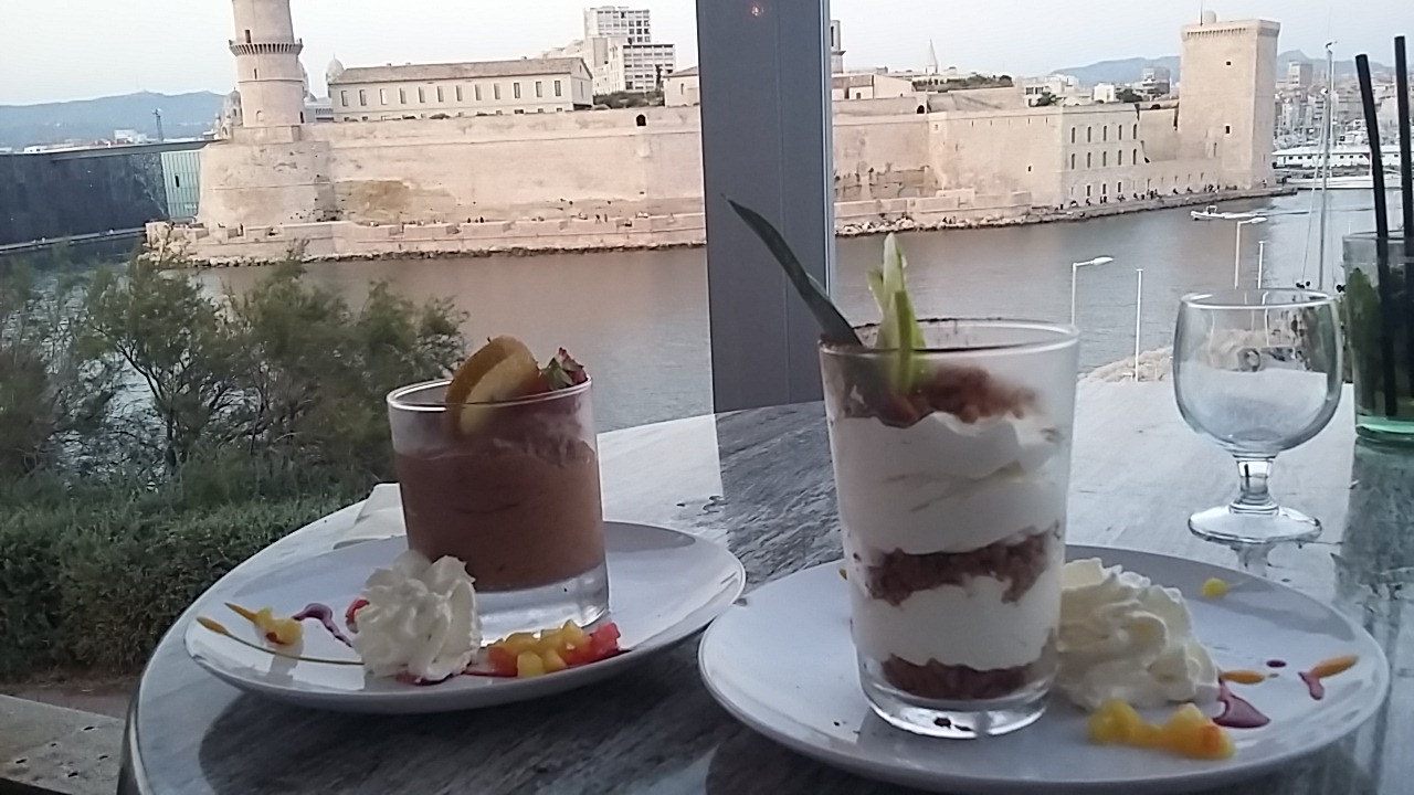 Super vue sur Marseille et le mucem. Restaurant à réserver car très prisé ! Notre serveuse était très agréable! Très bons plats également.