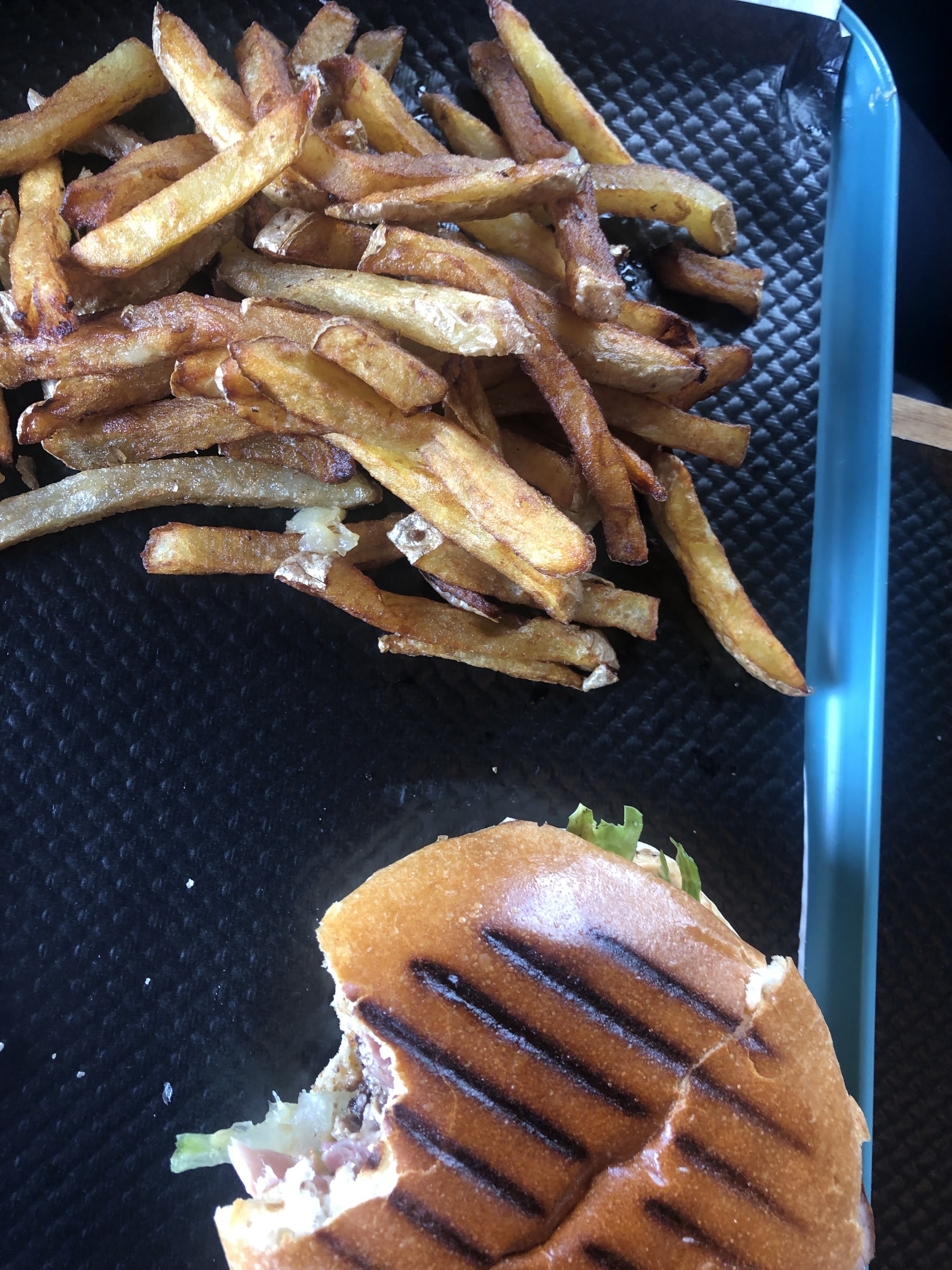 Frite maison excellente ! Sandwich à la viande d’agneau original et super bon. Qualité rapport prix, super correcte
