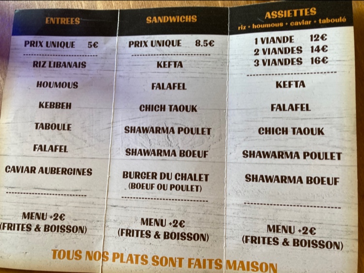 Petit chalet cosy et agréable. On y mange de bons plats libanais. Bon rapport qualité prix ! Je recommande