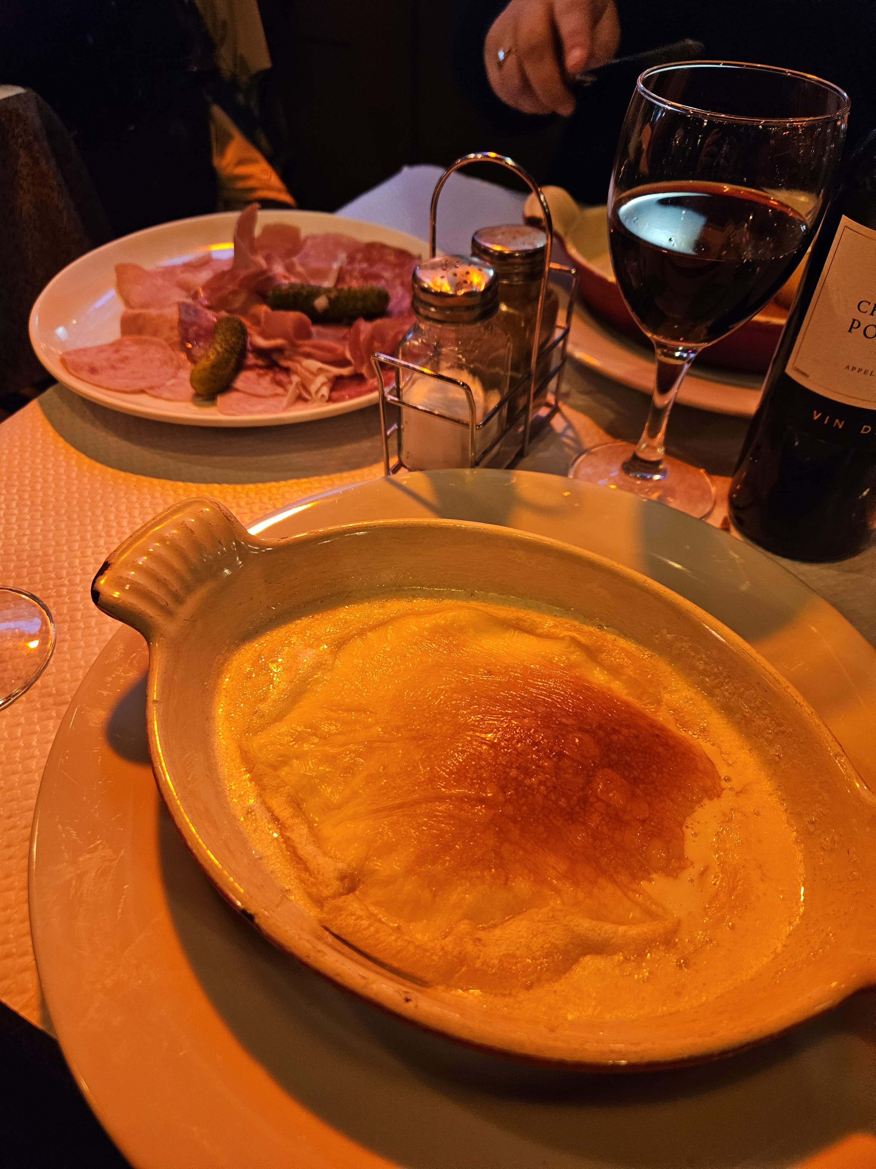 La qualité du fromage dans ma fondue n'était pas au rdv comme la charcuterie. Heureusement que le cadre, le service et les quantites équilibrés l'expérience.